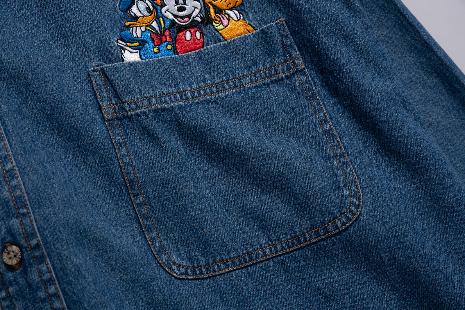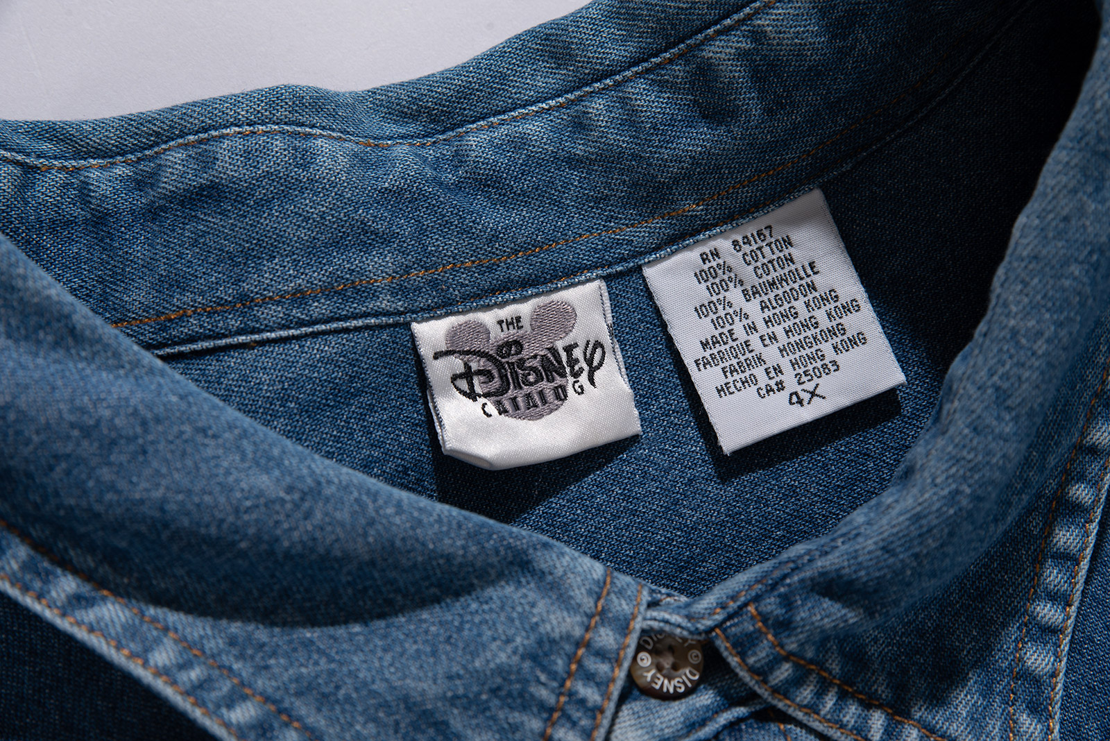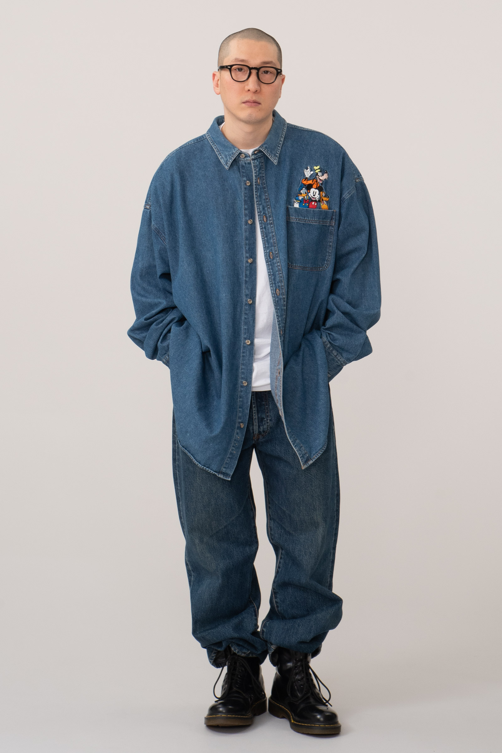 - 2000 년대 초반 쯤 제작 된 디즈니 스토어 미키마우스 데님 셔츠입니다. 표기 4X 로, 국내 120-130 정도의 사이즈 감입니다. 여유있는 사이즈라, 아우터 개념으로 오버핏 스타일링해도 괜찮겠어요. 정 사이즈로 입으실 분은 실측 꼭 비교 후 구매부탁드립니다. 전반적으로 깔끔한 편이에요.