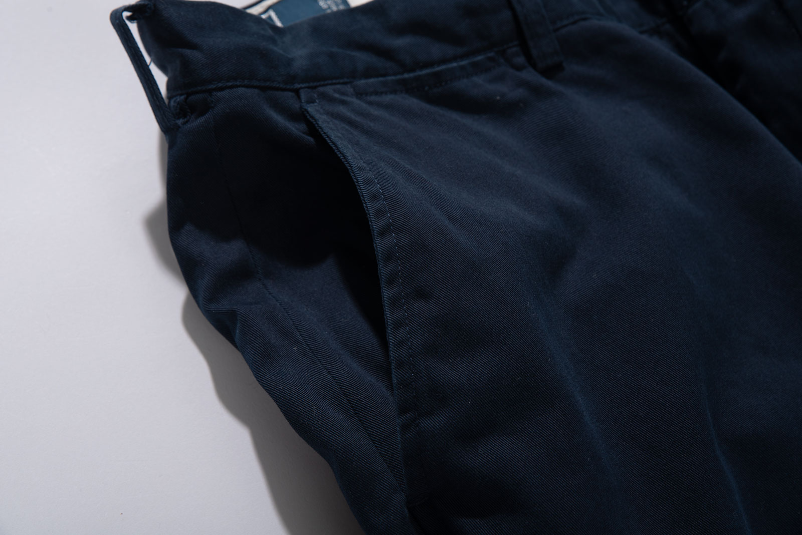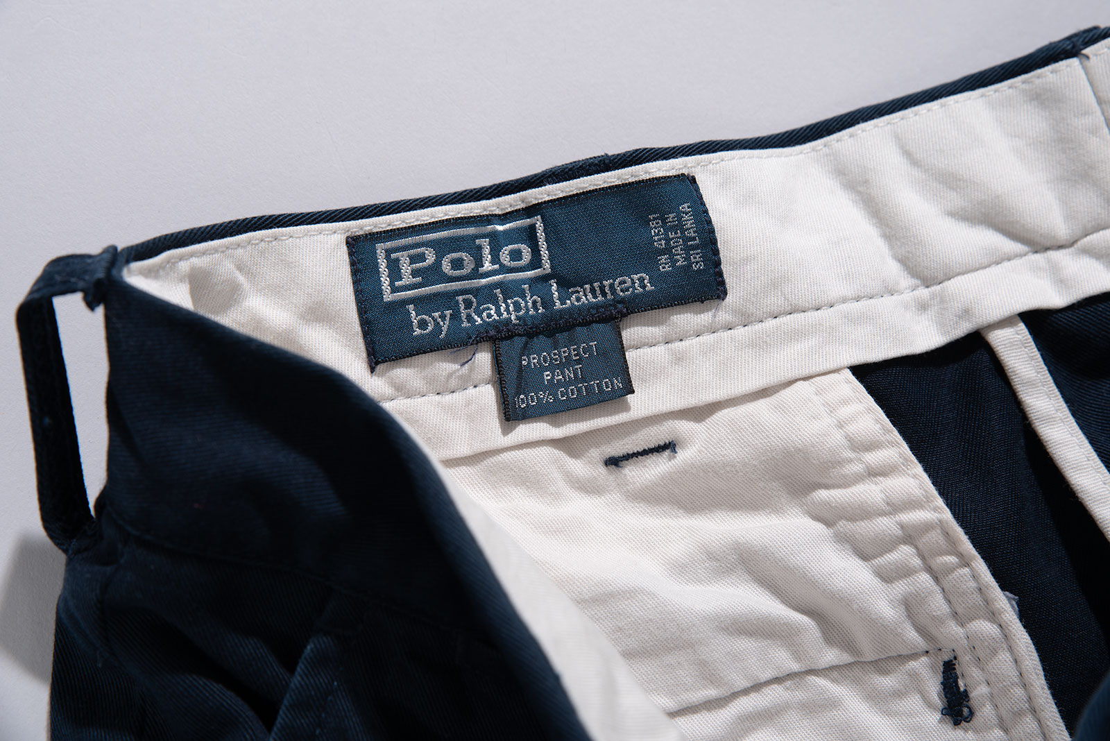 - 폴로 랄프로렌의 올드 클래식 치노 프로스펙트 팬츠입니다. 턱이 없는 스트레이트 핏으로, 정 사이즈로 착장 시 깔끔하고 심플하면서 고급스러운 느낌의 핏이 연출되는 제품입니다. 별도 수선없이 허리에 비해 기장이 애당초 짧게 나온 피스입니다. 폴로 치노 네이비는 물이 빠진 듯 가공되어 출시되었습니다. 전반적으로 사용감이 있긴 합니다만 올드 모델, 중고 치고는 깔끔한 편이에요.