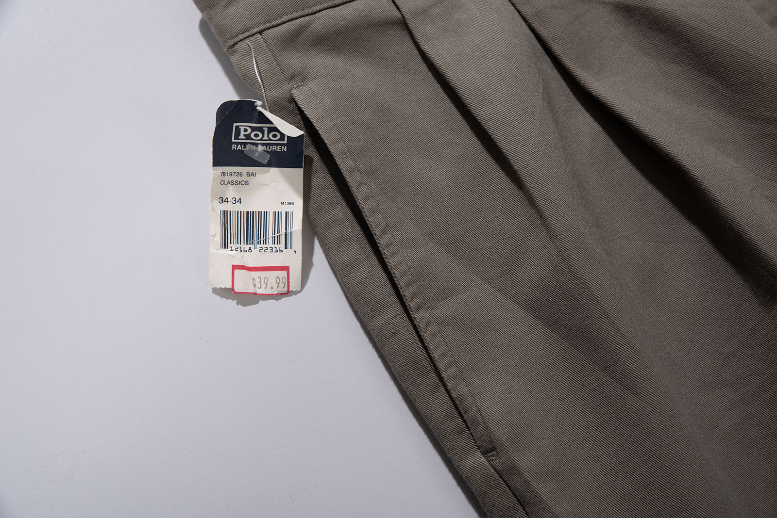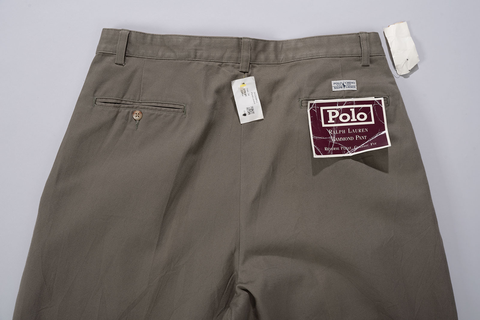 - 폴로 랄프로렌의 90s 클래식 핏 Hammond 팬츠입니다. 핀턱이 있어 여유롭게 입을 수 있는 제품이에요. 밑위도 길고 허벅도 넓어서 익스트림 스포츠에도 제법 잘 어울리는 모델입니다. 택 채 새상품으로 입고 되었습니다. 별도로 세탁을 하지 않았으며, 보관 상의 자잘한 오염이 있어요. 세탁해서 지워질지는 잘 모르겠습니다.