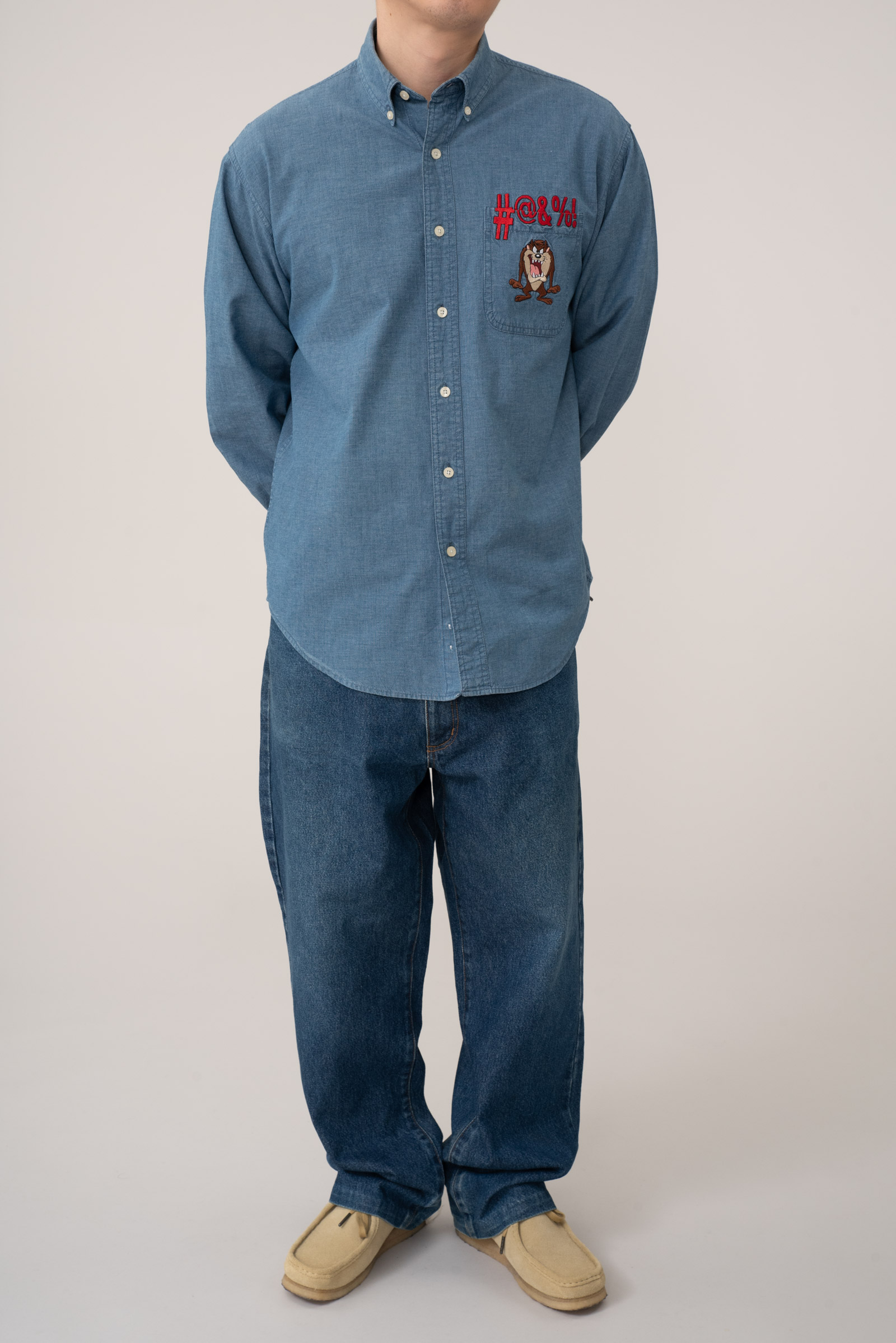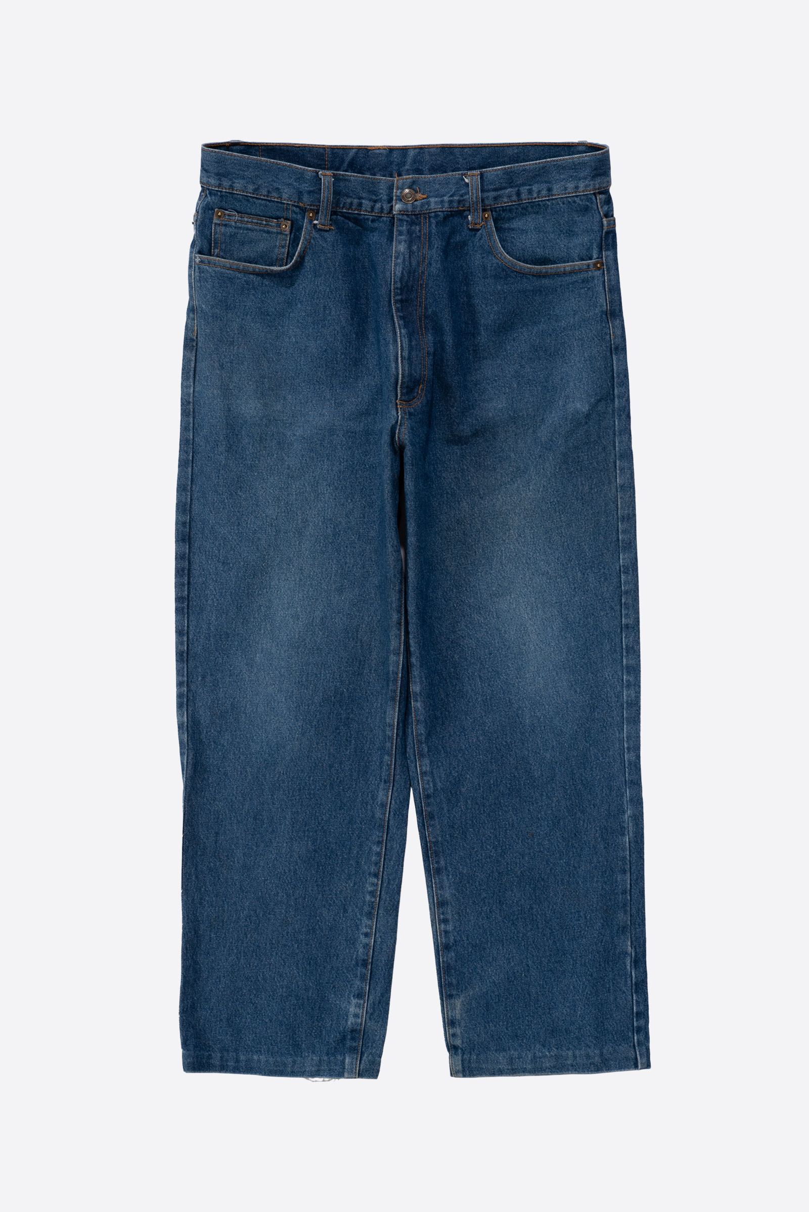 - 일본 도메스틱 브랜드의 90s 와이드 팬츠입니다. 만듦새는 잘 모르겠습니다만 원단 하나는 참 좋습니다. ㅎㅎ 밑단이 수선되면서 총장이 길지 않습니다. 오버핏으로 골반에 걸쳐 입으실 160-170 초반대 분들에게 권해드립니다.