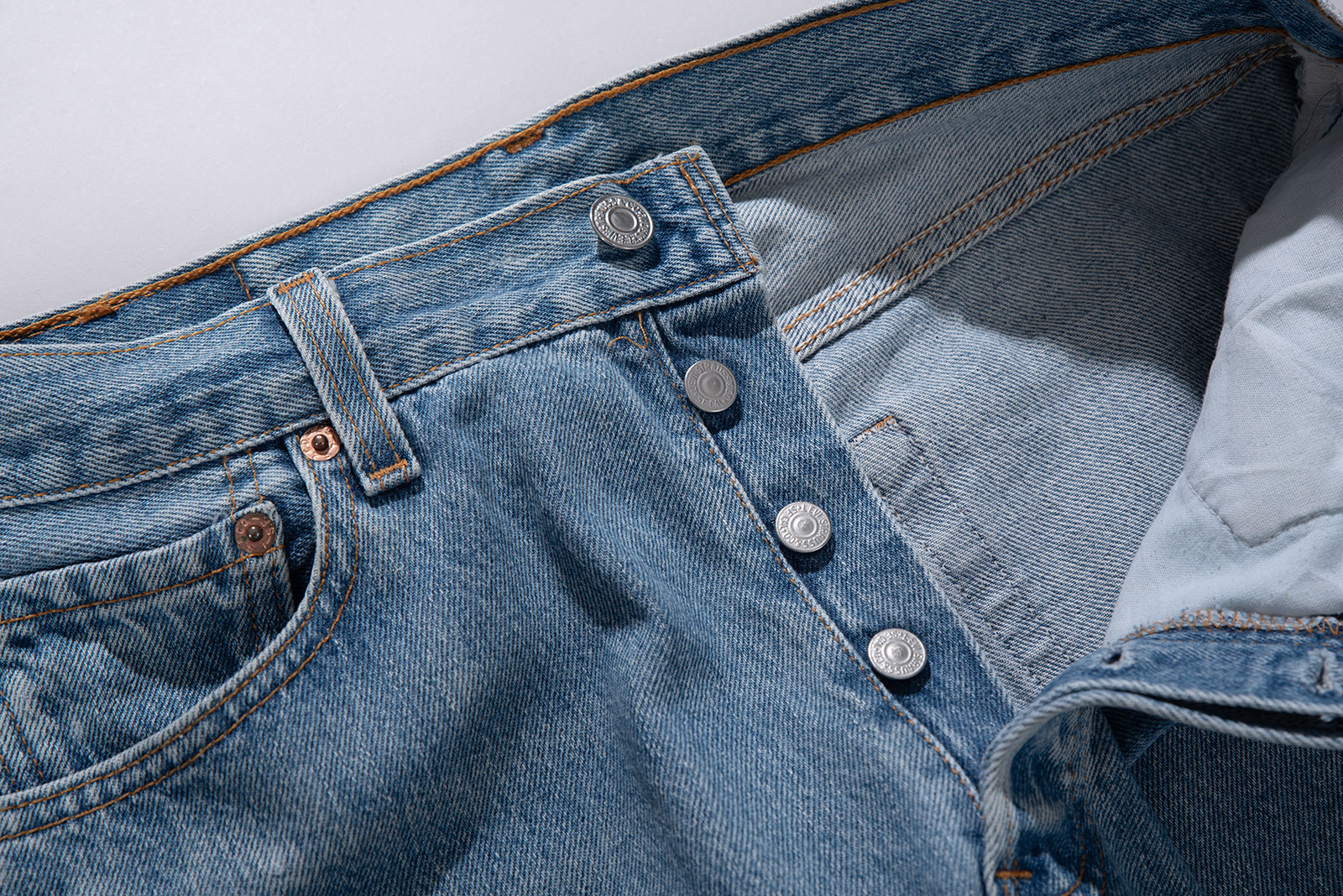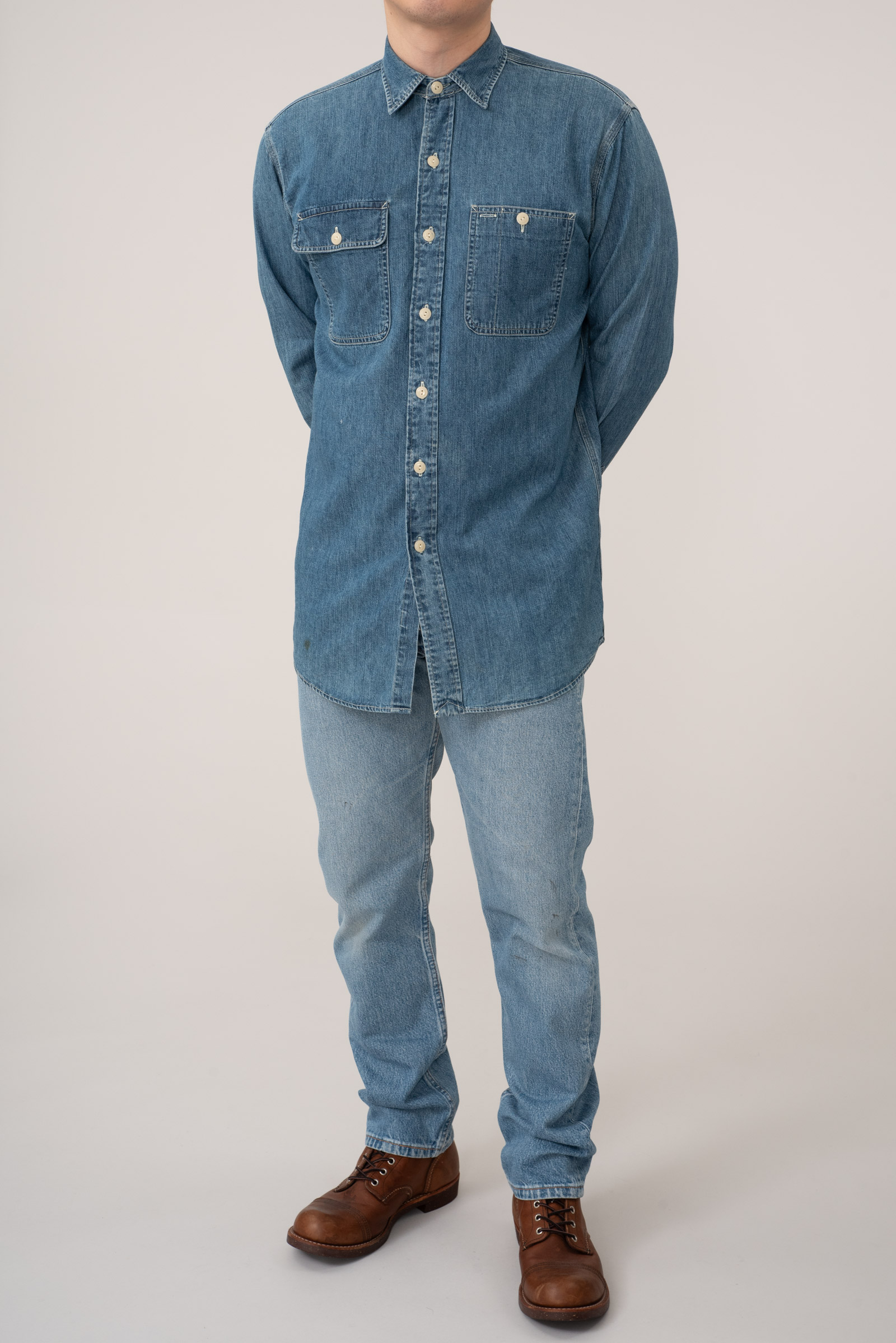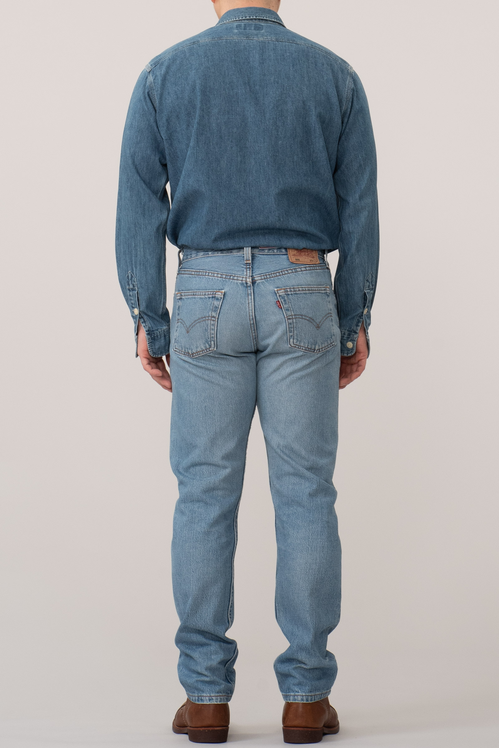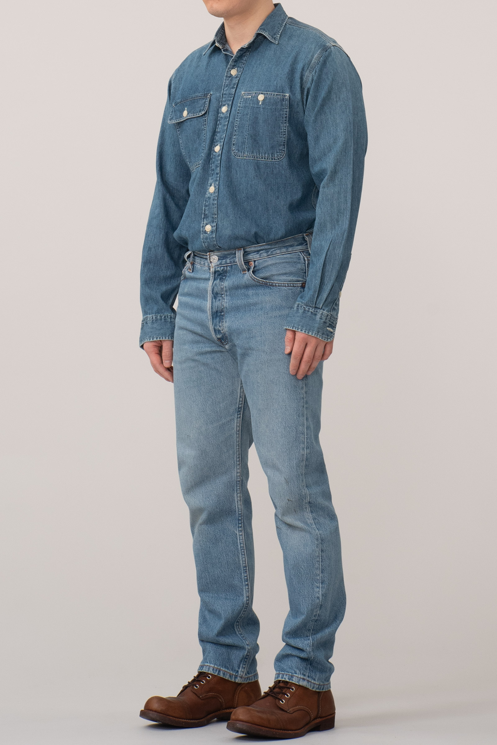 - 90 년대 제작 된 빈티지 501 입니다. 적당한 사용감이 있는 연청 컬러로, 정 사이즈로 멋 부리기 좋은 제품이에요.