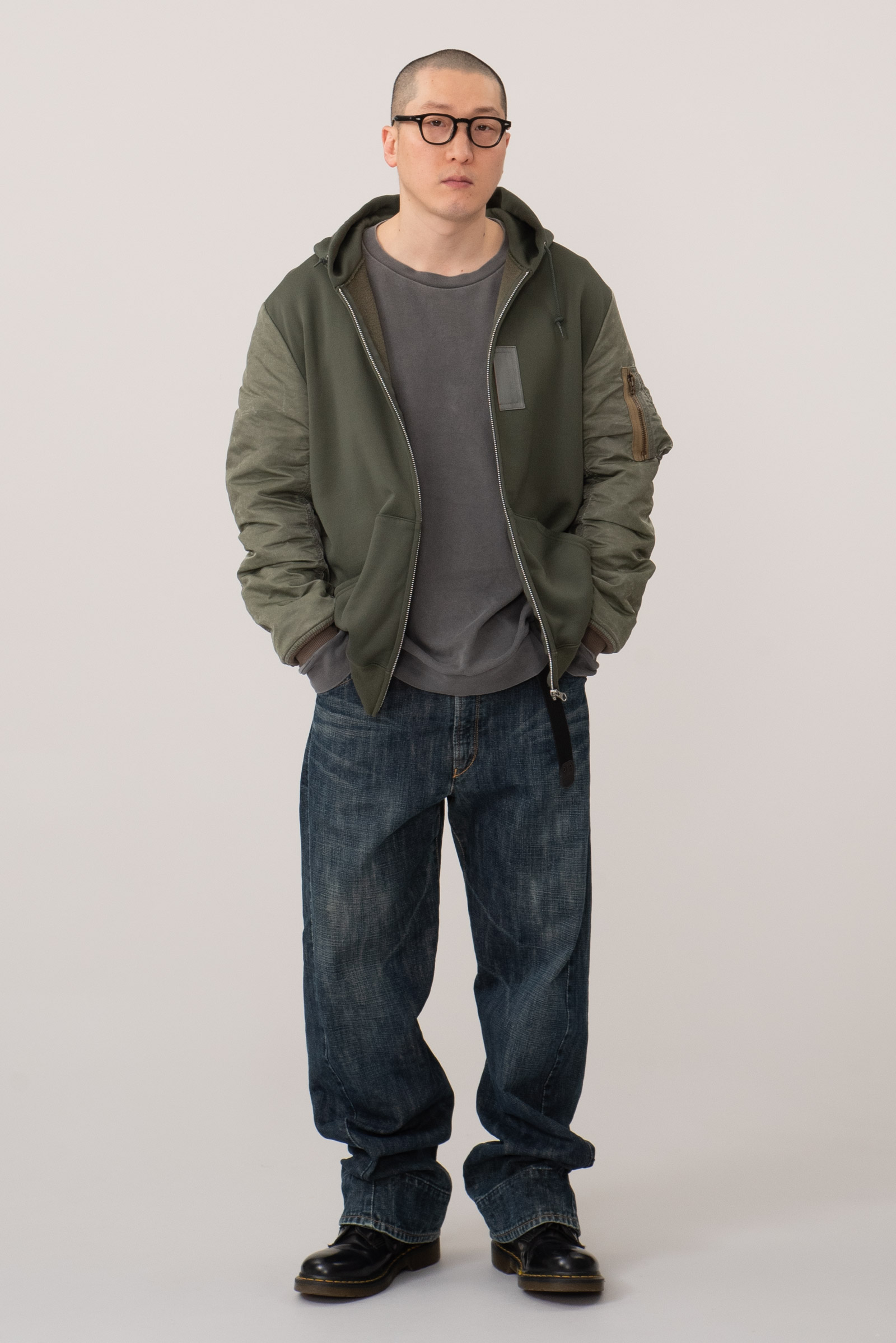 - 삼성물산 정식 수입, 국내 매장판으로 발매 된 꼼데 가르송 옴므의 바머 재킷입니다. L-2b와 ma-1을 바탕으로, 빈티지 워싱 가공이 된 나일론 소재의 양 팔과 두툼하게 짜여진 코튼 몸 판이 조화롭게 어우러지는 피스입니다. 택 채 새상품으로 입고 되었으며, 가볍게 세탁 후 출품합니다.
