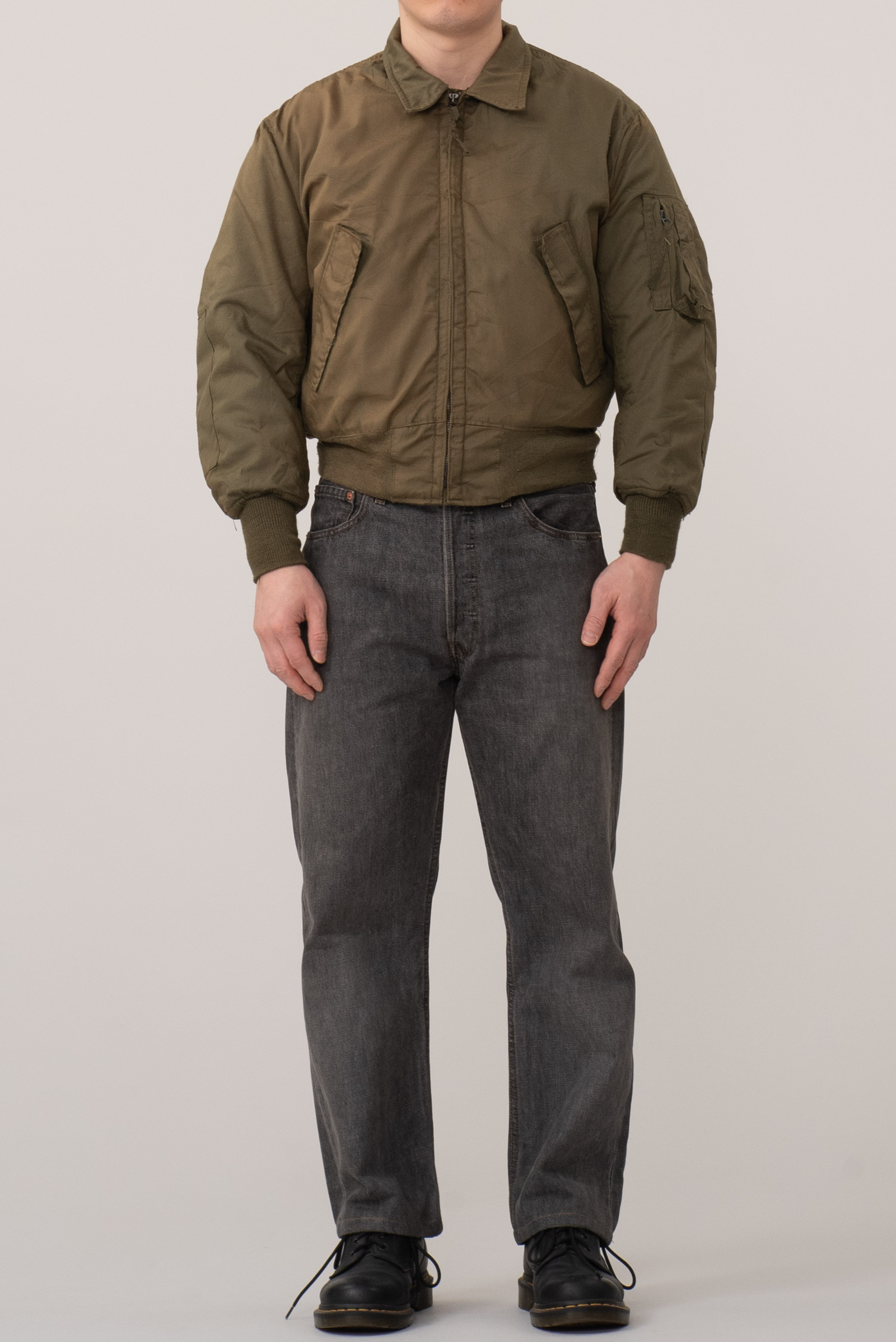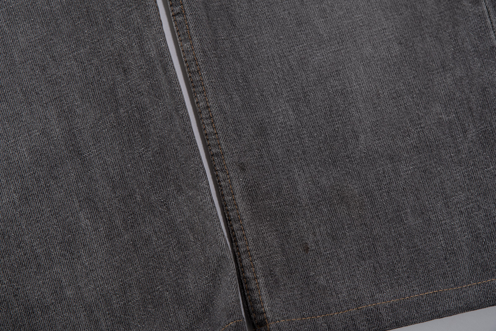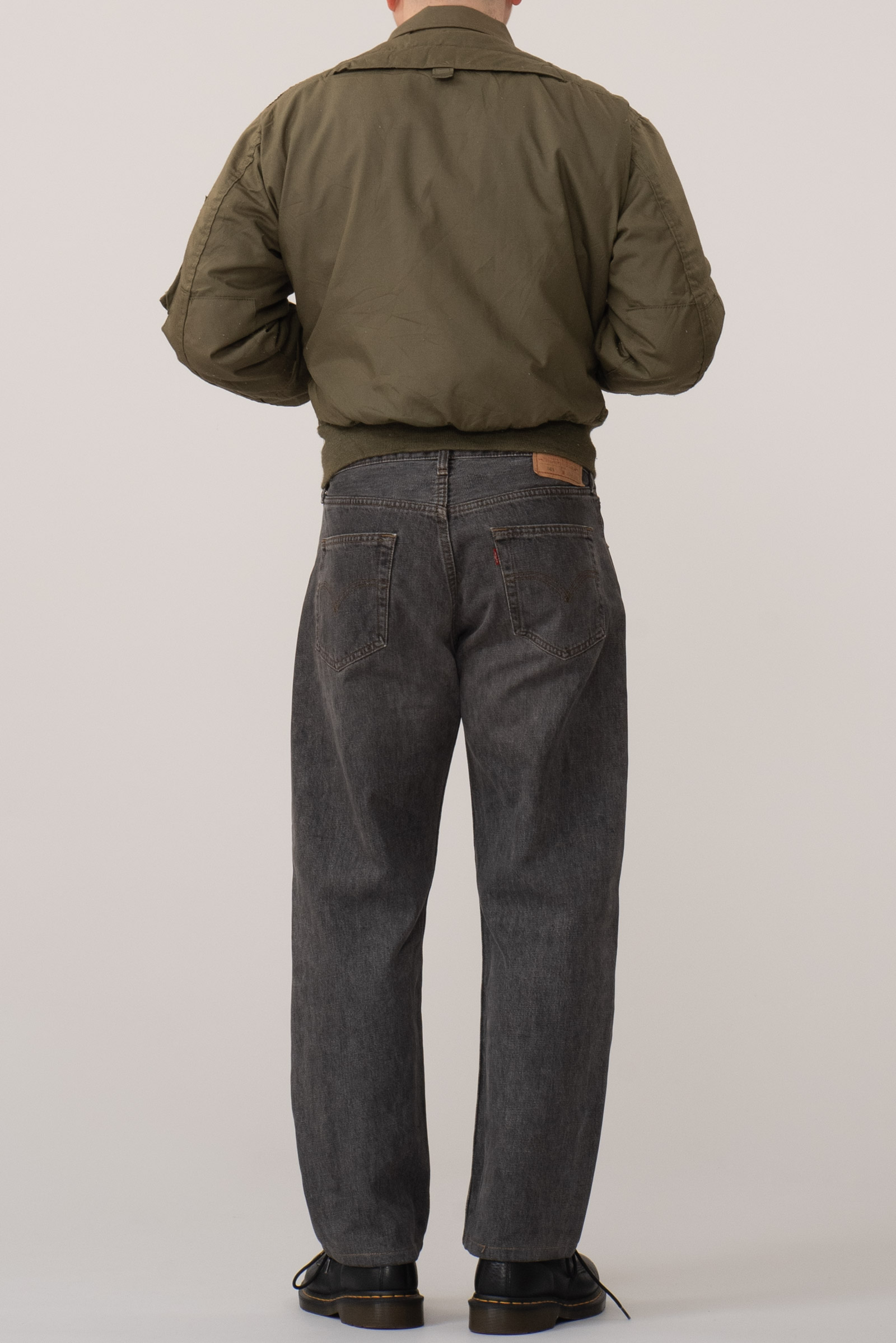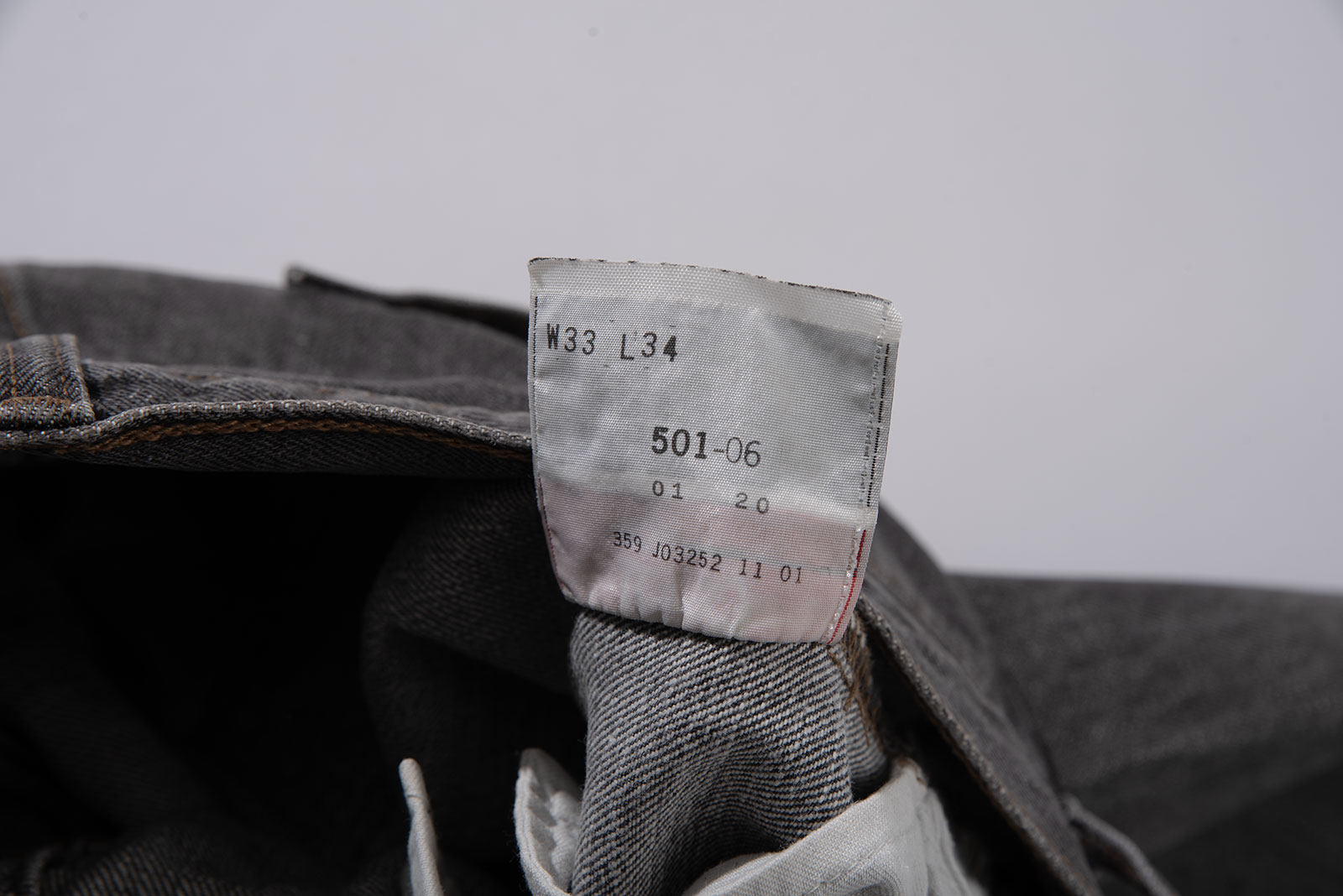 - 2001 년에 제작 된 90 년대 양식의 501 그레이진입니다. 정확히는 짙은 그레이 톤으로 봐도 무방한 블랙진이죠. 밑단이 수선되었습니다. 170 초반대 분들이 착용하시기 좋을 사이즈 감이에요.
