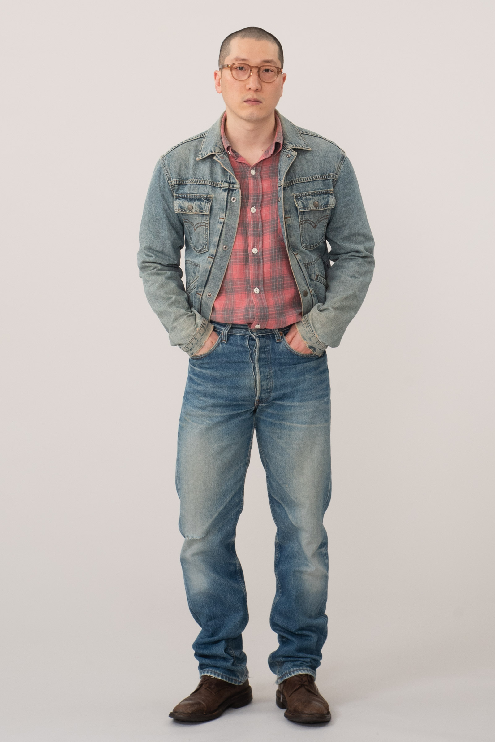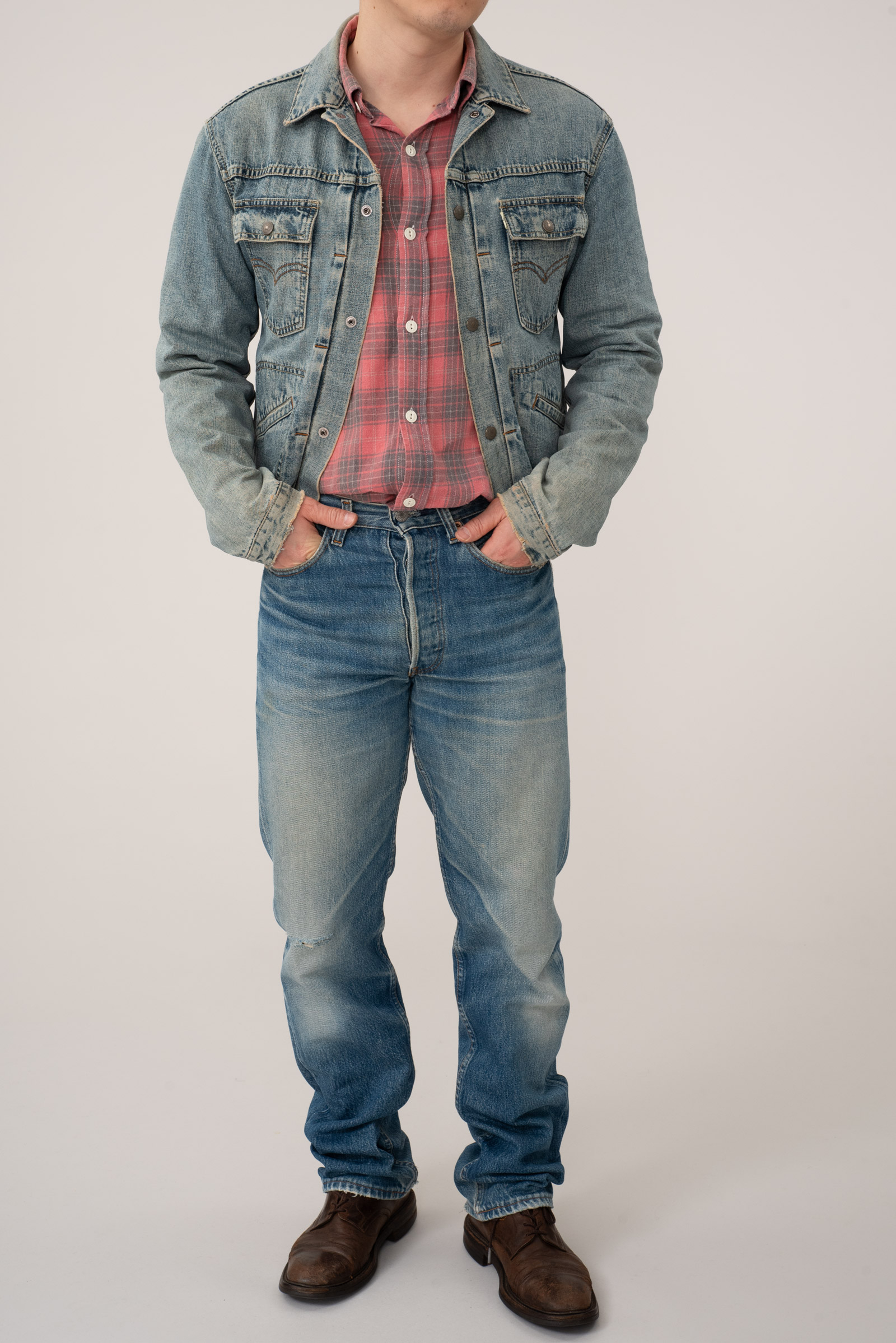 - 일본 리바이스에서 기획 생산한 90s 70752-12 트러커입니다. LVC는 아닌데, LVC 풍으로 만들었죠. 이 당시 일본에선 재팬 리바이스 LVC를 필두로 레플리카 붐이 한창이었을 때라 매장에 깔기 좋으면서도 대중적으로 소비시키기 좋은 만만한 시리즈를 적당히 기획했습니다. 랭글러 124MJ하고 선이 많이 닿아 있는 디자인이죠.