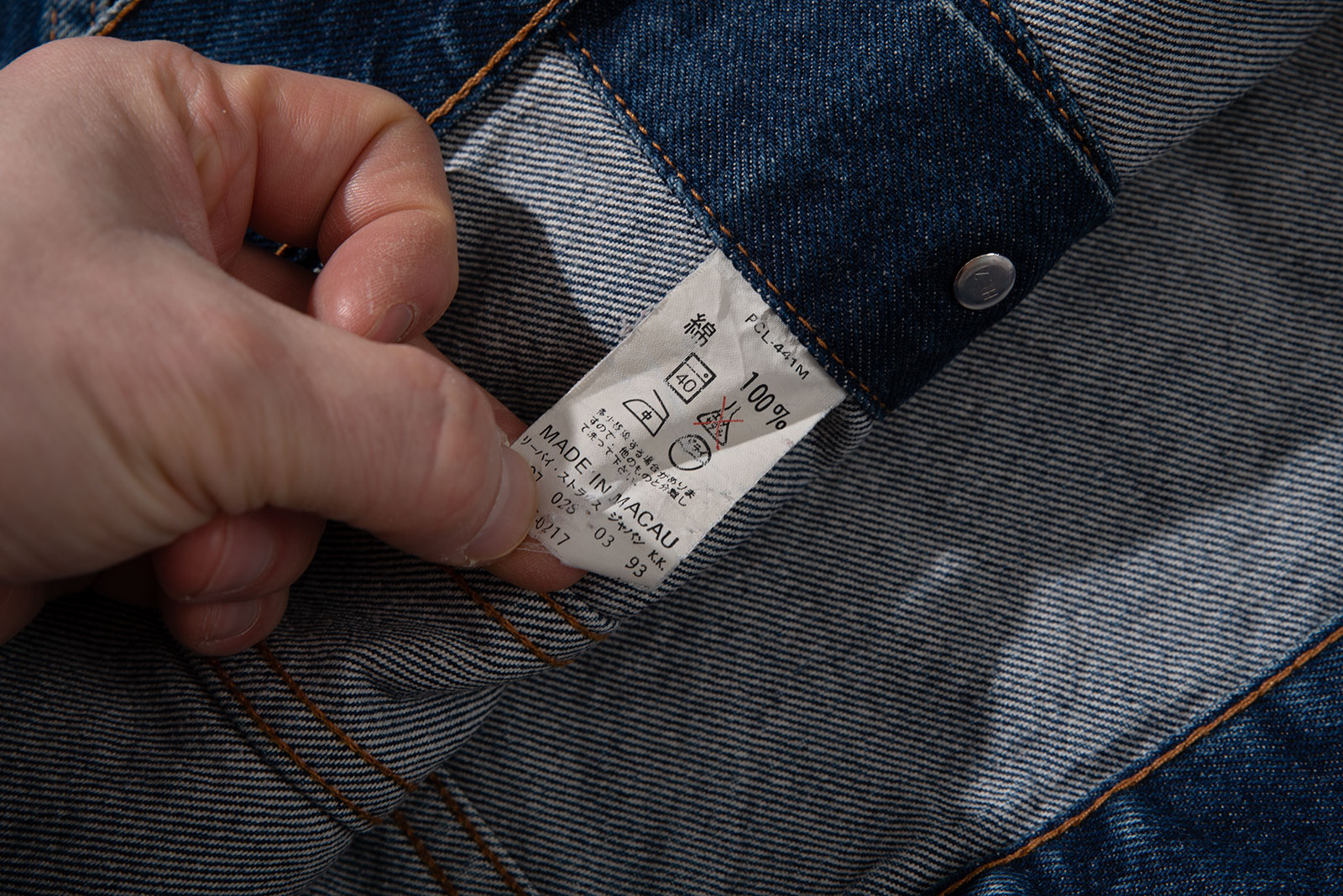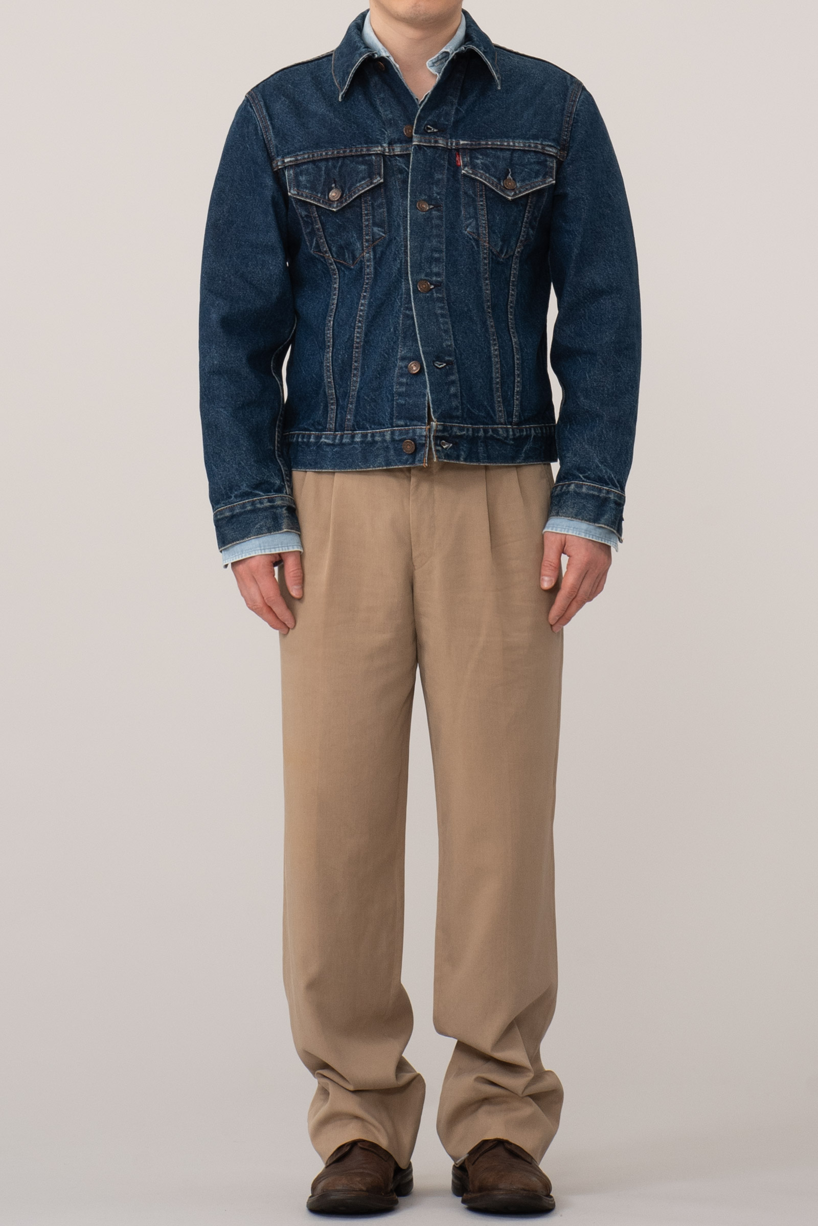 - 리바이스 70505-0217 입니다. 90 년대 초반에 OEM으로 제작 된 보기 드문(?) 제품이에요. 연식 비교하면 인디고 비율이 상당히 높은 편이죠. 몸에 꼭 맞게 입는 것을 즐기는 100 사이즈 추천드립니다.