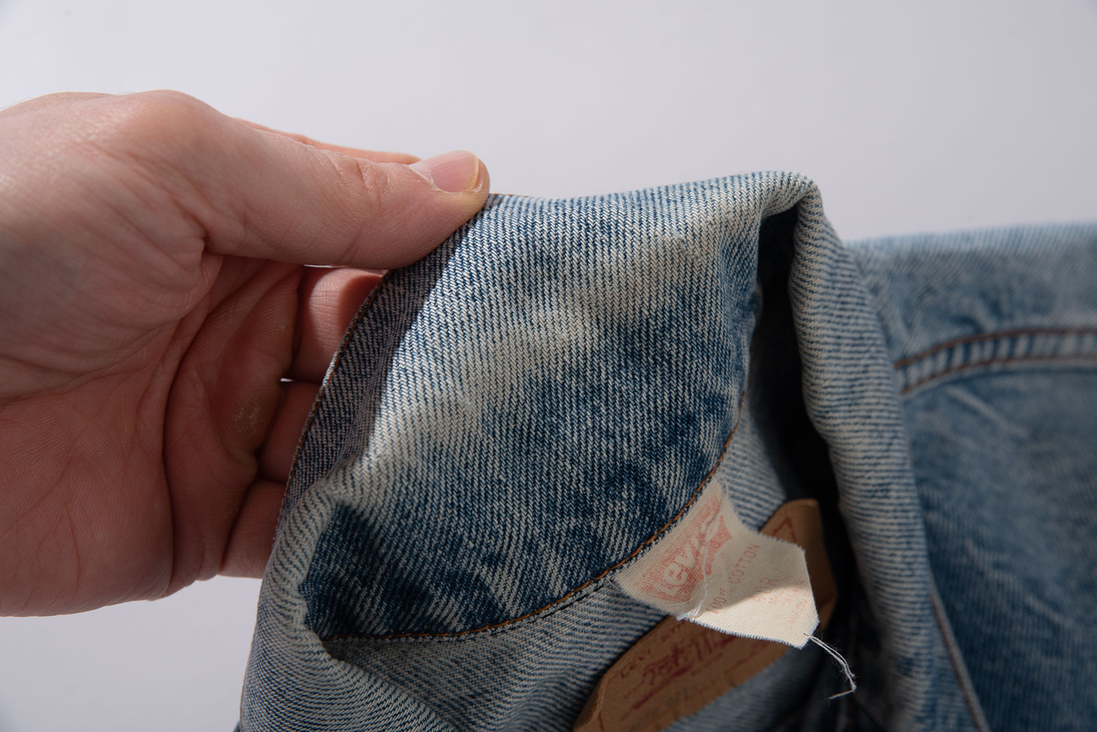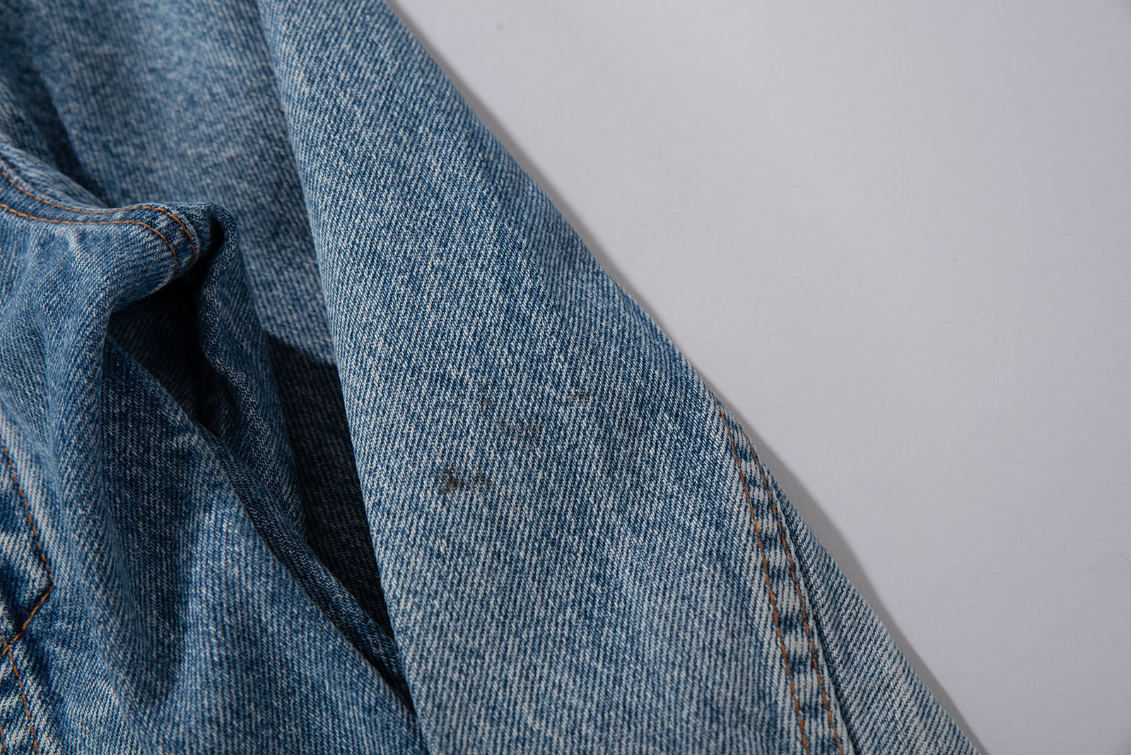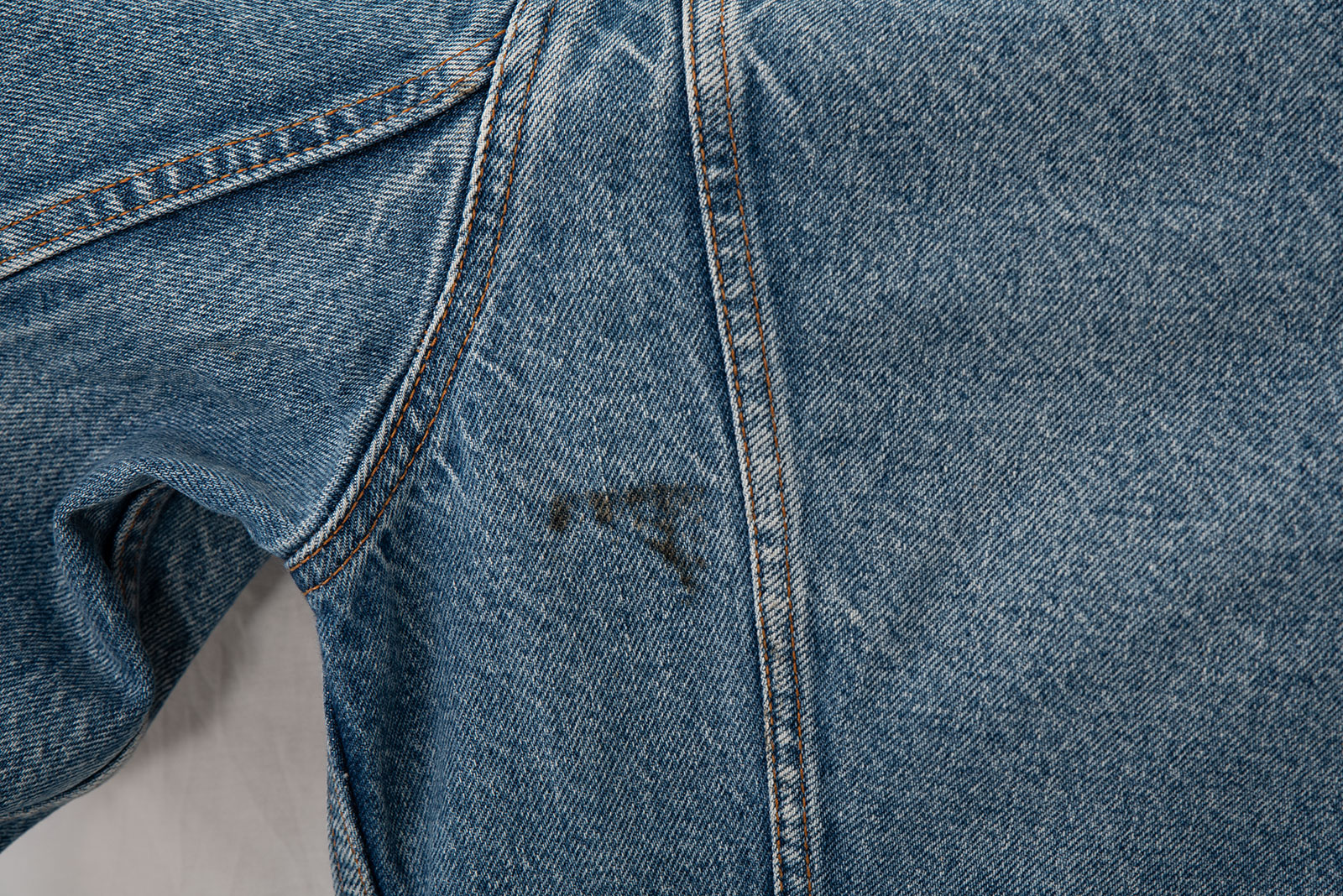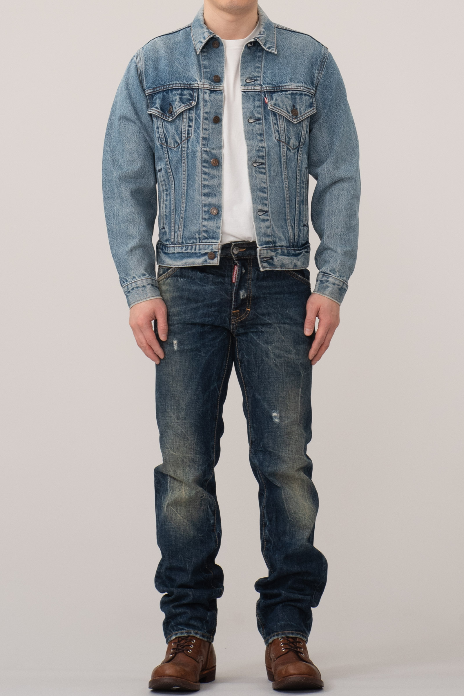 - 90 년대에 제작 된 오리지널70506 빈티지 트러커입니다. 표기 40R 이나 수축을 거쳐 95-슬림 100 정도의 사이즈 감이 되었습니다. 전 사용자에 의해 세탁이 자주 되었던듯, 고르게 물이 빠졌습니다. 사용감과 오염이 충분히 있으니 감안하고 구매 부탁드립니다.