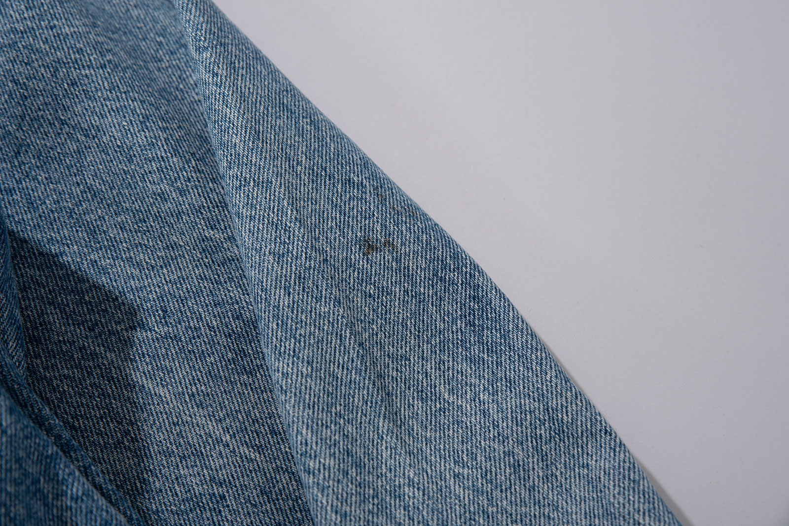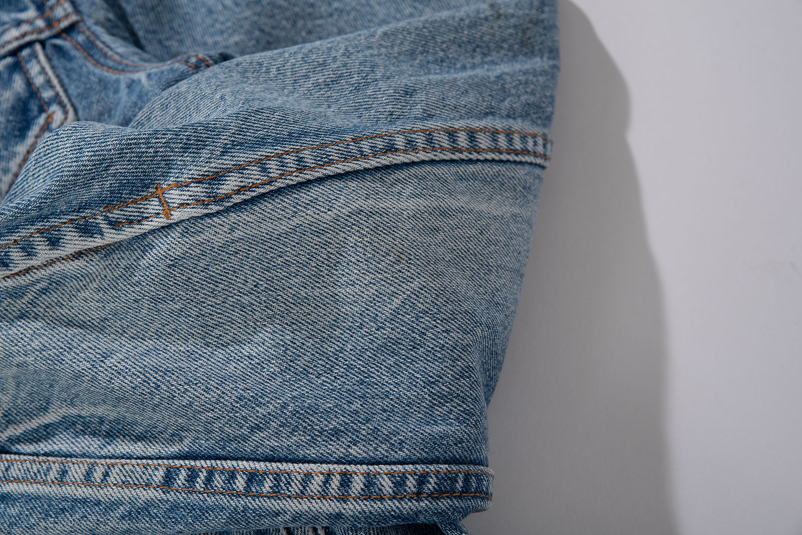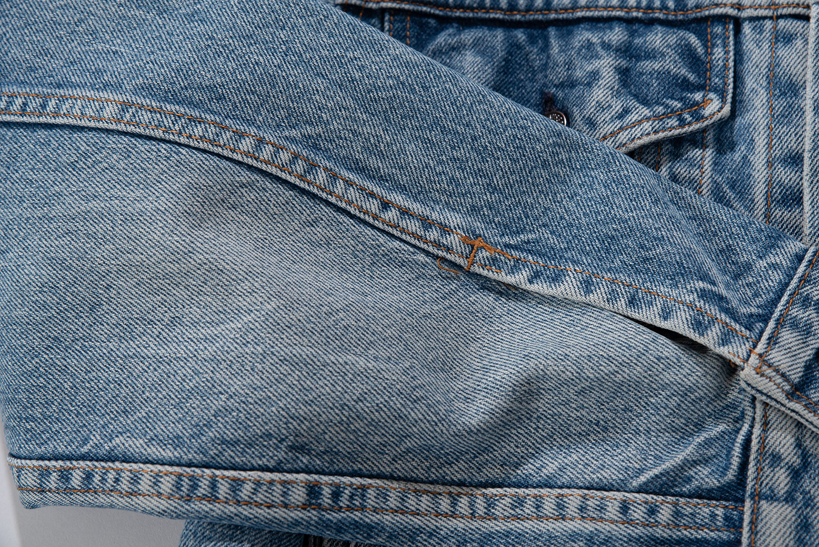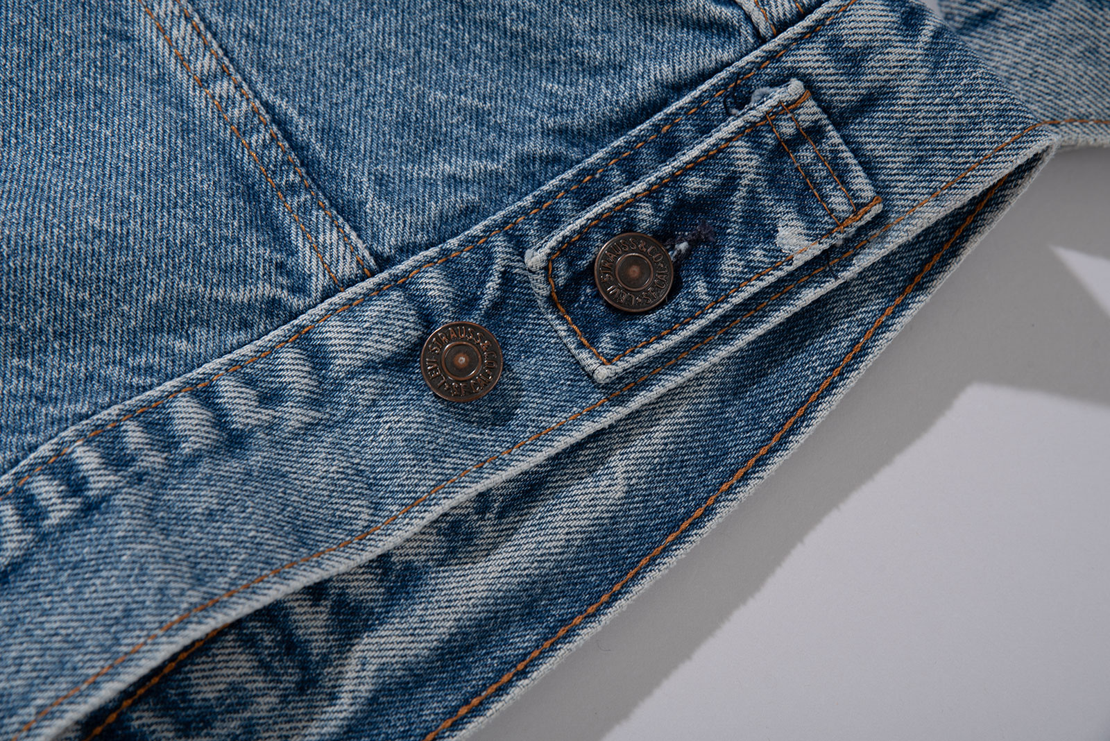 - 90 년대에 제작 된 오리지널70506 빈티지 트러커입니다. 표기 40R 이나 수축을 거쳐 95-슬림 100 정도의 사이즈 감이 되었습니다. 전 사용자에 의해 세탁이 자주 되었던듯, 고르게 물이 빠졌습니다. 사용감과 오염이 충분히 있으니 감안하고 구매 부탁드립니다.