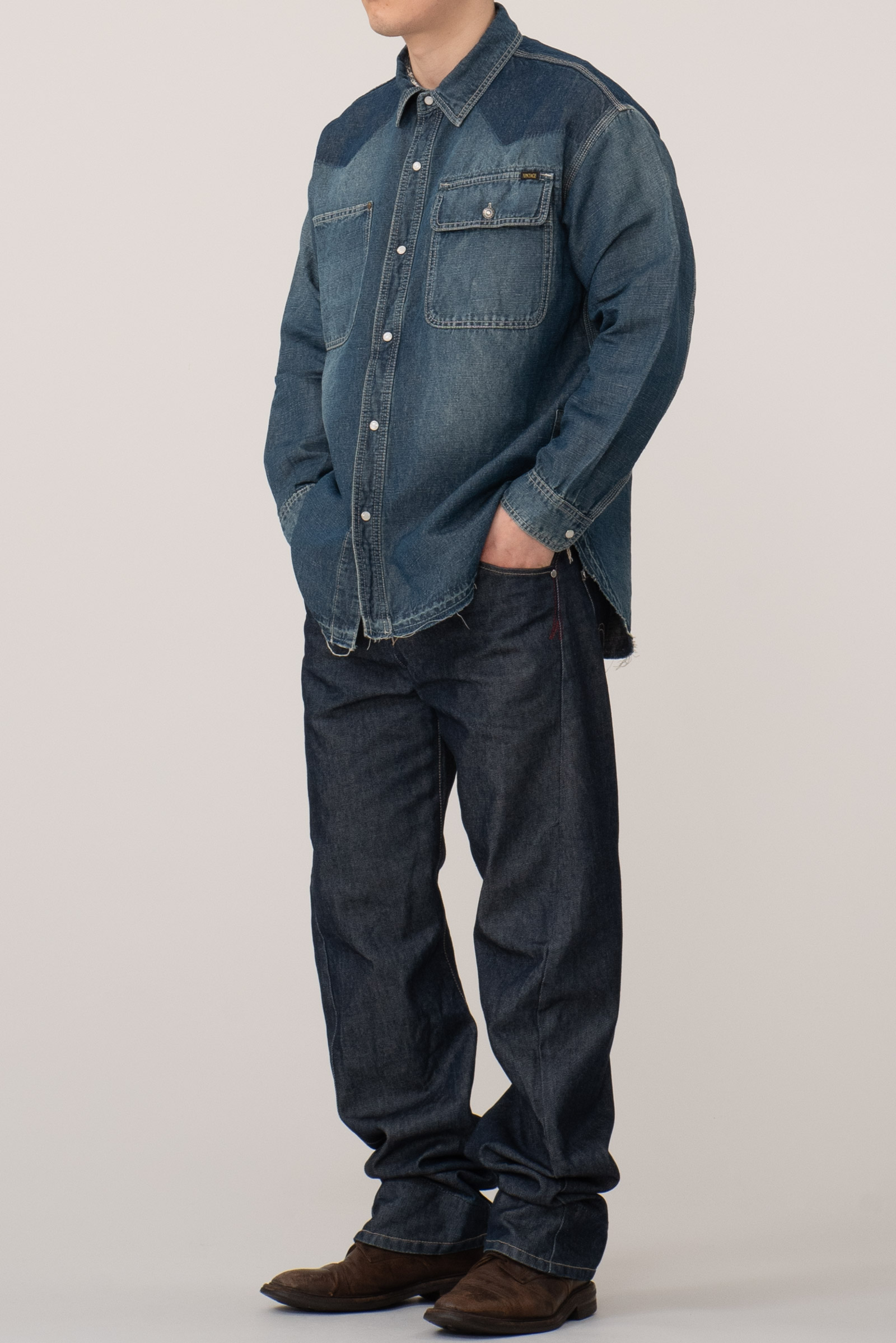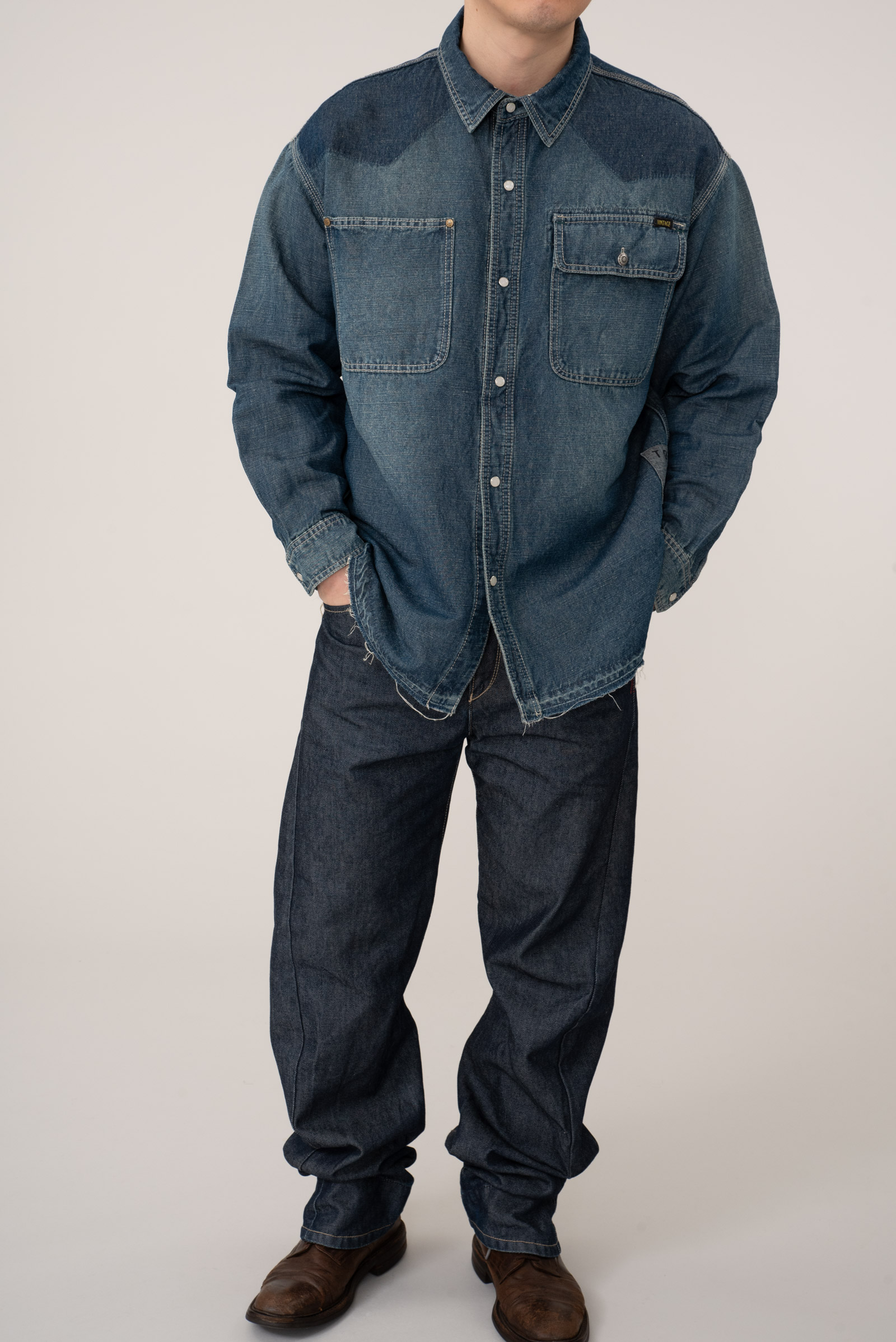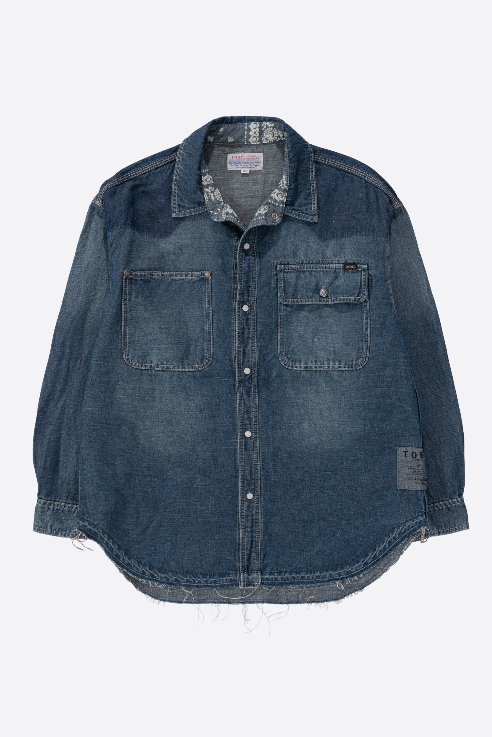 - 아메리칸 캐주얼을 모티브로 하는 일본 도메스틱 브랜드 TOBILA 의 데님 셔츠입니다. 워싱이 아주 근사한 제품이죠. 유니온 메이드는 그냥 가져다 썼어요. 아무 의미없는 중국 생산품입니다. ㅎㅎ 셔츠 자체는 아주 잘 만들었어요. 100 오버핏 추천드립니다.