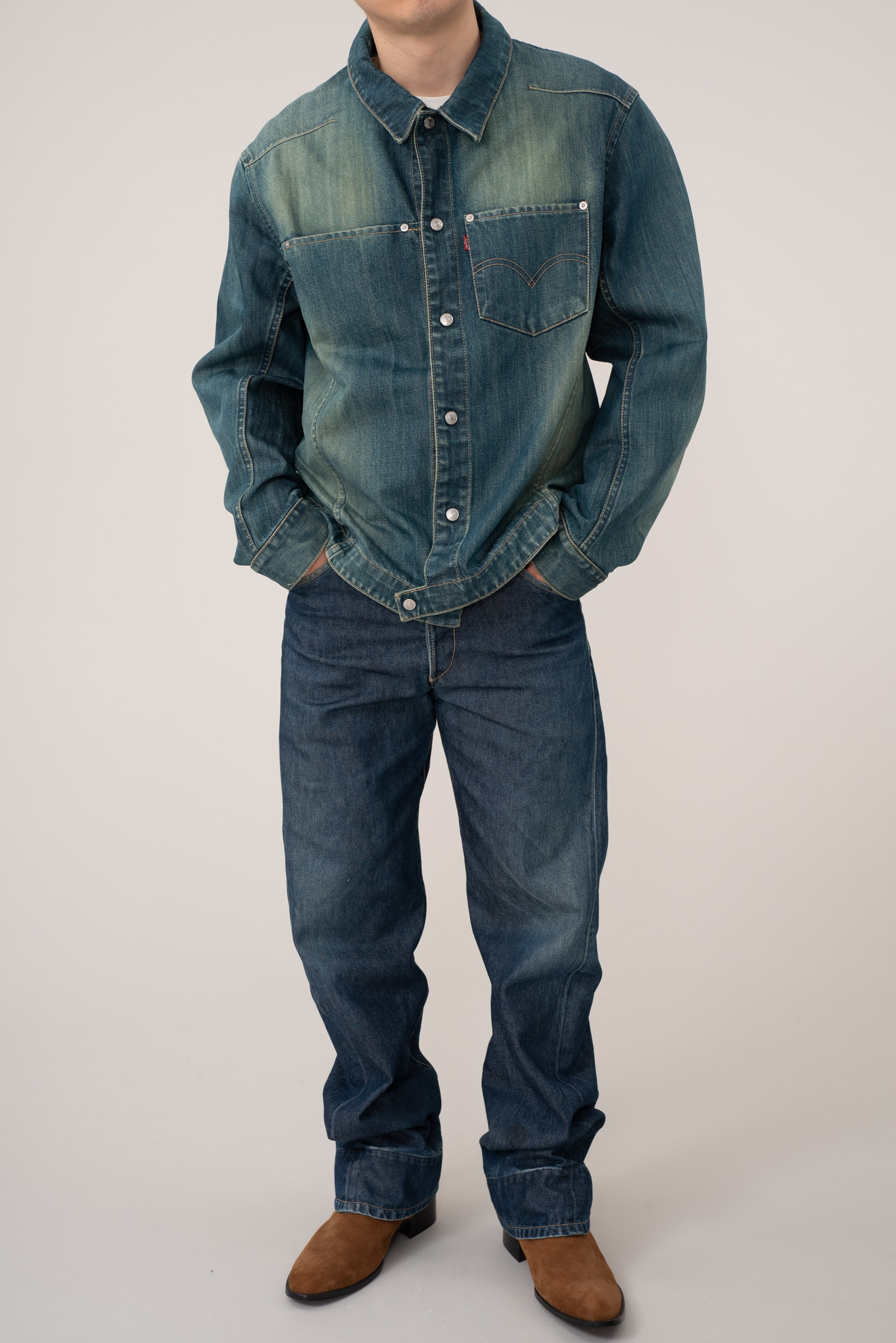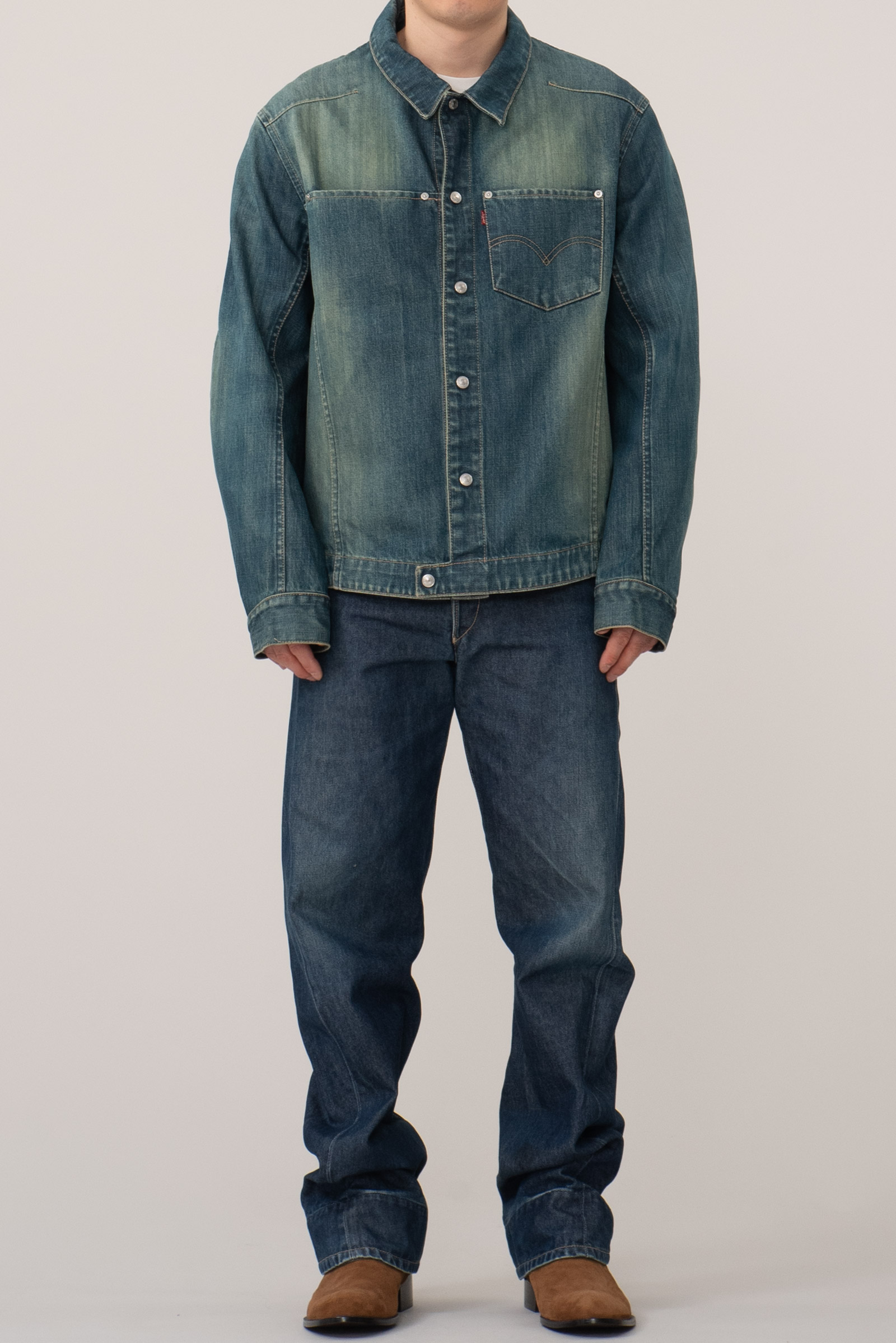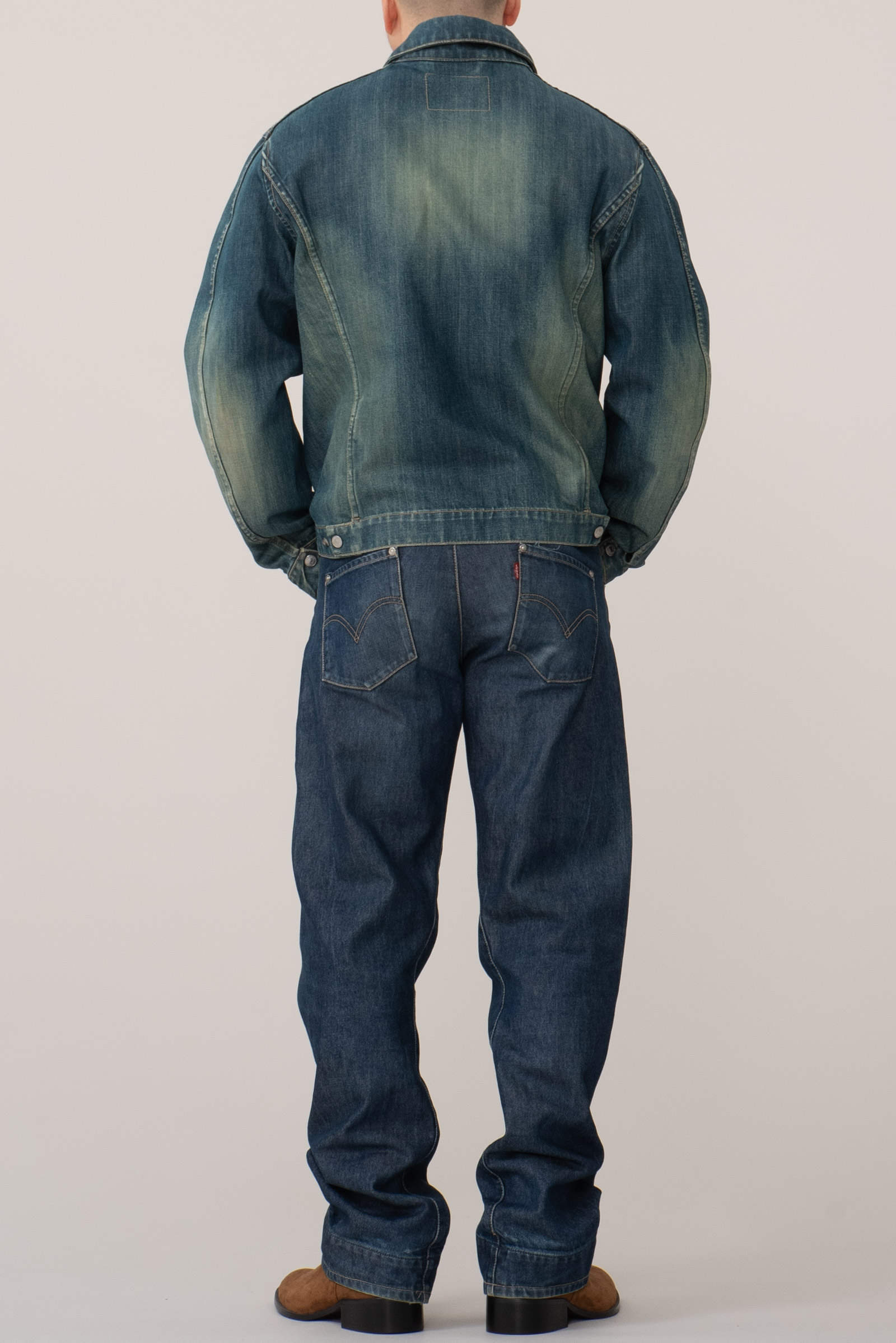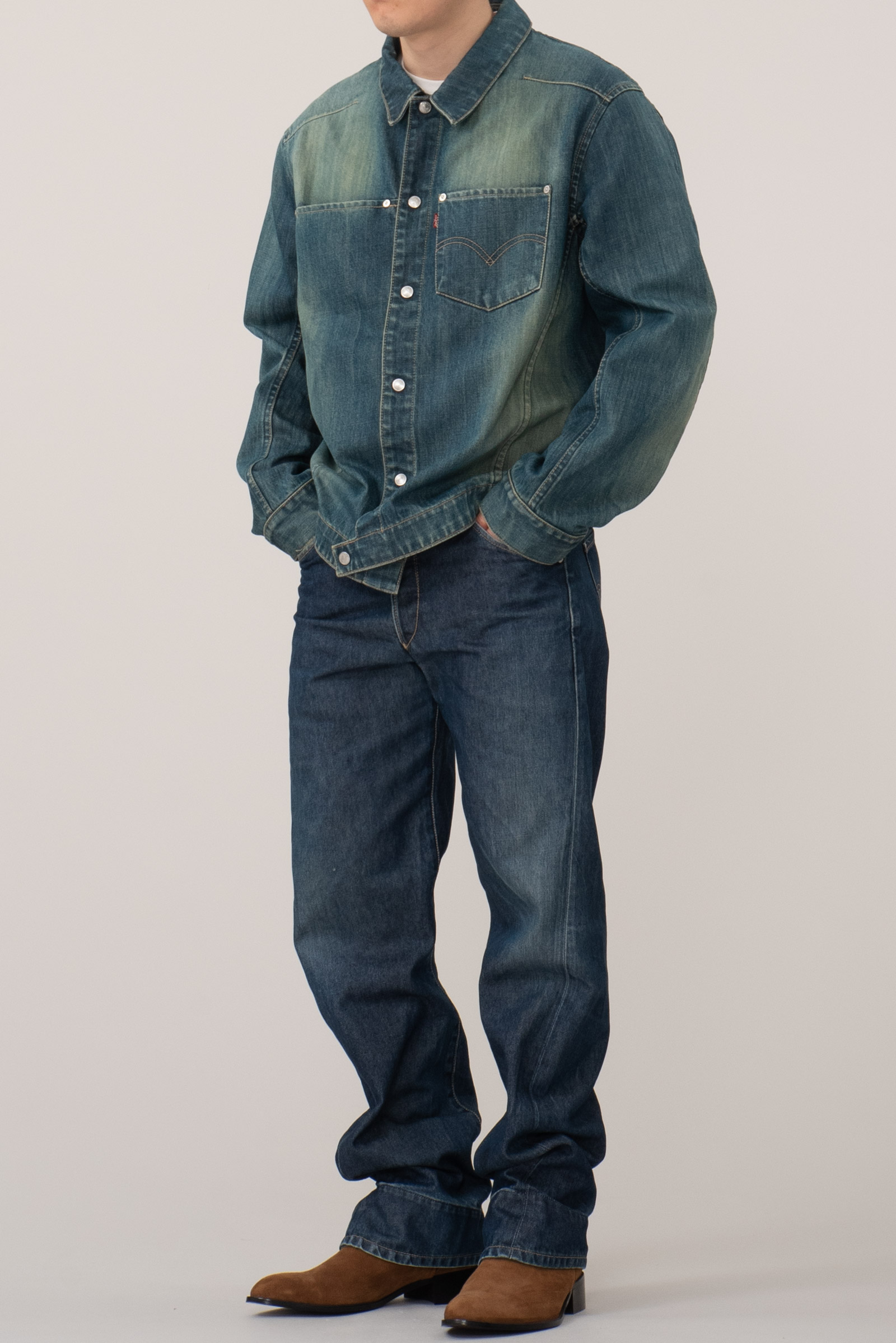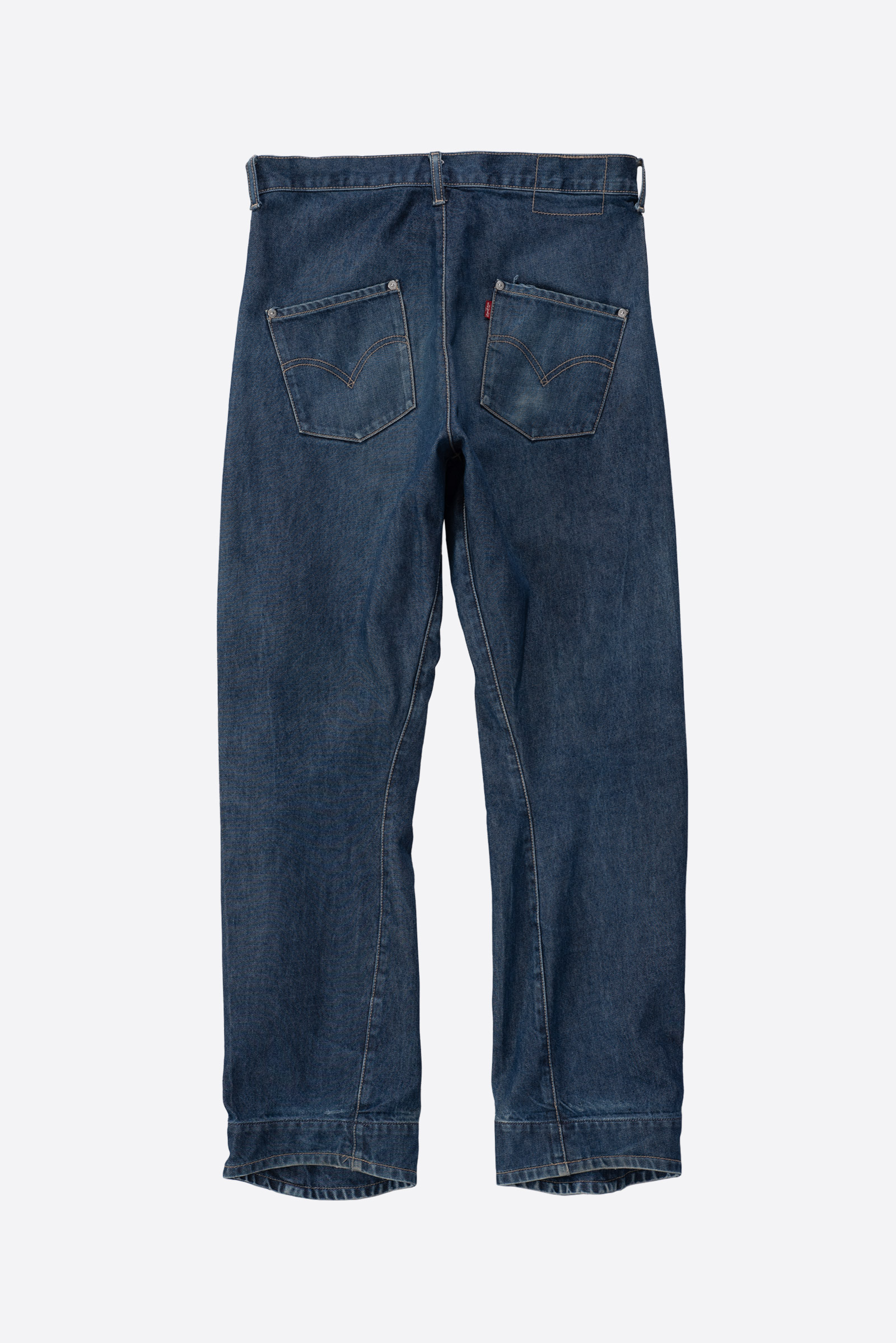 - 리바이스 엔지니어드진 1st 국내 매장판 003-0800 입니다. 작은 사이즈이지만 003이 와이드 핏이라 001에 비해 여유가 많이 있죠. 전체적으로 사용감 많이 있습니다.