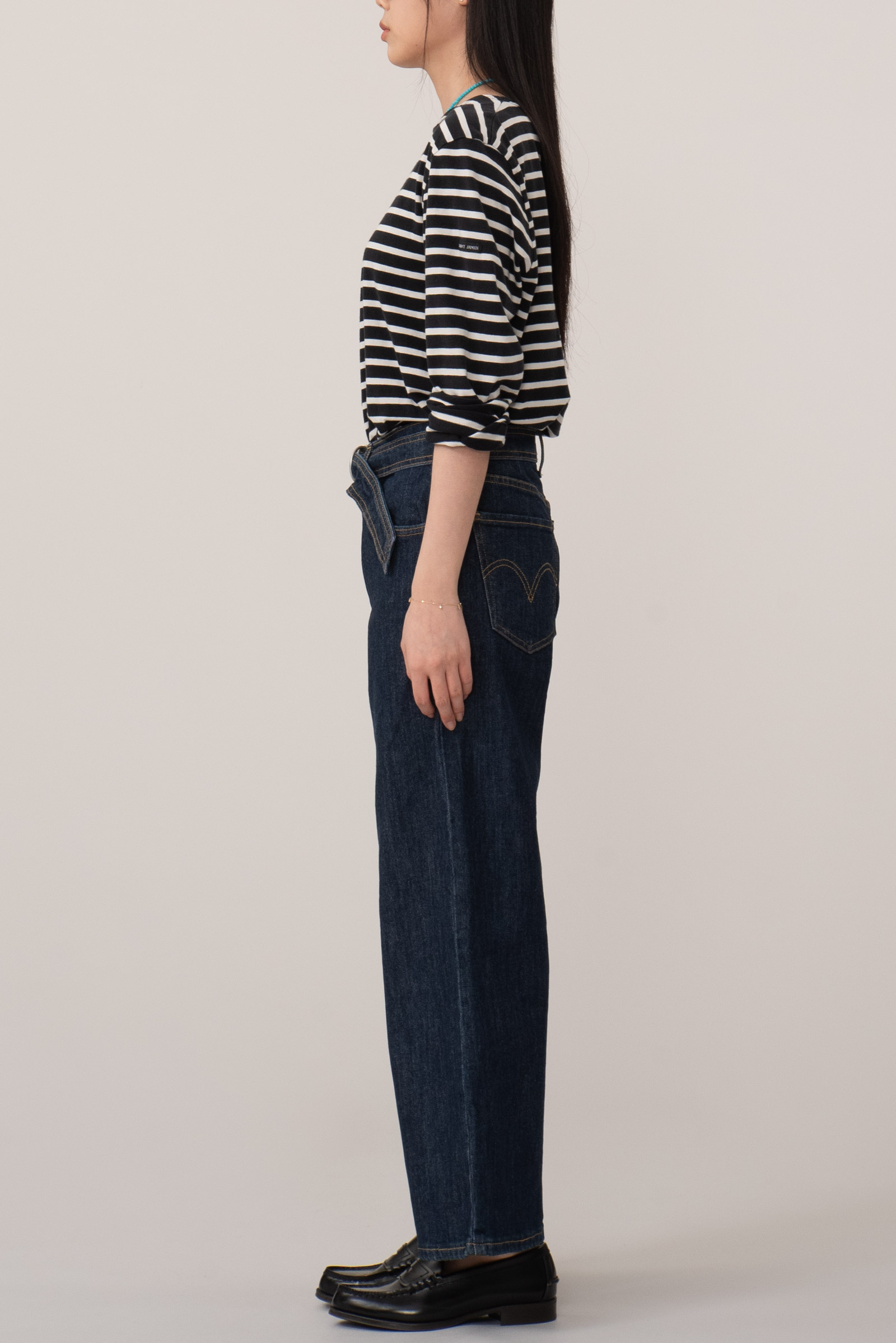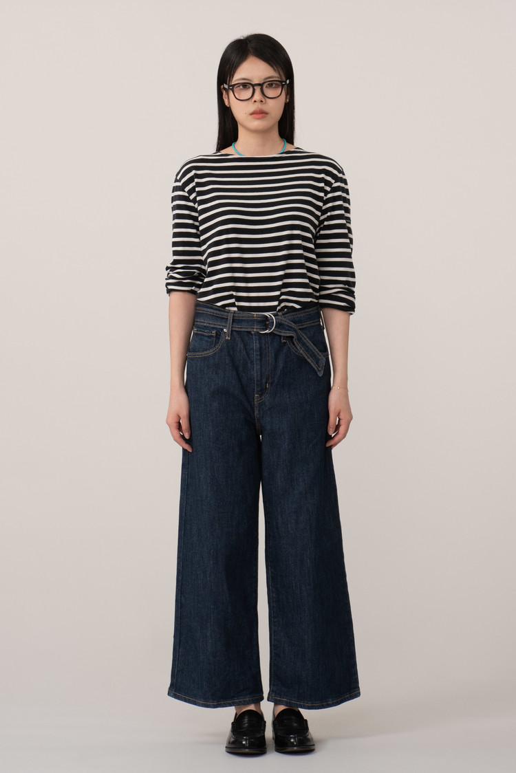 허리에 달린 동일 원단의 데님 벨트는 포인트이자 실용성까지 더해주며,