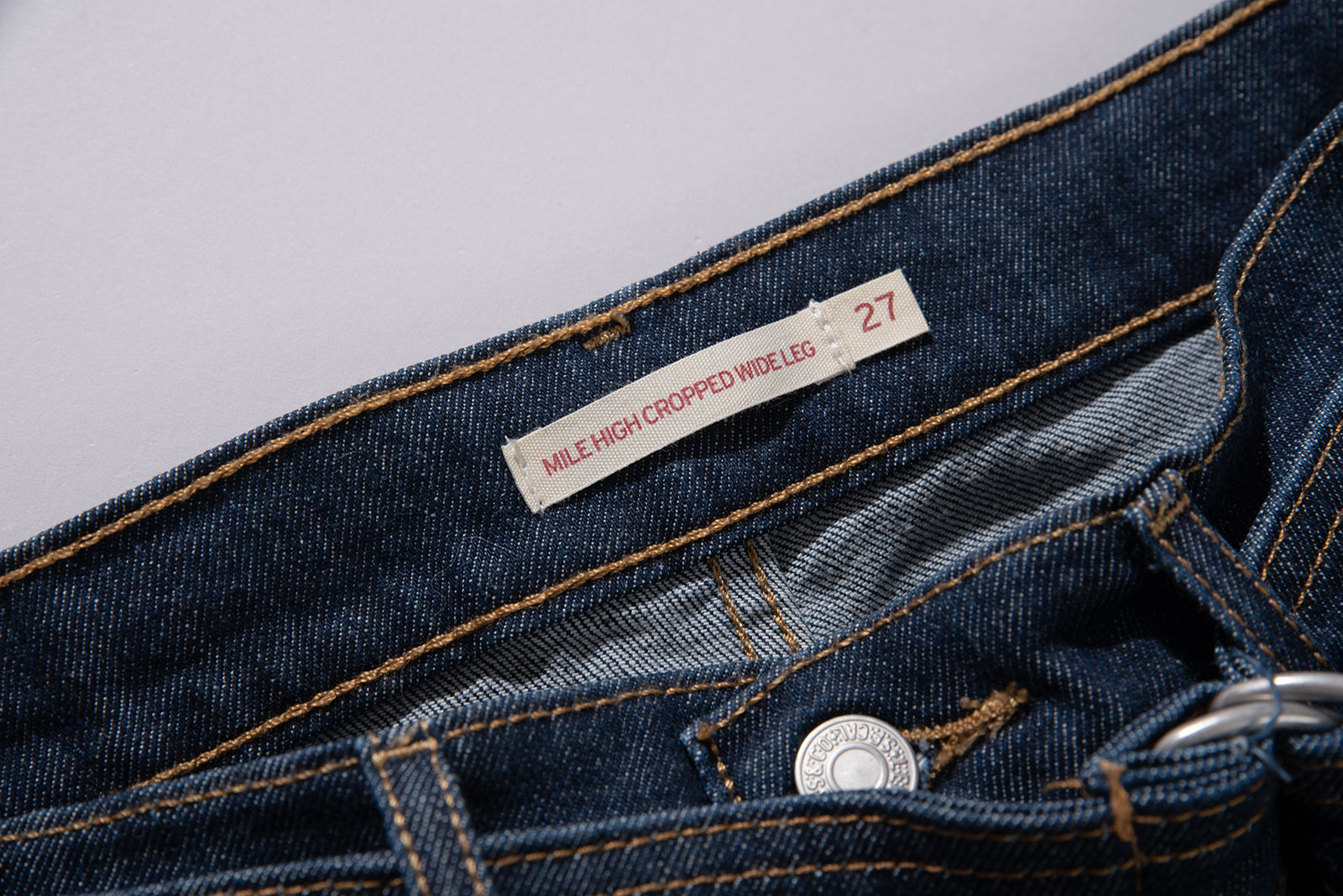 리바이스에서 선보인 현행 여성용 와이드 크롭 데님 팬츠입니다.