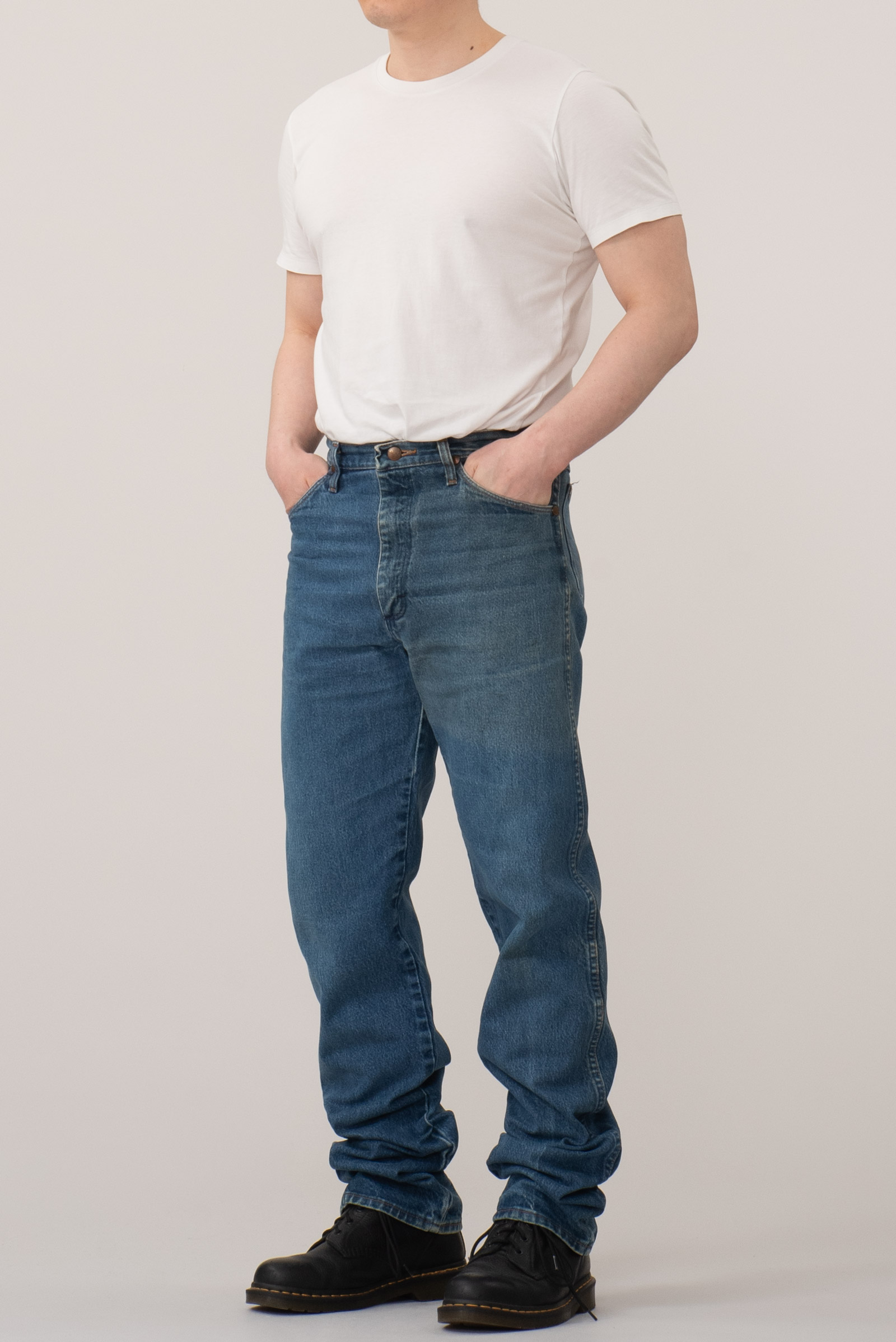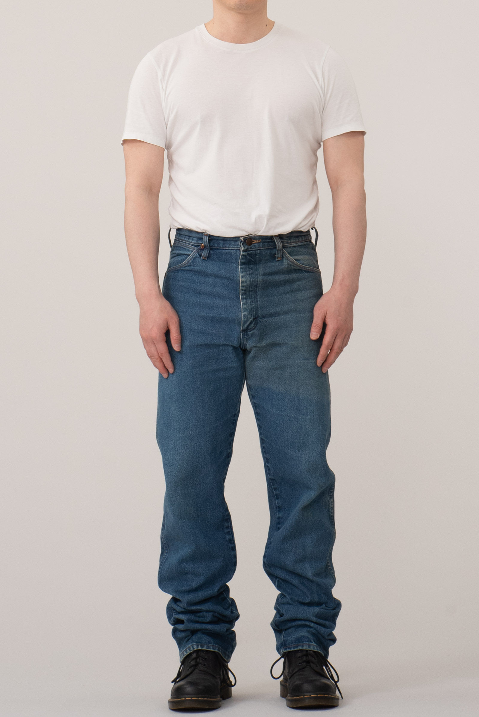 랭글러의 대표 모델인 13MWZ는 'Men's Western Zipper'의 약자로, 지퍼 플라이를 최초로 도입한 카우보이용 데님입니다. 이 모델은 프로 로데오 카우보이 협회(PRCA)의 공식 진으로 선정될 만큼 그 품질과 디자인을 인정받았습니다. 이번 제품은 1990년대 미국에서 제작된 오리지널 빈티지로, 랭글러 특유의 견고한 데님 원단과 클래식한 디자인이 특징입니다.