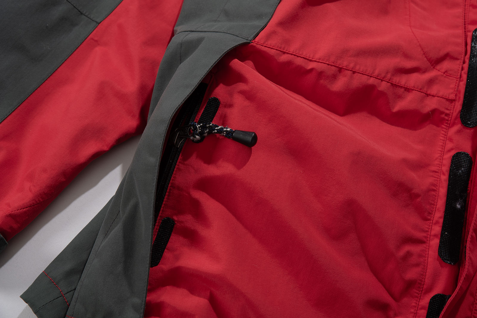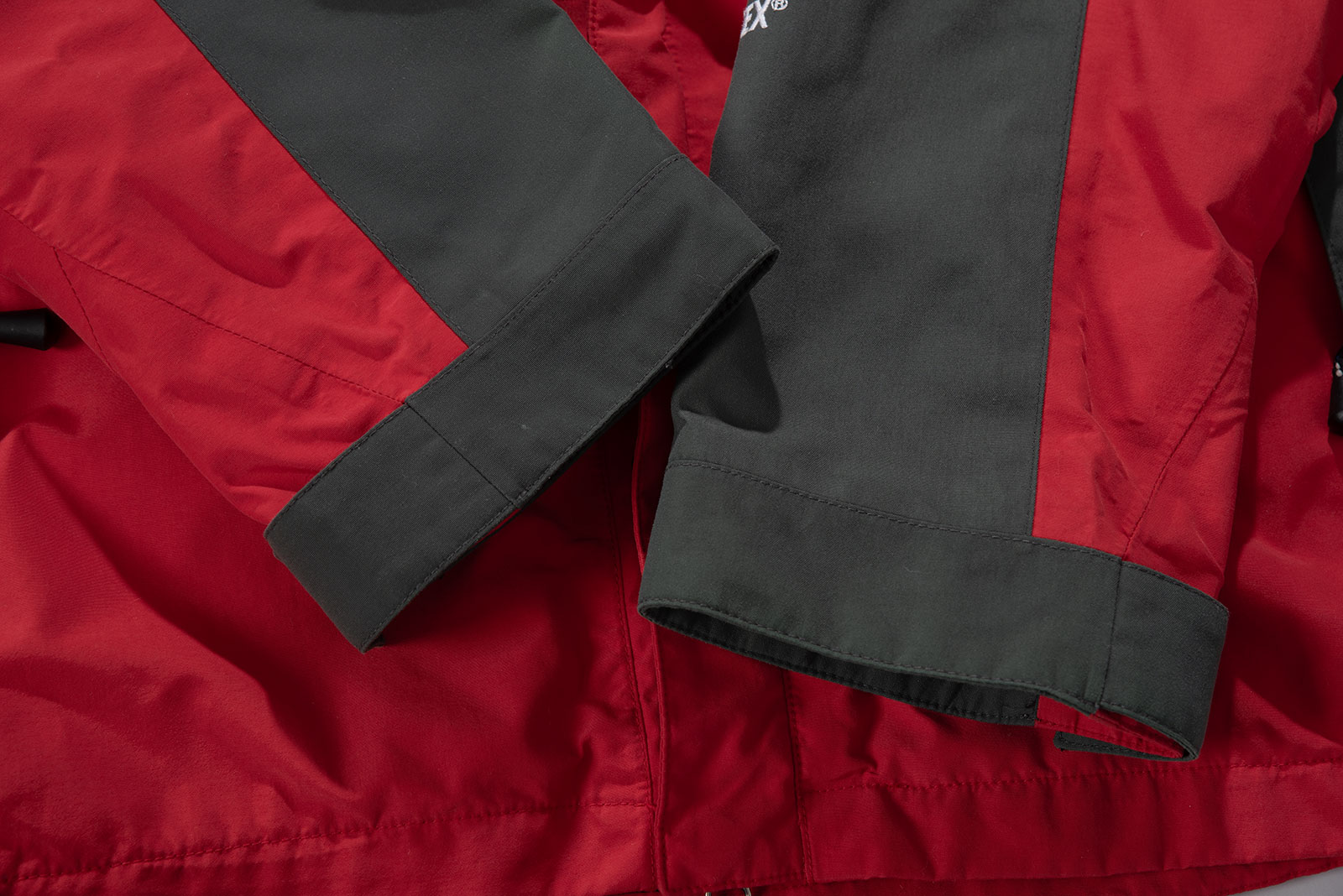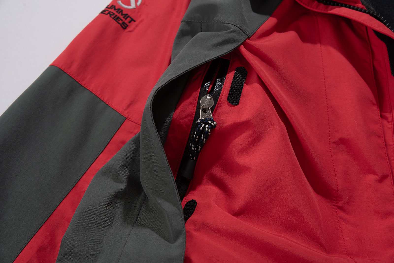 ✔️ 방수·방풍 고어텍스 원단 / 서밋 자수 로고 주변으로 살짝 우는 현상이 있긴 하지만 연식 대비 컨디션이 아주 좋은 편입니다. 보통 이런 올드 모델들은 고어 필름이 가수 분해되거나 하는 경우가 많습니다만, 해당 피스는 그런 게 전혀 없어요. 외부 포켓의 심테잎도 깔끔하죠.