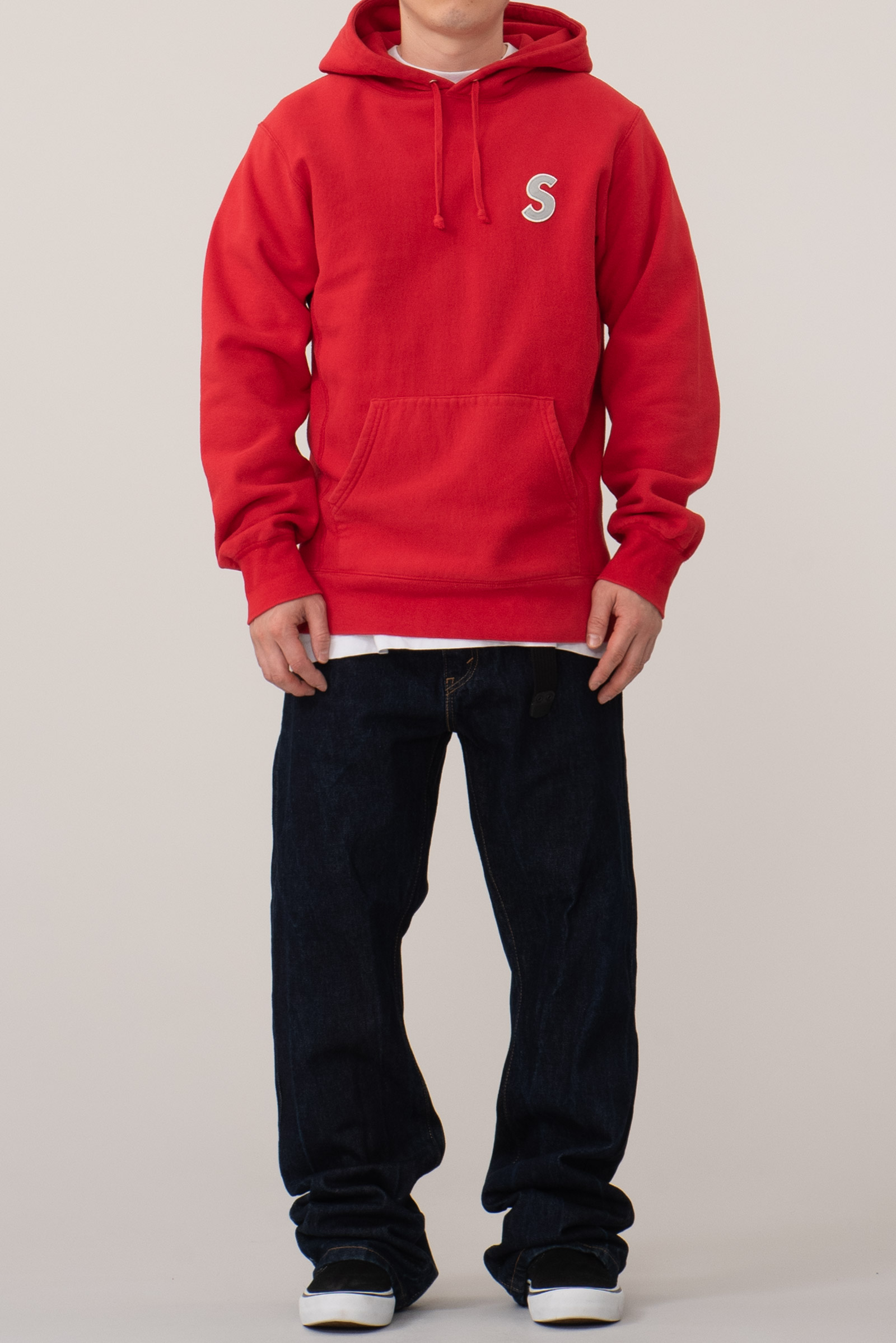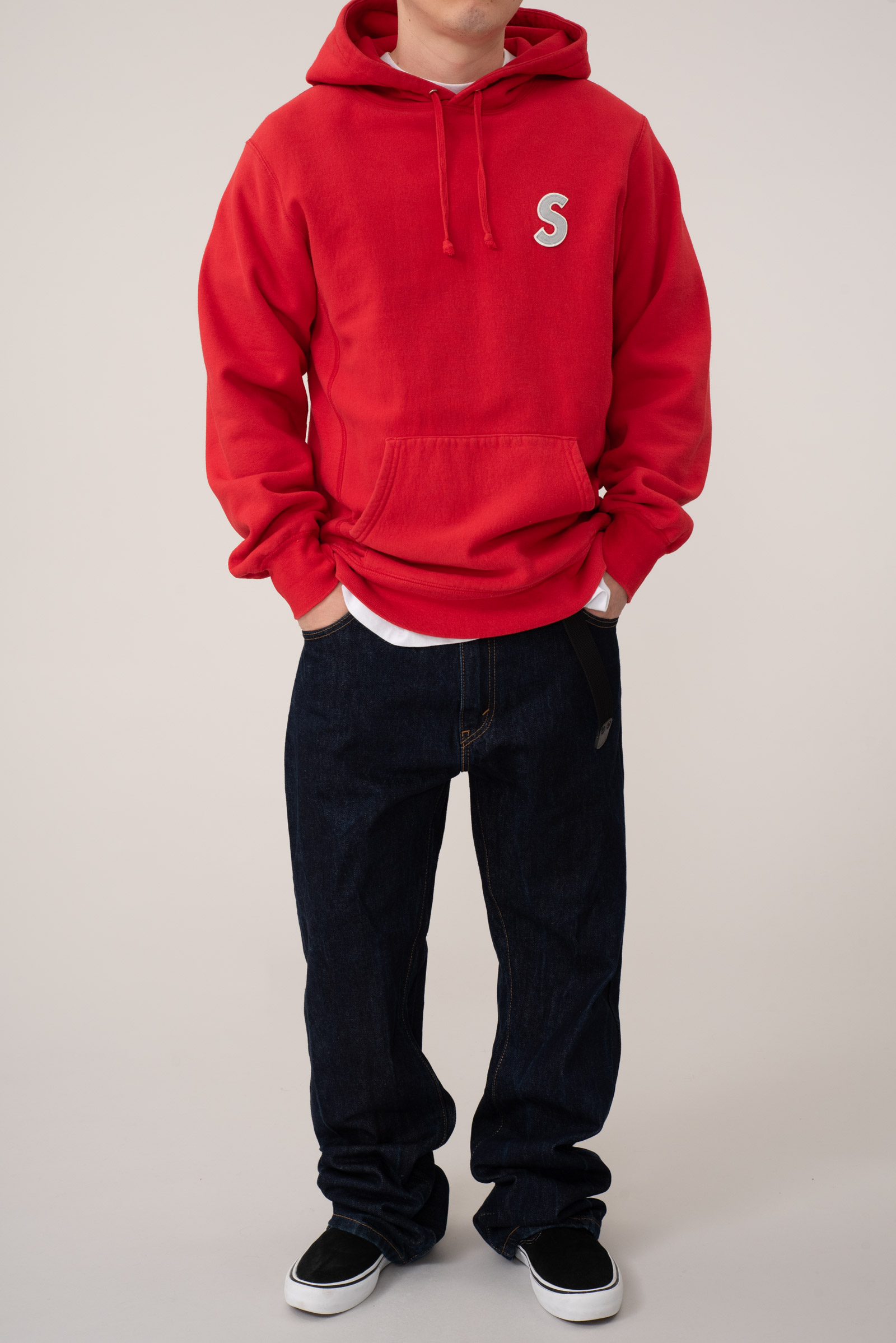 -🔴 Supreme 16SS Reflective S Logo Hoodie – 레드 바디 위에 놓인 심플한 포인트