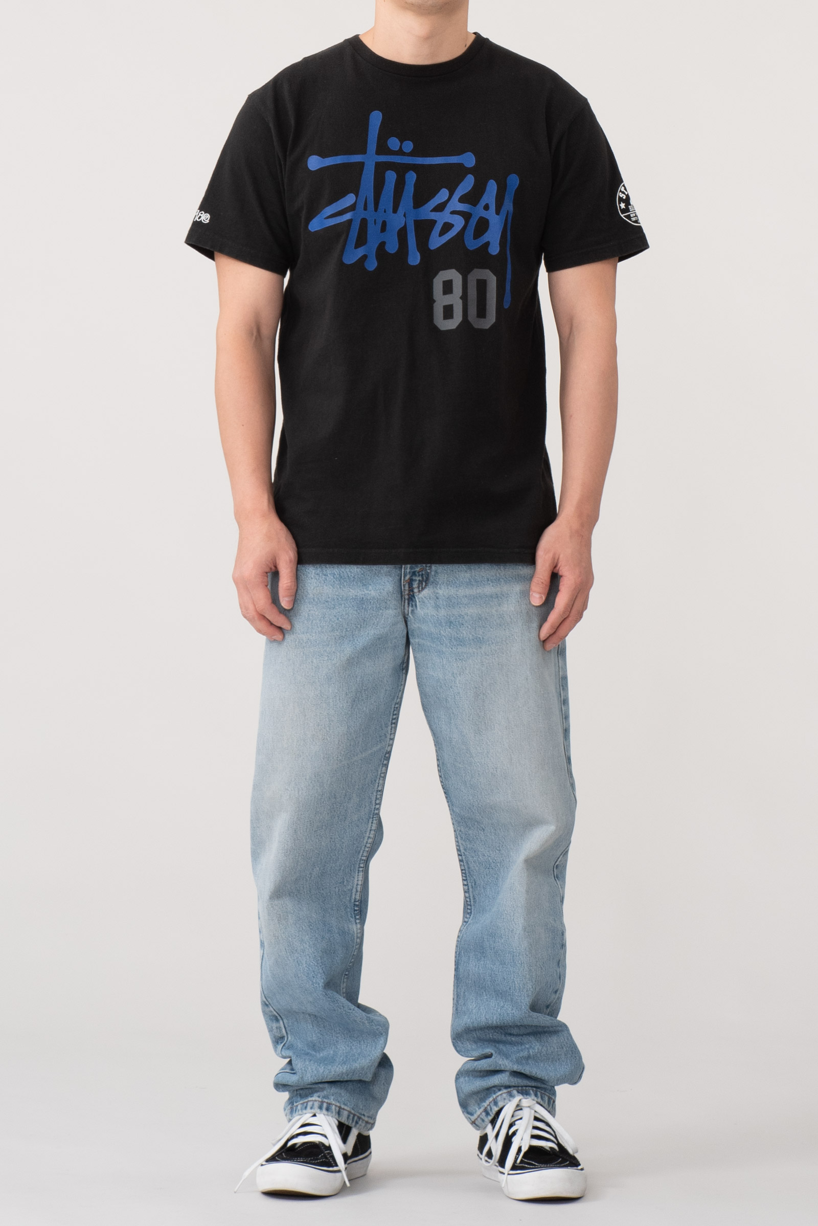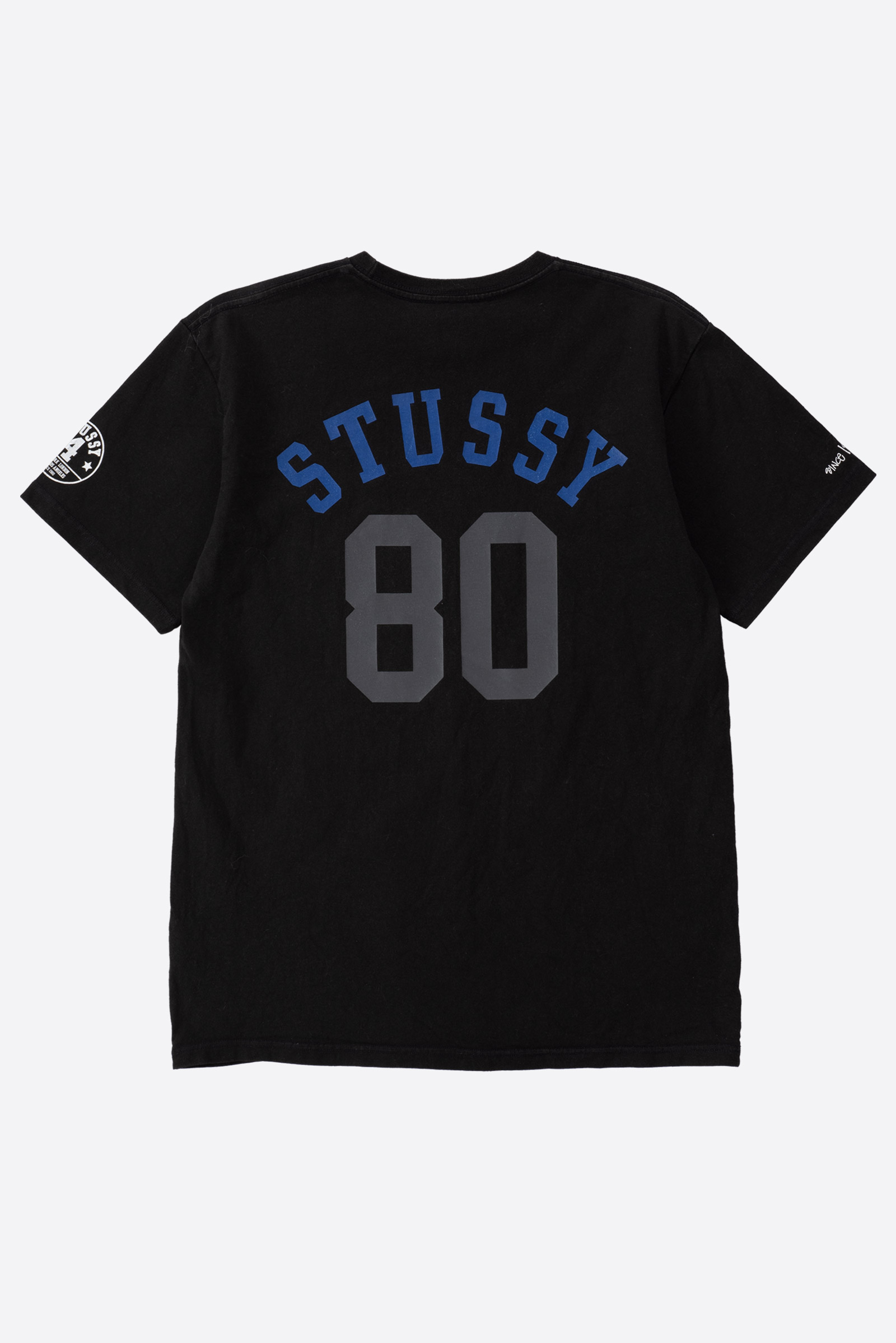 뒷면에는 아치형 STUSSY 레터링과 대형 넘버링이 마치 아카이브 팀 저지를 연상시키는 구조로 배치되어 있습지요.