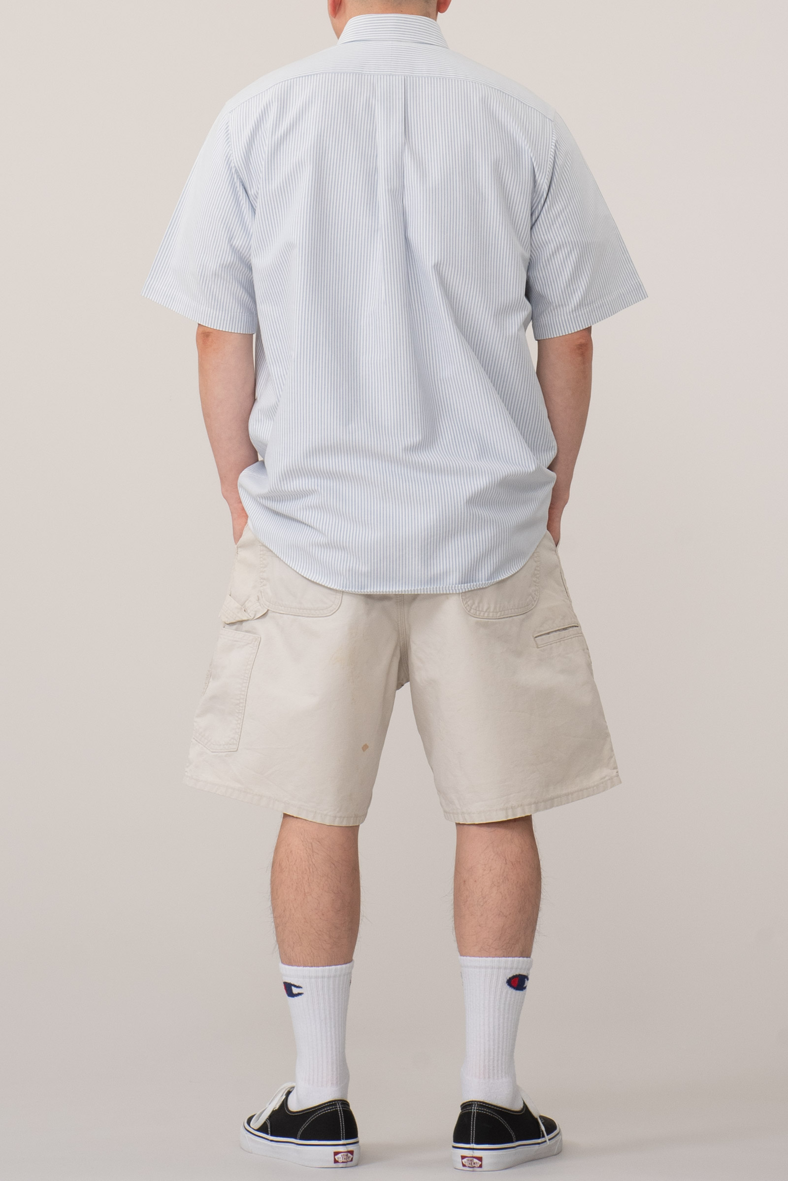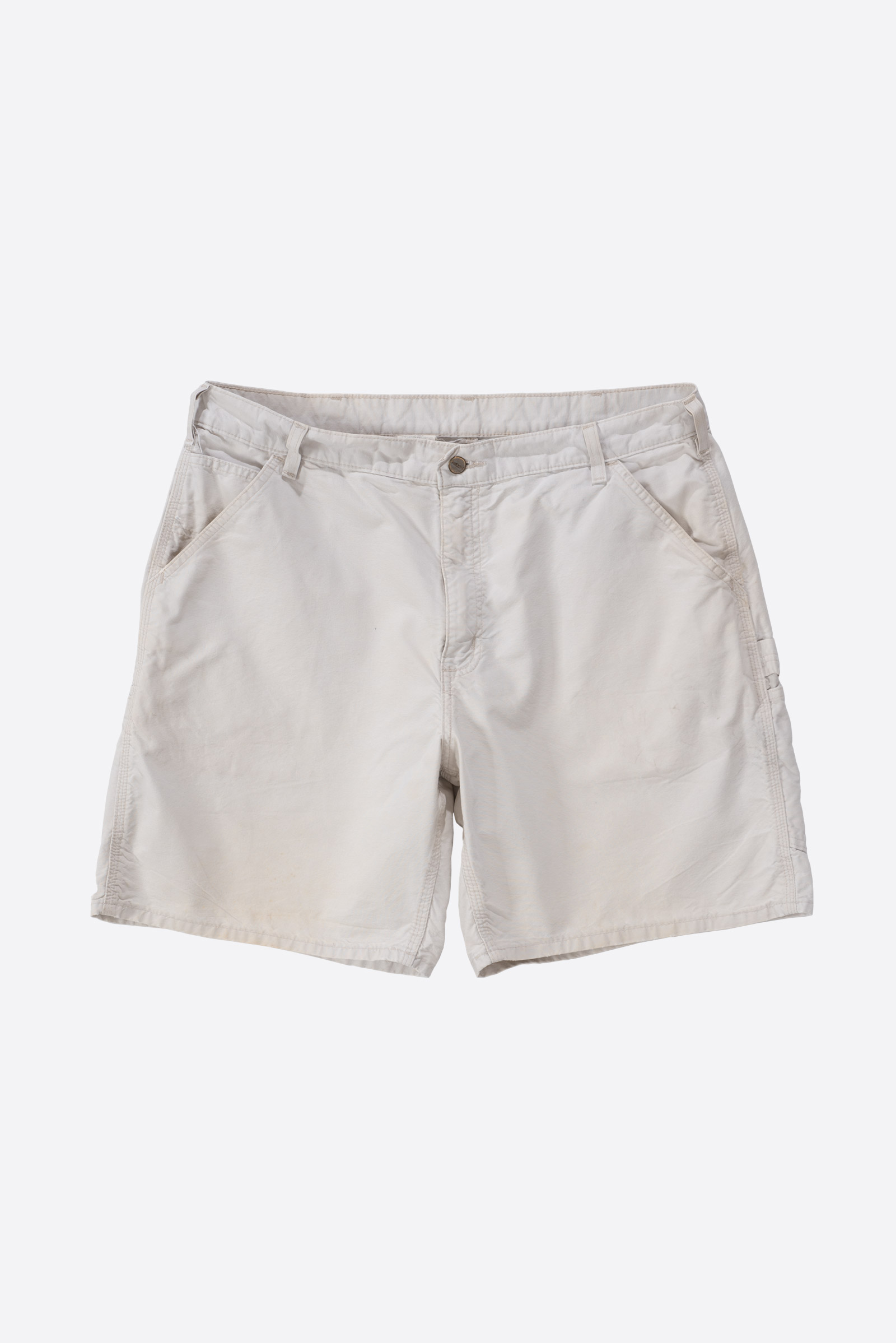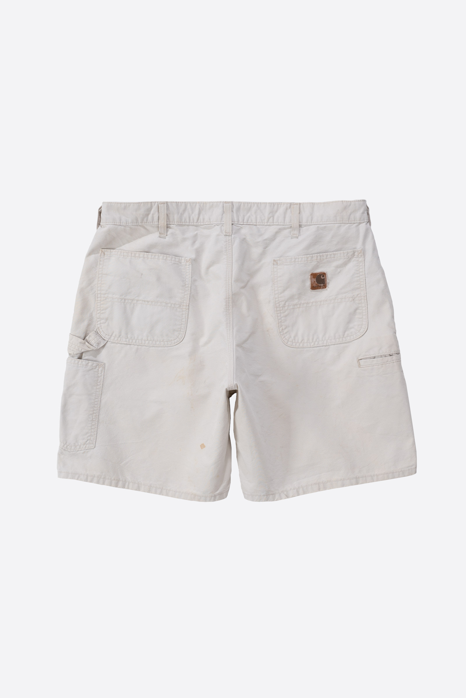 오프화이트 컬러의 칼하트 워크 쇼츠입니다. 100% 코튼 캔버스 원단으로 제작되었으며, 넉넉한 핏과 여유 있는 실루엣을 가지고 있는 피스입니다. 후면에는 큼직한 백 포켓 두 개와 툴 포켓, 해머 루프 등 워크웨어 디테일이 반영되어 있어 기능성과 디자인을 동시에 만족시킵니다.
