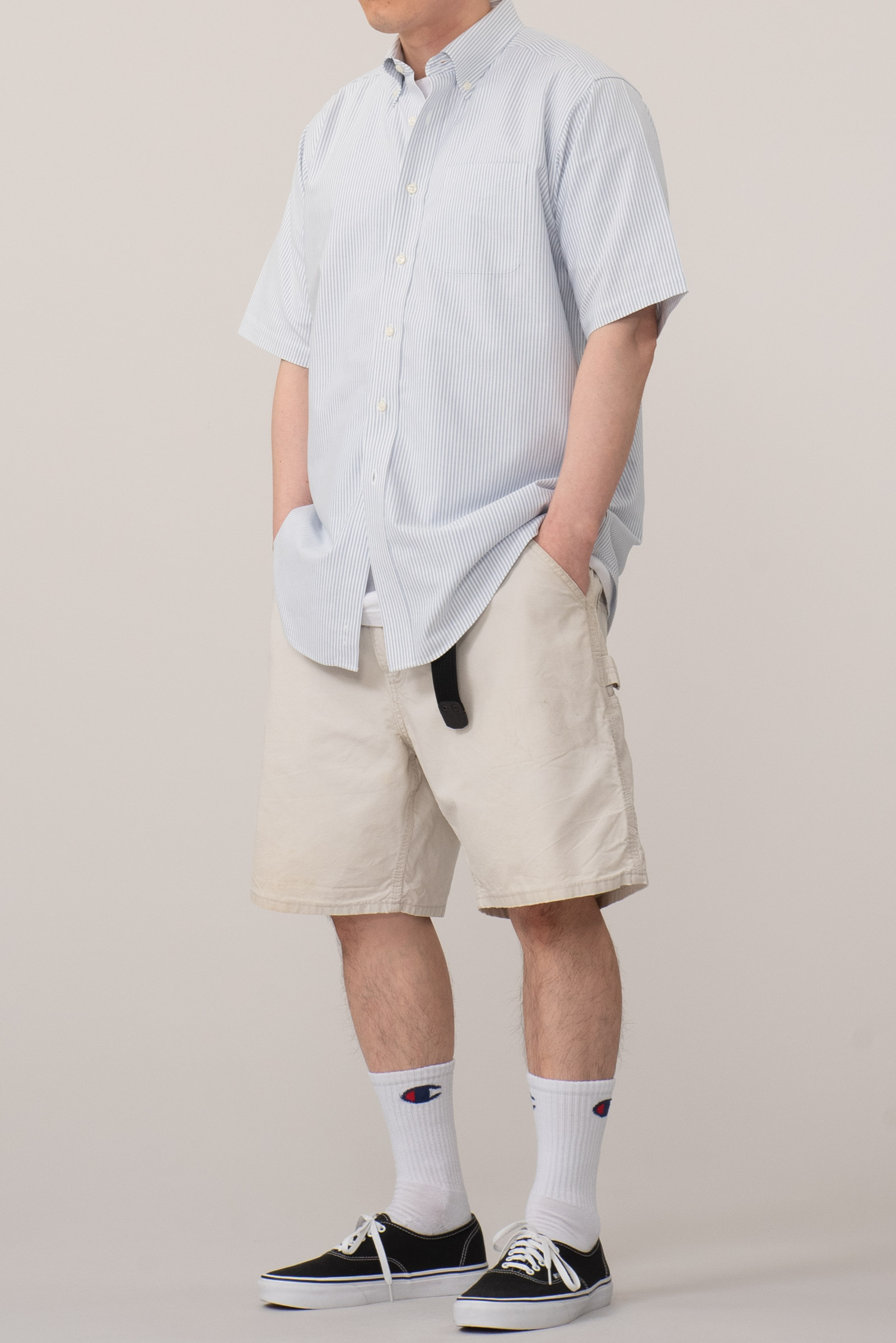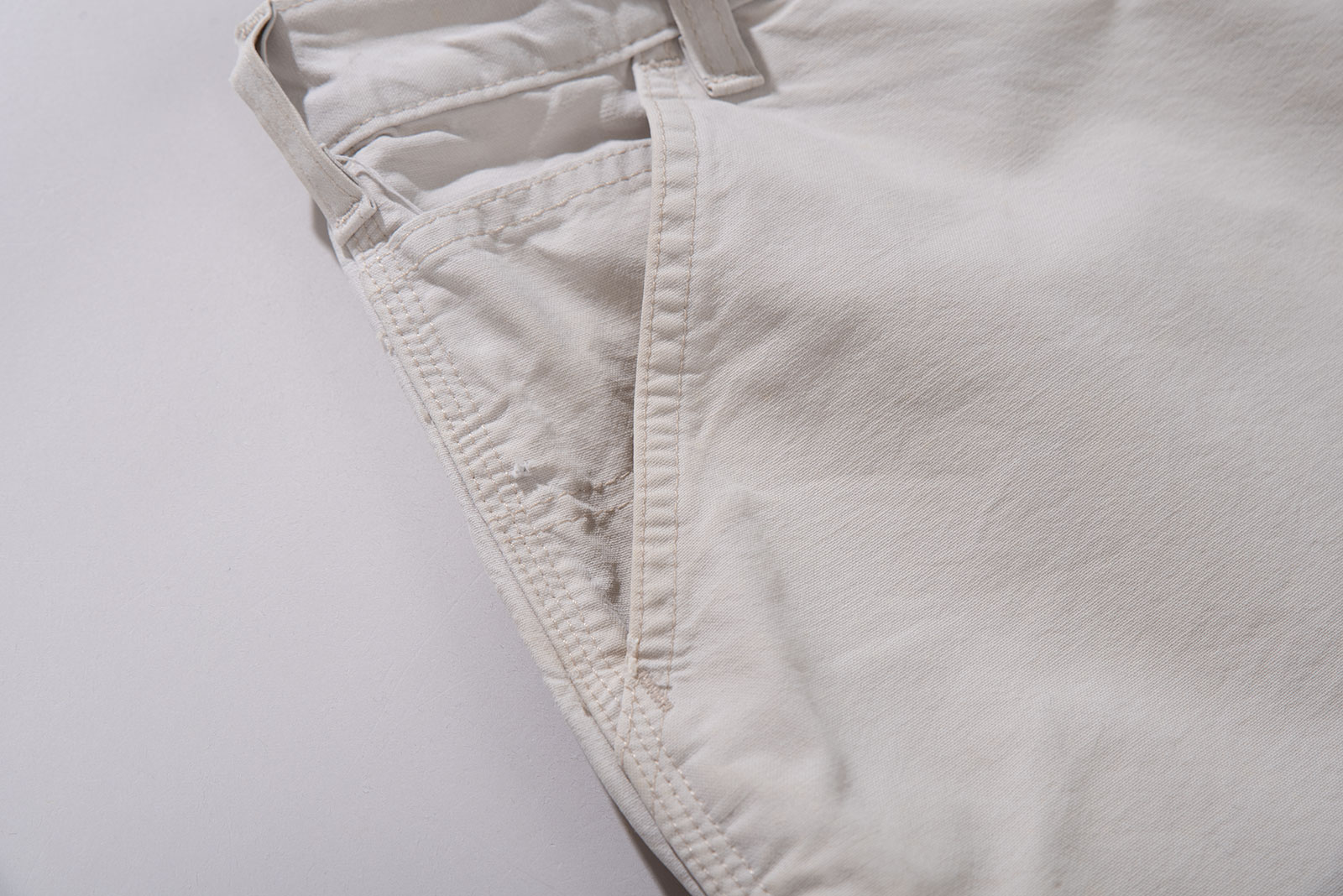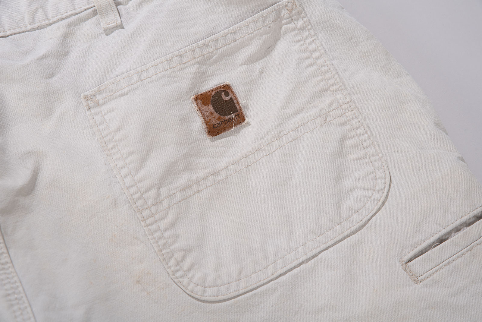 오프화이트 컬러의 칼하트 워크 쇼츠입니다. 100% 코튼 캔버스 원단으로 제작되었으며, 넉넉한 핏과 여유 있는 실루엣을 가지고 있는 피스입니다. 후면에는 큼직한 백 포켓 두 개와 툴 포켓, 해머 루프 등 워크웨어 디테일이 반영되어 있어 기능성과 디자인을 동시에 만족시킵니다.