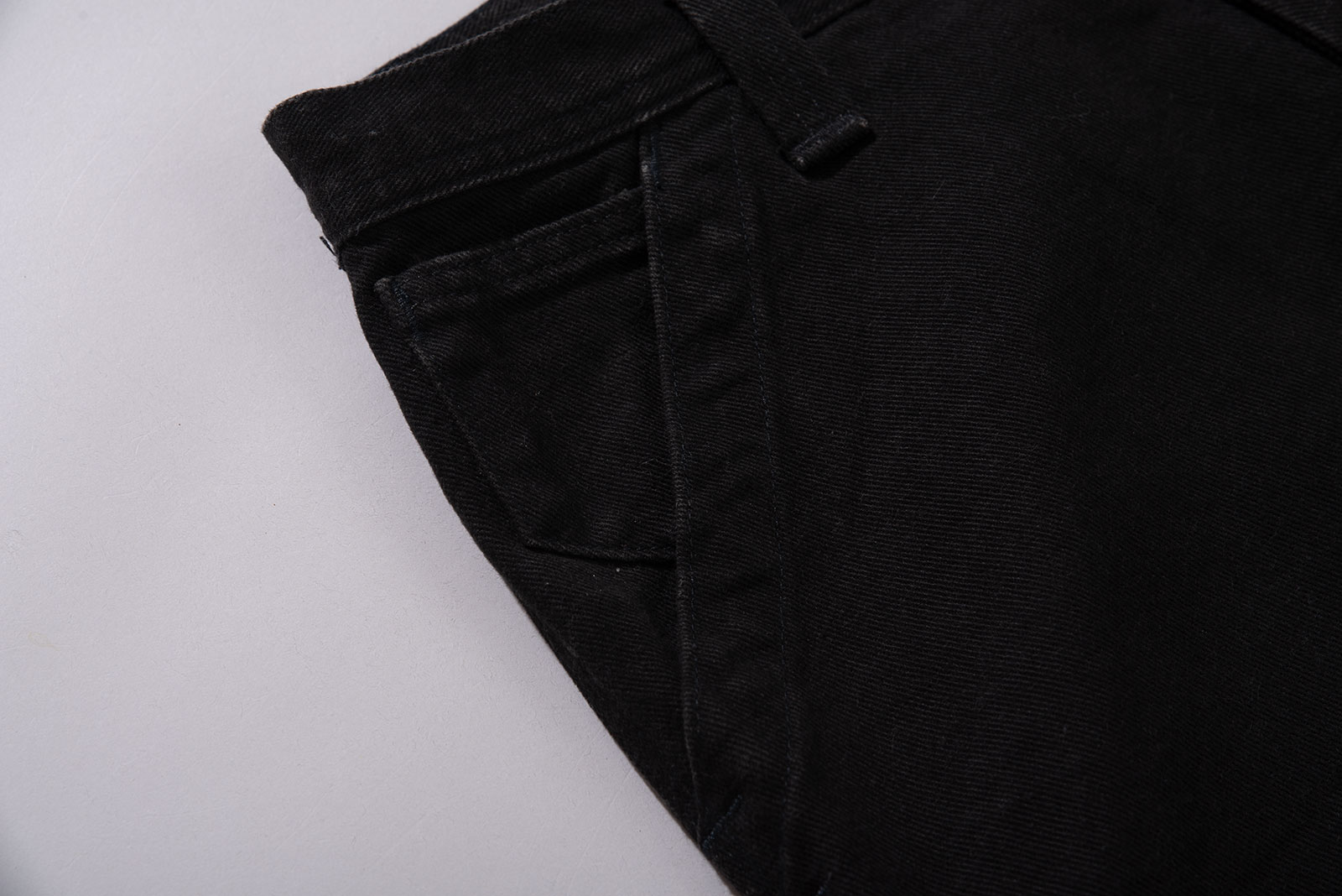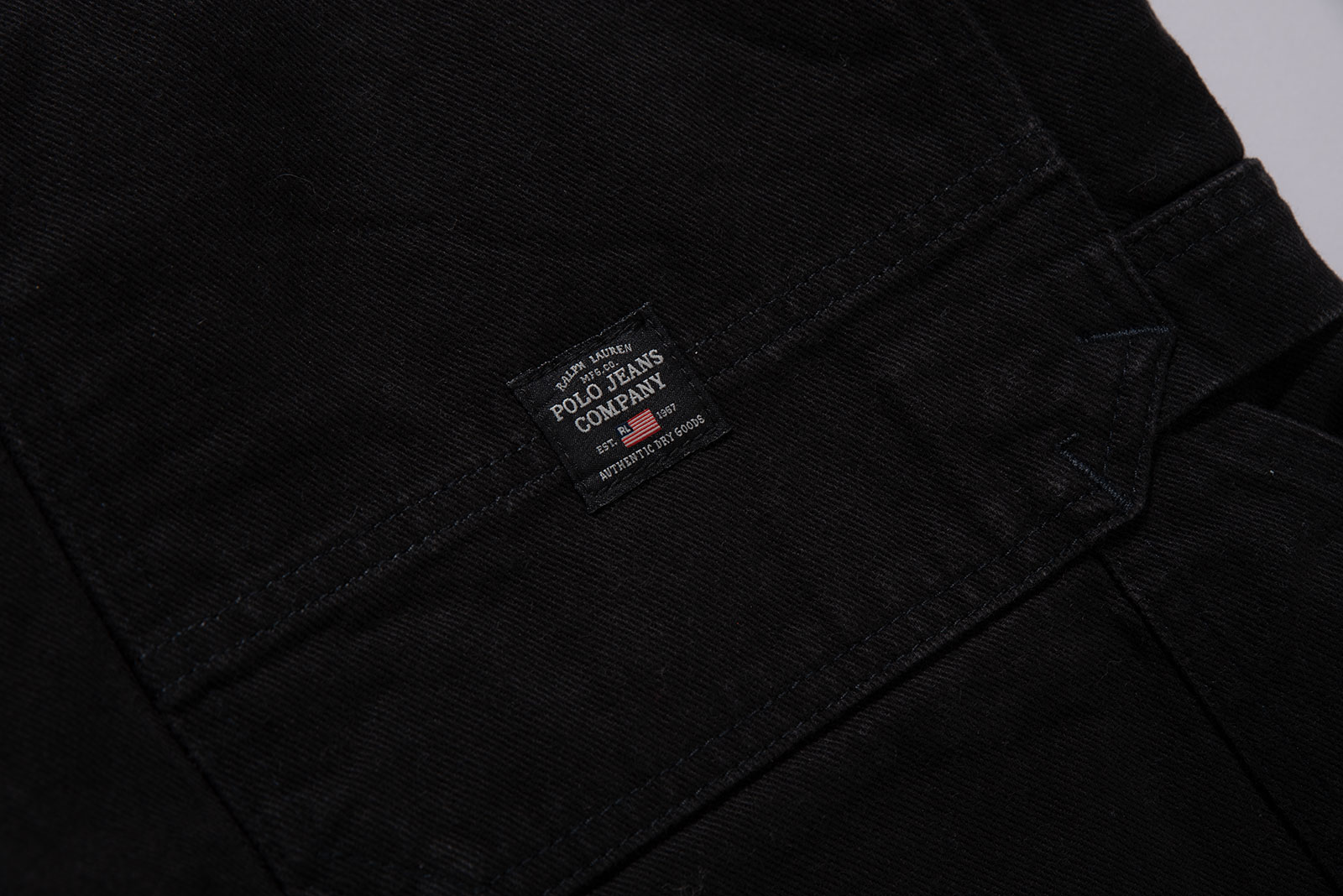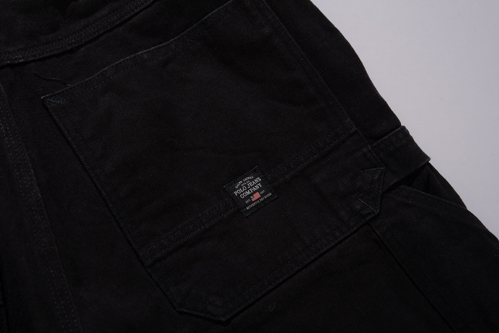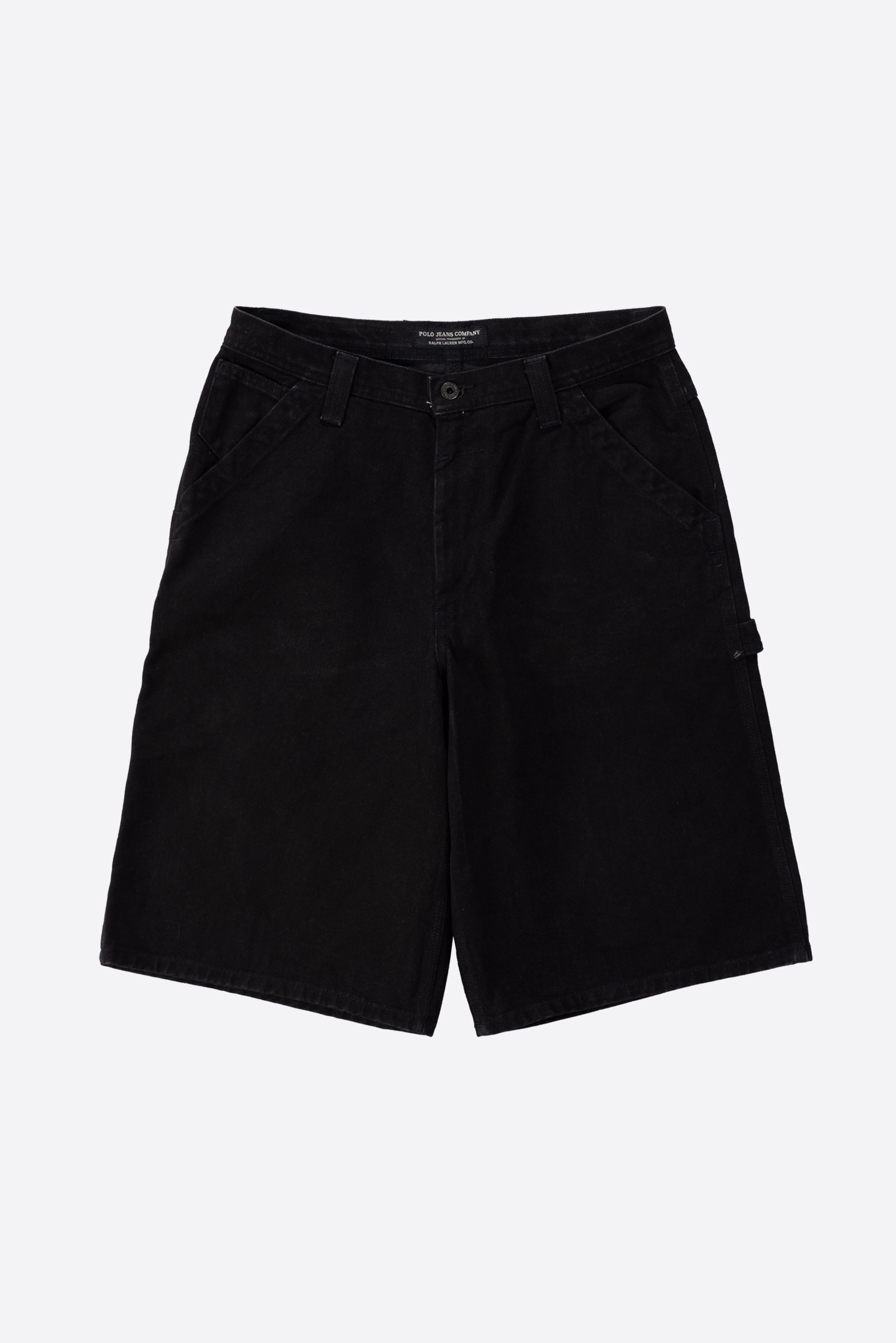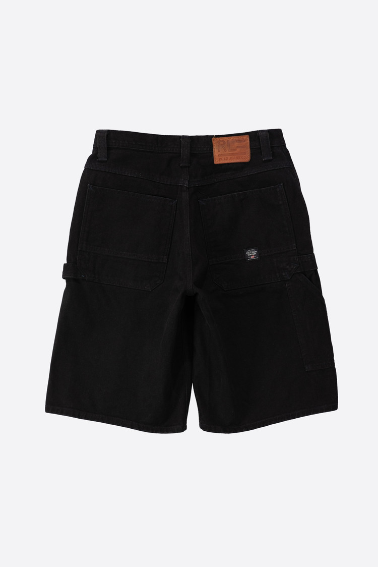 Polo Jeans Company에서 1990년대에 제작된 오리지널 카펜터 쇼츠로, Made in USA 제품군 중에서도 희소성이 높은 아이템입니다. 탄탄한 블랙 데님 소재로 제작되었으며, 워크웨어 기반의 구조적인 포켓 배치와 해머 루프 디테일을 갖춘 정통 카펜터 디자인이에요. 전면에는 경사 포켓이 적용되었고, 후면에는 큼직한 사각 포켓과 더불어 폴로진 초기형 라벨이 부착되어 있습니다.