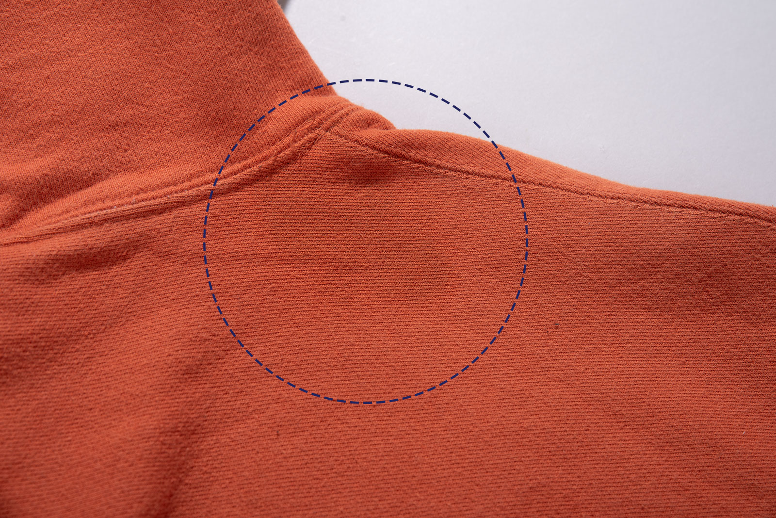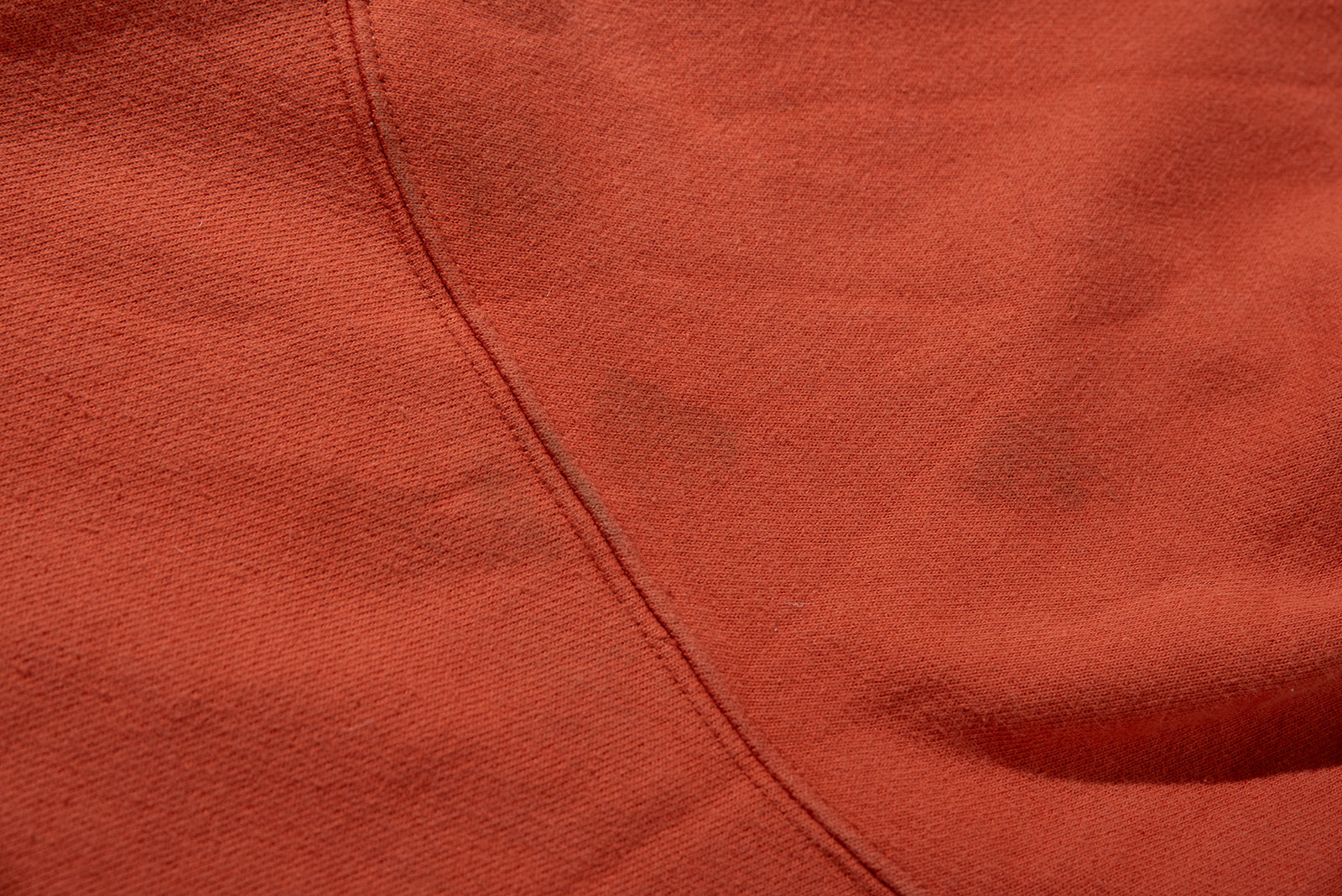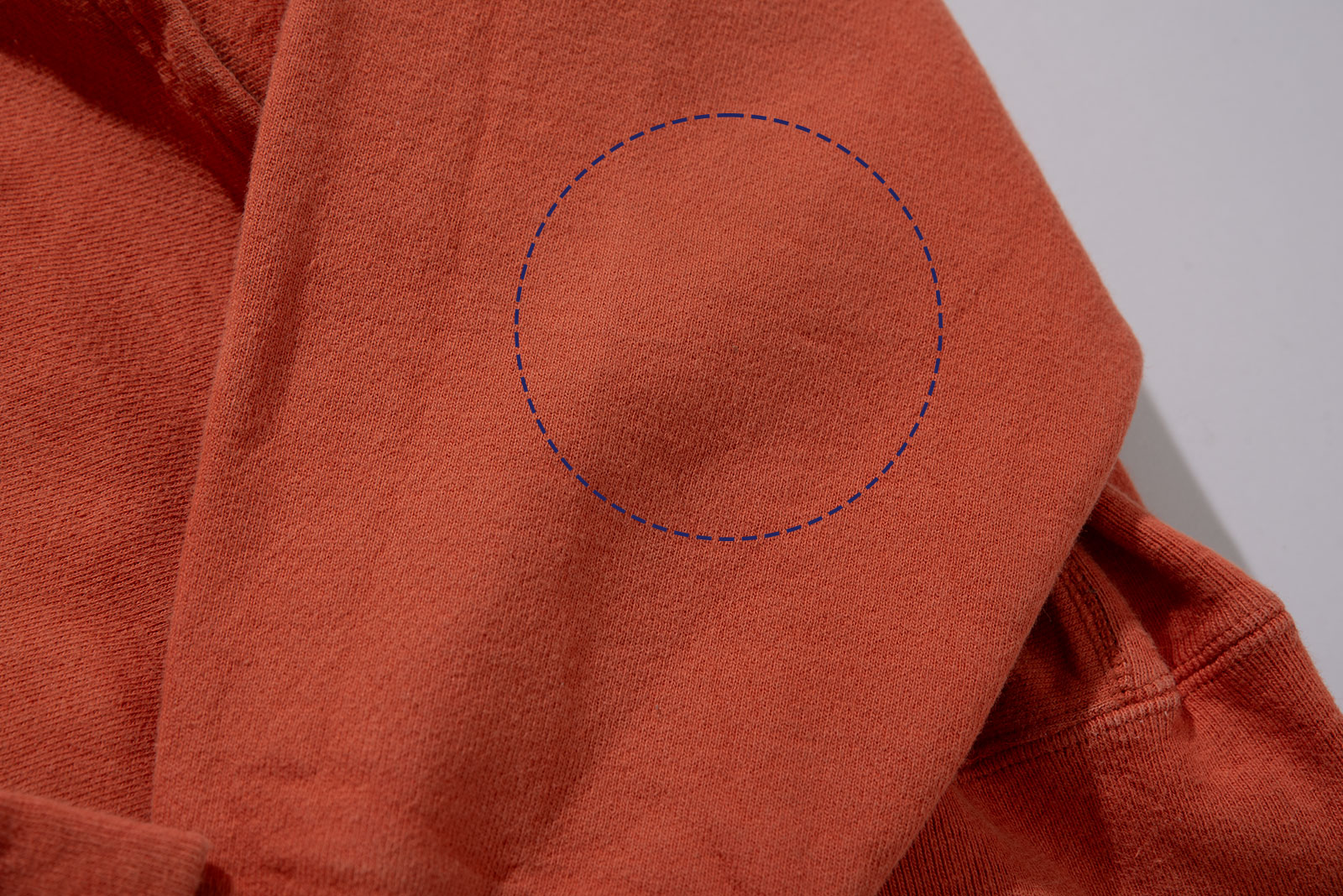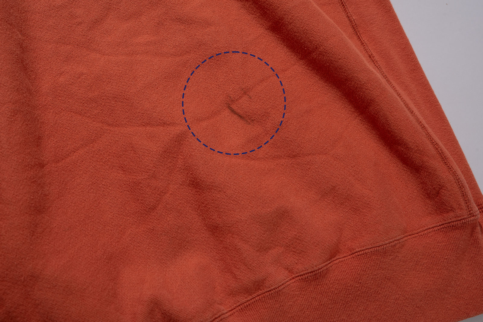컬러는 흔치 않은 번트 오렌지 계열로, 따뜻하고 포근한 느낌을 주며 봄, 가을뿐 아니라 겨울에도 이너로 활용하기 좋습니다. 전체적으로 오염이 많습니다. 사용감이 많고 오염도 많고 그래요. 편안하게 입으실 분들에게 권해드립니다.