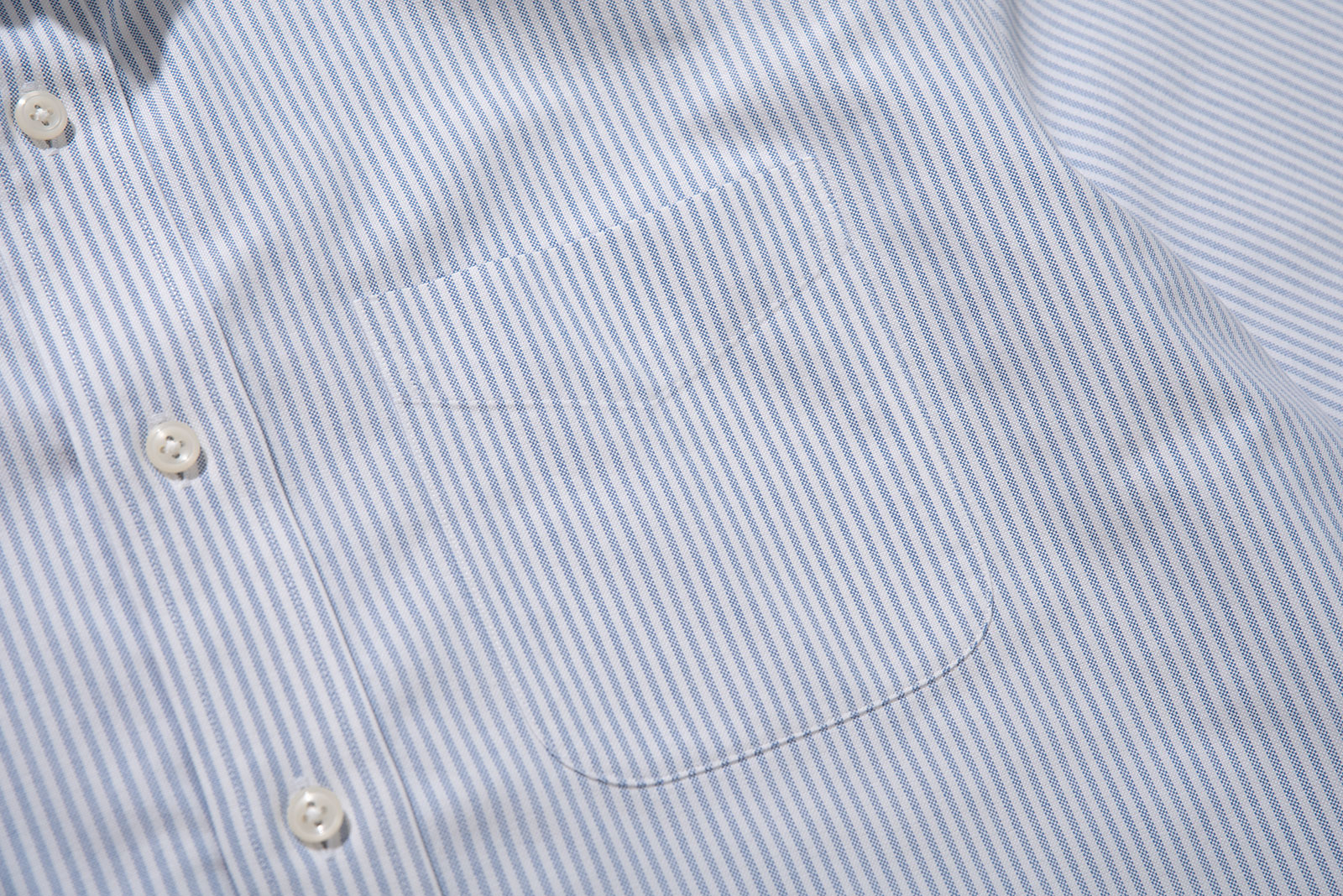 100% 코튼 소재에 WRINKLE RESISTANT 가공이 들어가 있어 데일리로 입기 좋고 관리도 편합니다. 섬세한 핀스트라이프 패턴은 가까이서 보면 직조감이 살아 있고, 멀리서 보면 단정하면서도 고급스러운 인상을 줍니다. 버튼다운 칼라와 왼쪽 포켓 디테일, 그리고 여유 있는 실루엣이 특징으로, 셔츠 단독 착용은 물론 이너 티셔츠와 레이어드해도 깔끔하게 떨어집니다.