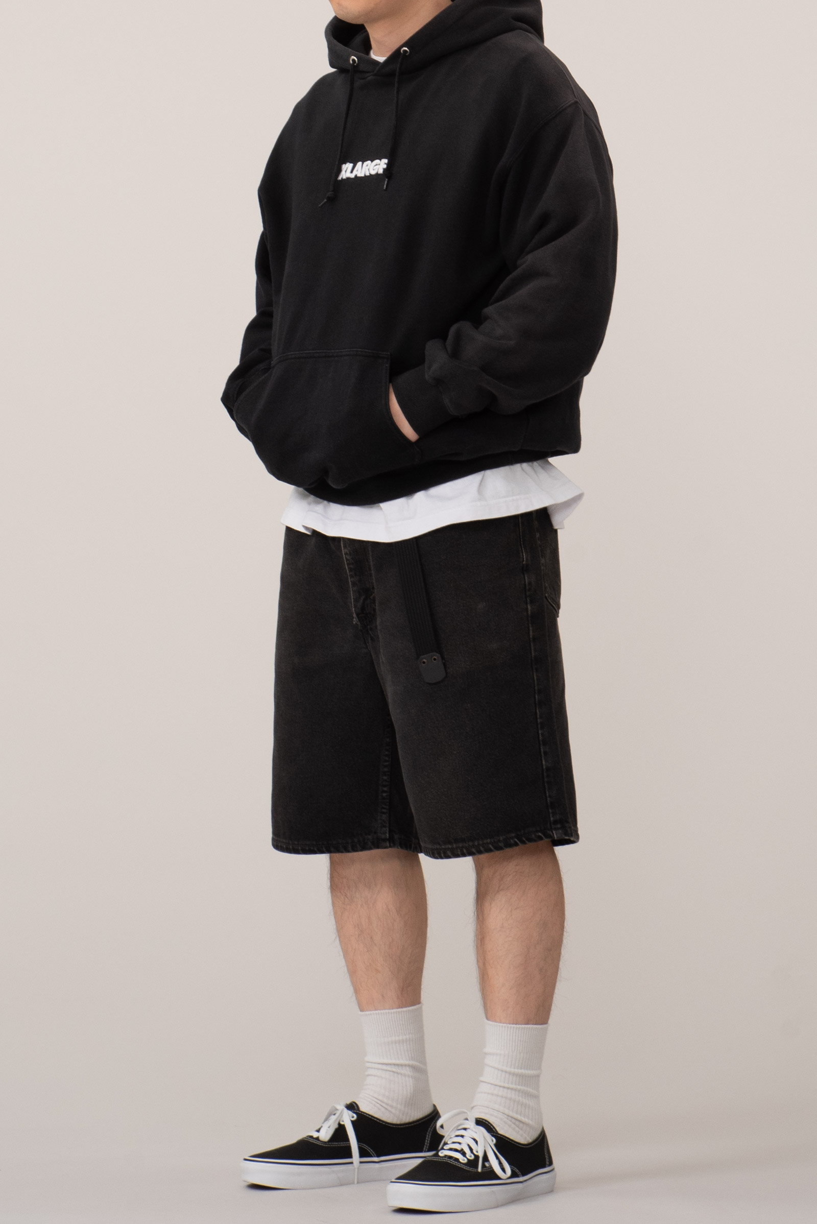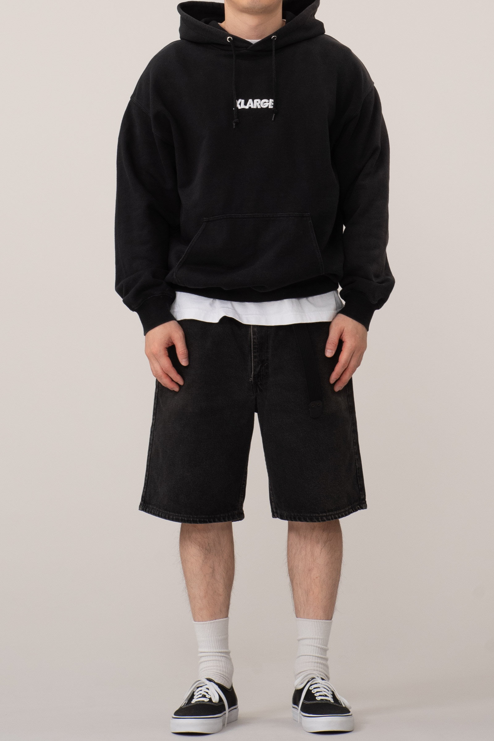 XLARGE의 헤리티지를 그대로 느낄 수 있는 블랙 컬러의 베이직 후디로, 전면 중앙에는 브랜드 네임이 입체 자수로 큼직하게 들어가 있습죠. 전체적인 디자인은 군더더기 없이 미니멀하지만, 오히려 그 담백함 속에서 90년대 스트리트 특유의 힘이 느껴집니다. 박시한 오버핏 실루엣에 드롭숄더 라인으로 여유롭게 떨어지는 핏이고, 묵직하고 도톰한 헤비 코튼이라 체감 온도 낮은 계절에도 충분히 든든하게 입을 수 있습니다.