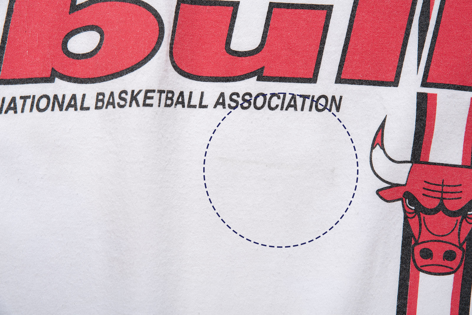 Logo Athletic 공식 NBA 라이선스를 기반으로 제작한 시카고 불스 그래픽 티셔츠입니다. 1990년대 중후반 미국 내 스트리트 캐주얼 시장에서 활발히 유통된 스포츠웨어 아이템이에요.