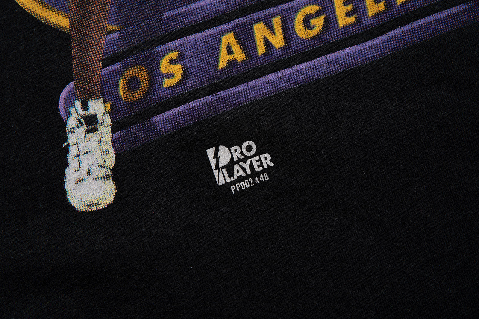 프로플레이어(Pro Player)는 1990년대 미국에서 스포츠 팀 라이선스를 기반으로 다양한 그래픽 티셔츠를 선보였던 브랜드입니다. 지금은 사라졌지만, 당시 NBA, NFL, MLB 팬들 사이에선 꽤 존재감 있는 브랜드였고, 특히 90년대 후반부터 2000년대 초반까지의 농구 문화와 밀접한 스타일을 보여줬어요. 이 티셔츠는 그 전성기 시절을 대표하는 디자인 중 하나로, 코비 브라이언트가 등번호 8번을 달고 뛸 때의 모습을 담고 있는 제품입니다.