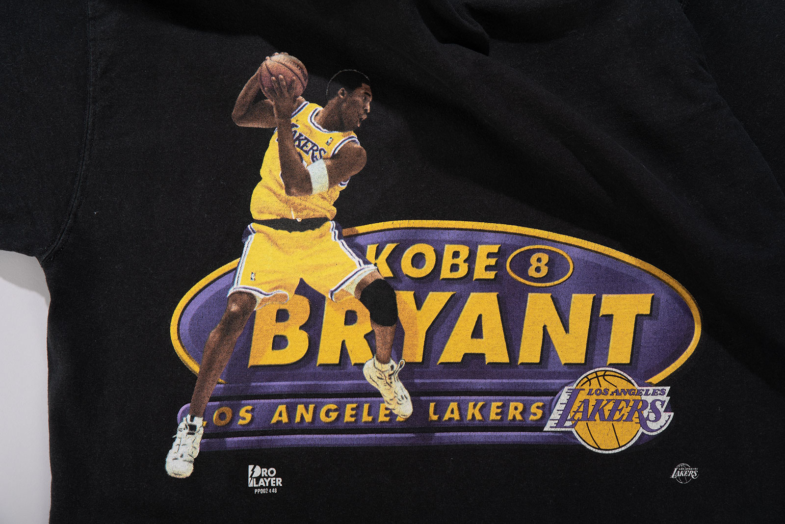 코비가 막 신인이란 타이틀을 벗고 주전으로 활약하던 시기와 맞물려 제작 된 제품입니다. NBA 전반에 아이버슨, 빈스 카터, 샤킬 오닐 등과 함께 '스타 시스템'이 폭발하던 그때, 스트릿에서는 이런 그래픽 티셔츠가 힙합 문화와 맞물려 패션 아이콘으로 받아들여졌지요. 요즘 유행하는 Y2K 빈티지 무드에도 완벽하게 녹아드는 아이템이라 할 수 있겠습니다.