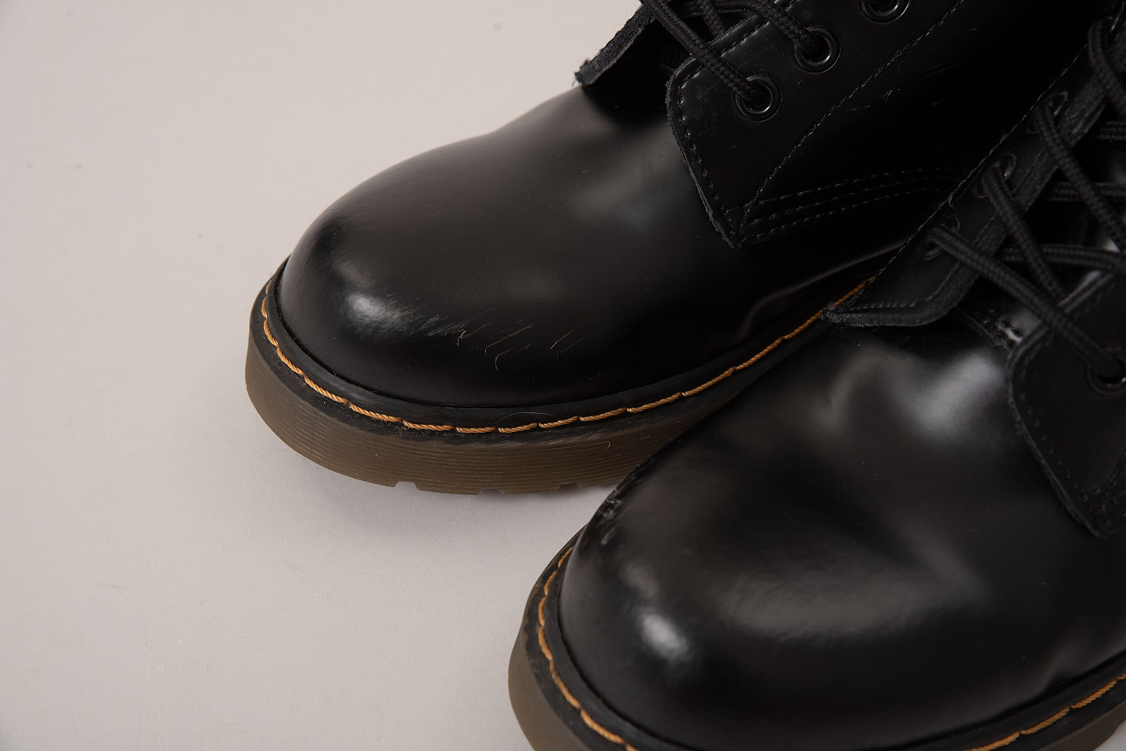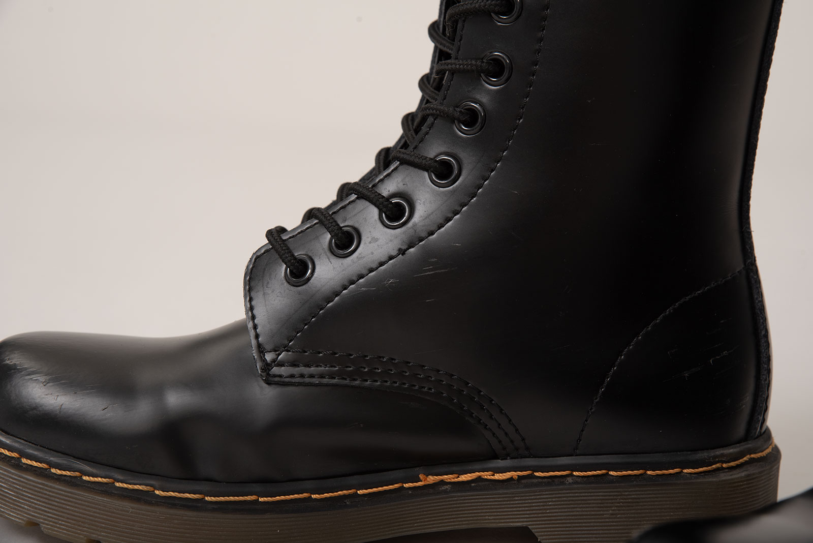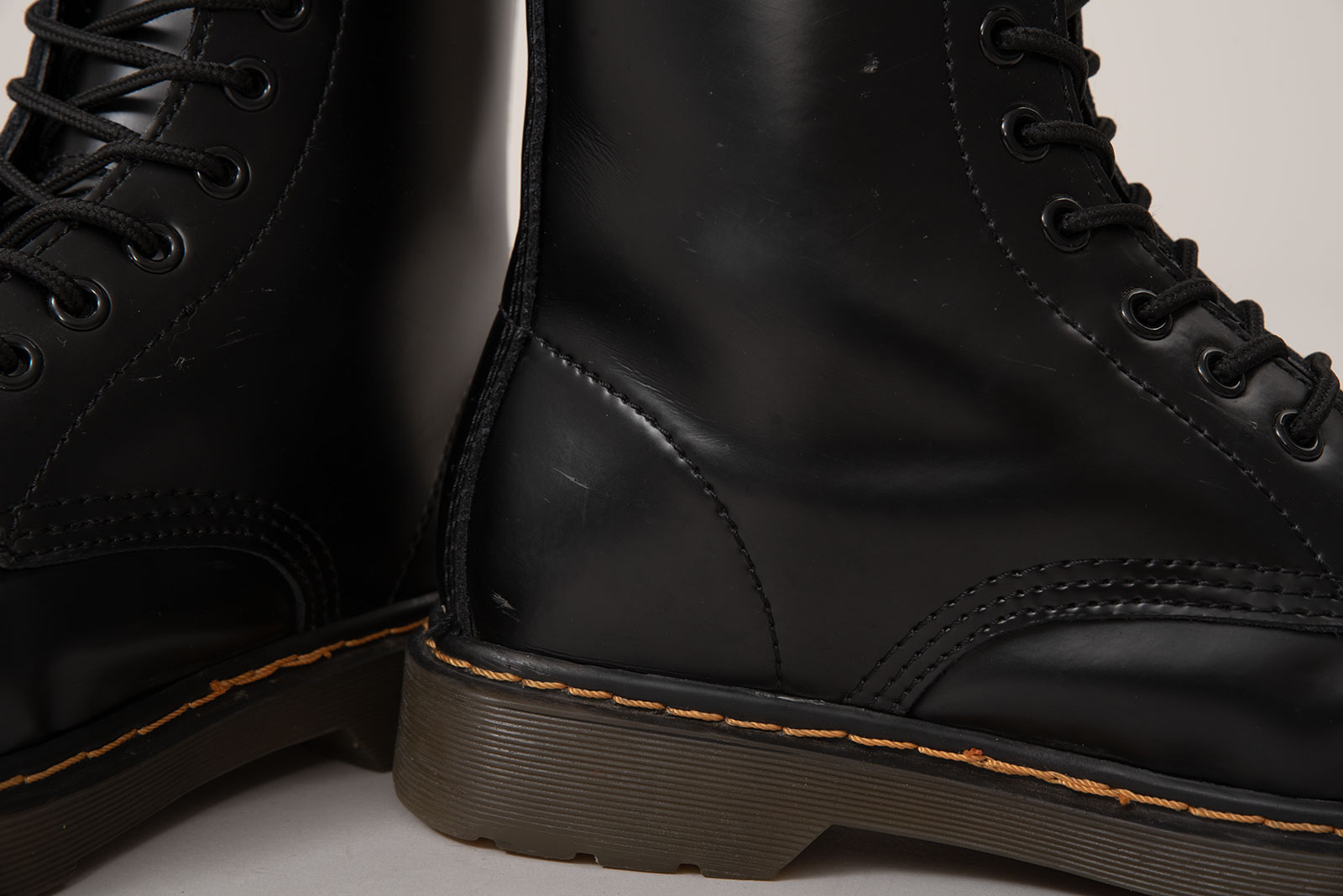 닥터마틴 1460 부츠는 1960년 4월 1일에 처음 출시됐습니다. 그래서 모델 넘버도 ‘1460’이죠. 지금 보는 이 제품은 그 원형을 충실히 따르면서도, 매끈하게 가공된 스무스 레더를 사용해 더 단정하고 현대적인 인상을 주는 모델입니다. 8개의 아이렛, 상징적인 옐로우 웰트 스티치, 그리고 반투명한 에어웨어(AirWair) 아웃솔까지 — 닥마 특유의 디테일이 그대로 담겨 있는 피스입니다.