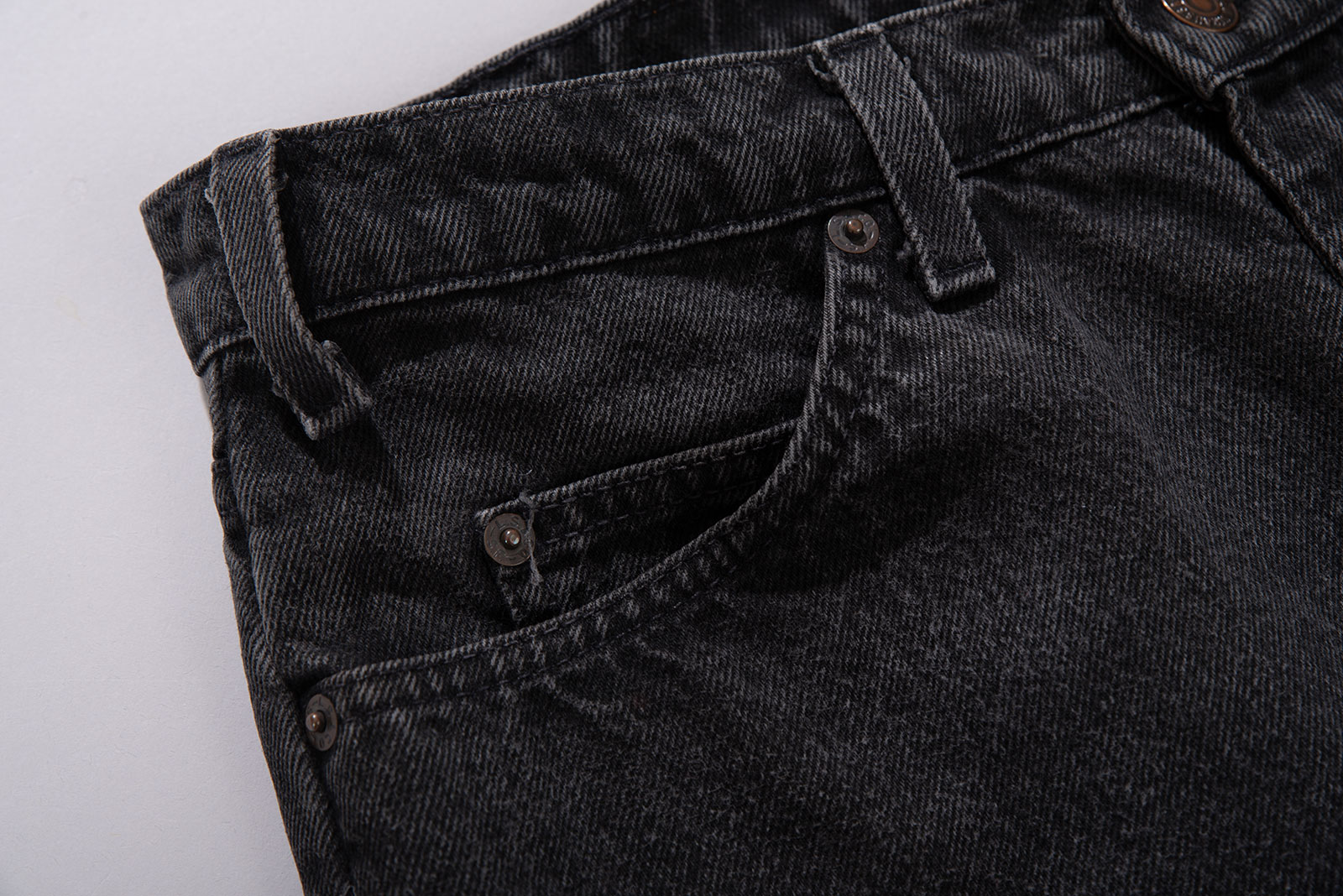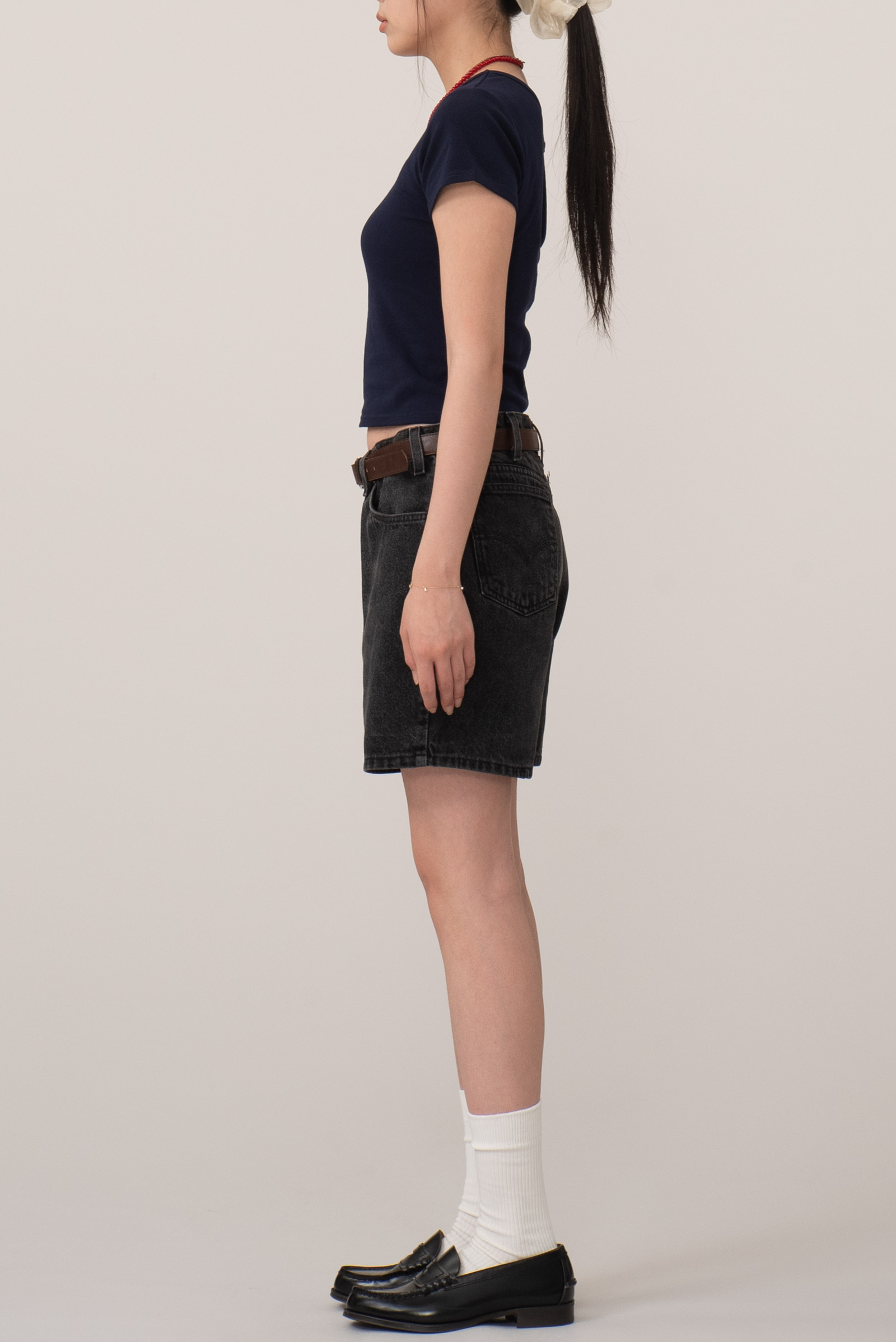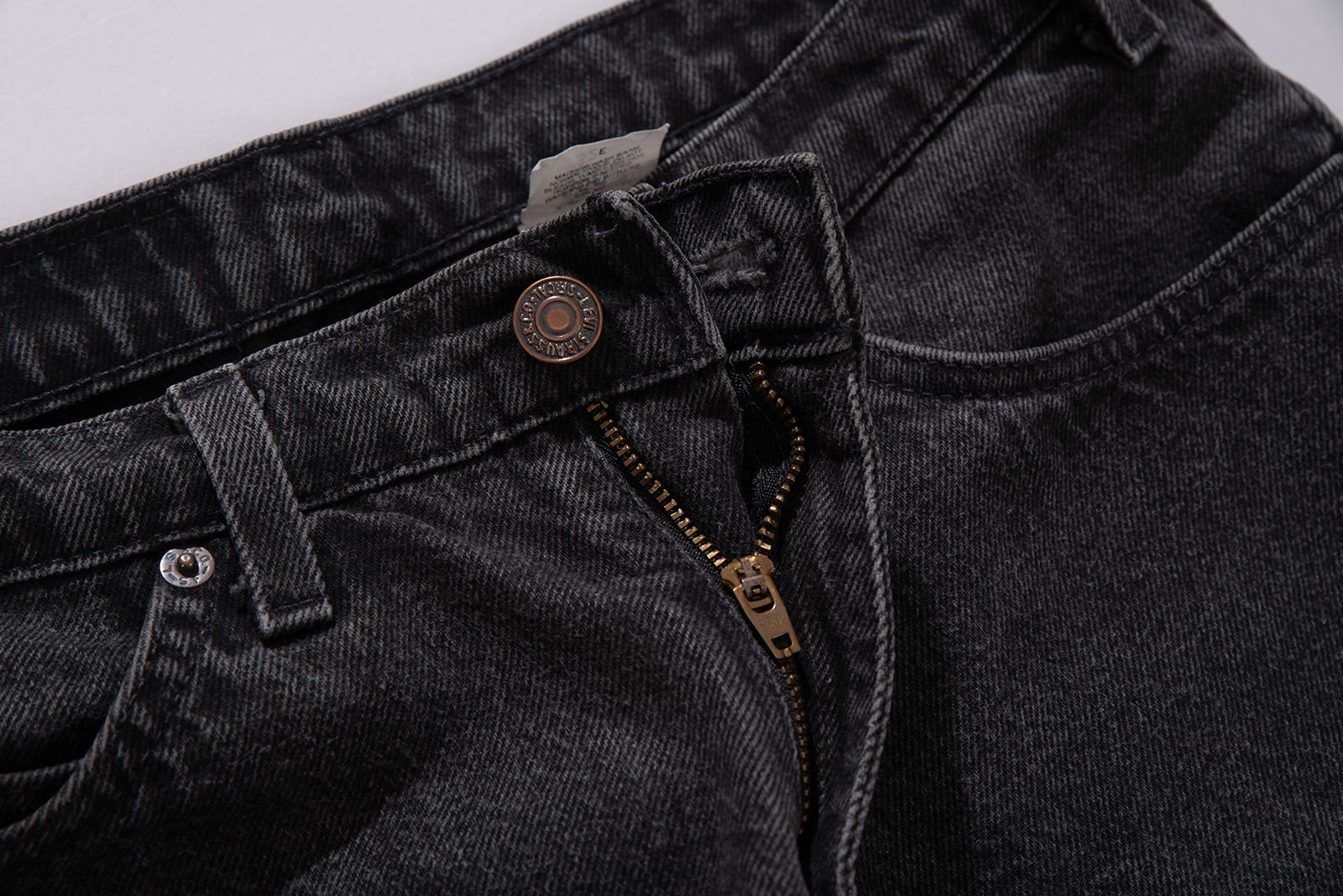 당시 미국은 90년대 후반 테크 붐과 함께 세기말적인 불안과 희망이 공존하던 시기였습니다. 청바지는 여전히 계층과 성별을 초월한 자유의 상징이었고, 블랙 데님은 그런 흐름 속에서 보다 도회적이고 무드 있는 아이템으로 받아들여졌어요. 이 제품은 그 시대의 공기를 담은 결과물이자, 오늘날에도 여전히 유효한 실루엣과 질감을 갖춘 빈티지 아이템입니다. 무심한 듯 정제된 이 팬츠 하나면 여름 스타일은 걱정없을 것 같습니다.