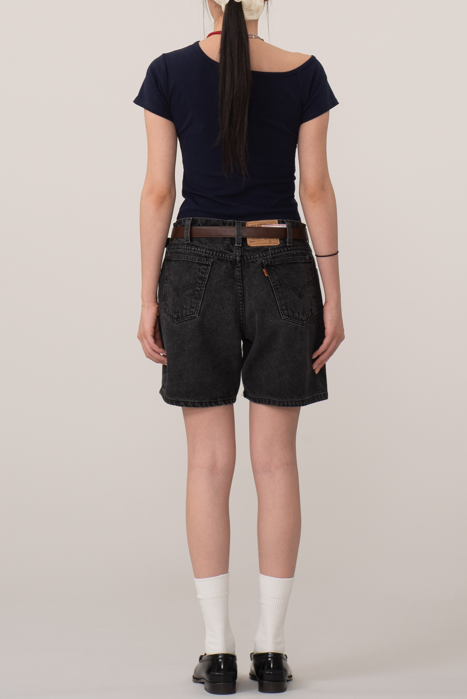 550 모델은 리바이스의 레귤러 핏 중에서도 가장 여유 있는 실루엣을 가진 릴랙스드 핏 라인으로, 허벅지에 넉넉한 공간을 둬 편안한 착용감을 제공하는 게 특징입니다. 특히 이 제품은 ‘HUSKY’라는 사이즈 라인으로, 기본 체형보다 허벅지와 힙이 살짝 더 넉넉하게 설계되어 있어 스타일링에 여유가 생기죠. 전체적으로 자연스러운 A라인 실루엣을 그리며 떨어지는 핏에 숏 한 기장감으로 오버한 실루엣에 시원한 비주얼까지 더해 스타일링하기 안정적인 제품입니다. 셔츠나 슬리브리스와 매치해 여름철 가볍게 연출하기에도 적당하죠.