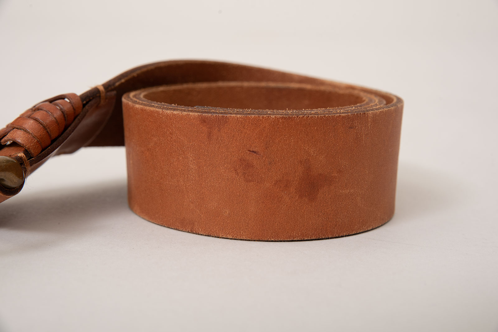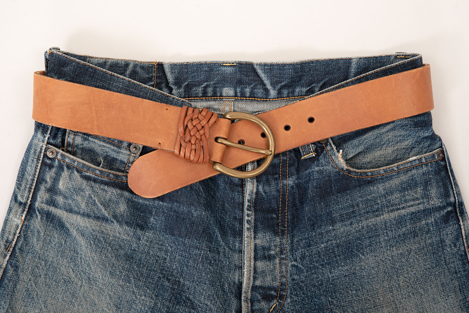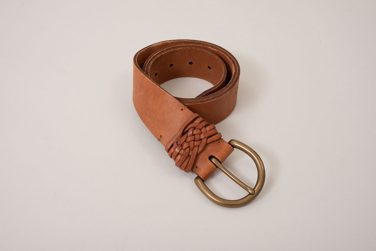 폴로 랄프로렌의 클래식 웨스턴 레더 벨트입니다. 클래식한 디자인과 수공 디테일이 돋보이는 아이템이죠. 너비감 있는 스트랩에 부드러운 텍스처의 내추럴 브라운 컬러 가죽이 사용되었고, 벨트 앞부분에는 얇은 가죽끈을 손으로 꼬아 엮은 디테일이 더해져 전통적인 웨스턴 감성을 머금고 있습니다. 둥글게 말린 황동 톤의 버클은 시간이 지나며 더욱 멋스럽게 태닝될 수 있는 재질로, 제품 전체적인 무드와 잘 어우러지죠.