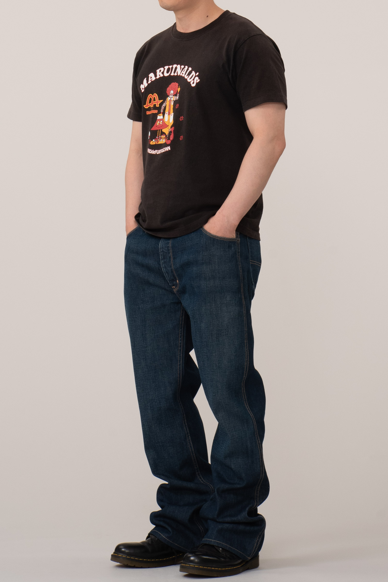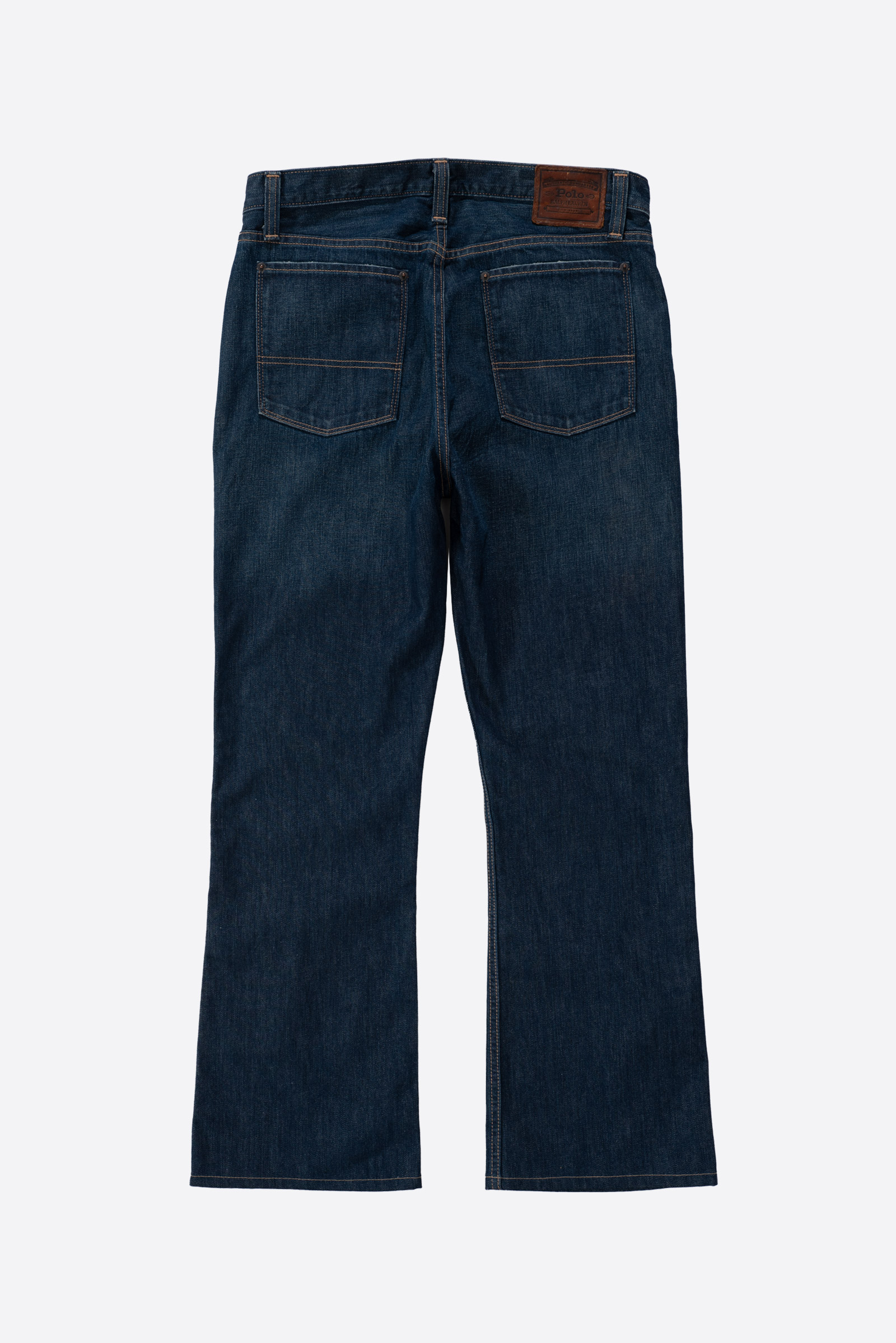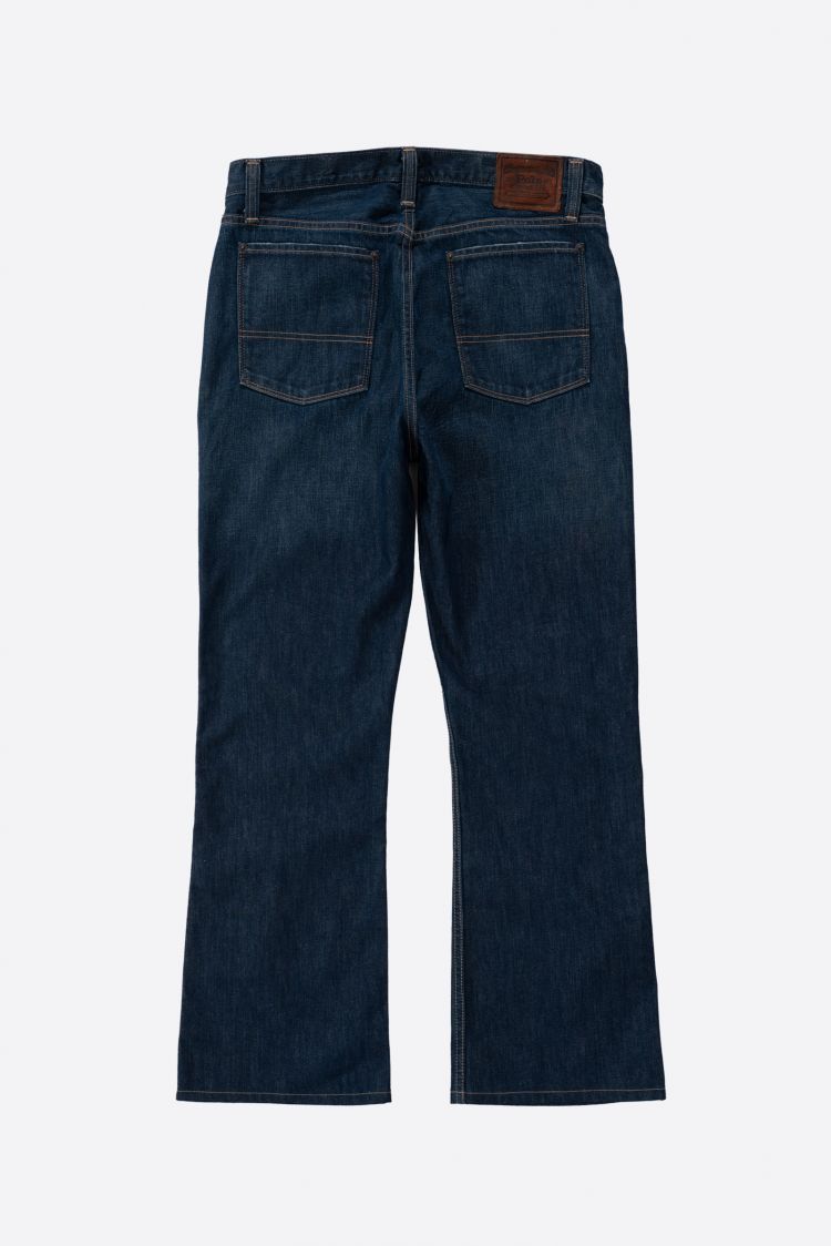 폴로 랄프로렌의 세미 부츠컷 데님 팬츠입니다. 종아리부터 살짝 퍼지는 세미 부츠컷 실루엣으로 전체적으로 자연스러운 안정감이 있습니다. 기장감이 어느 정도 있어 바닥에 닿는 기장감인데, 밑단이 살짝 쓸리는 맛으로 입기에 좋은 바지입니다.