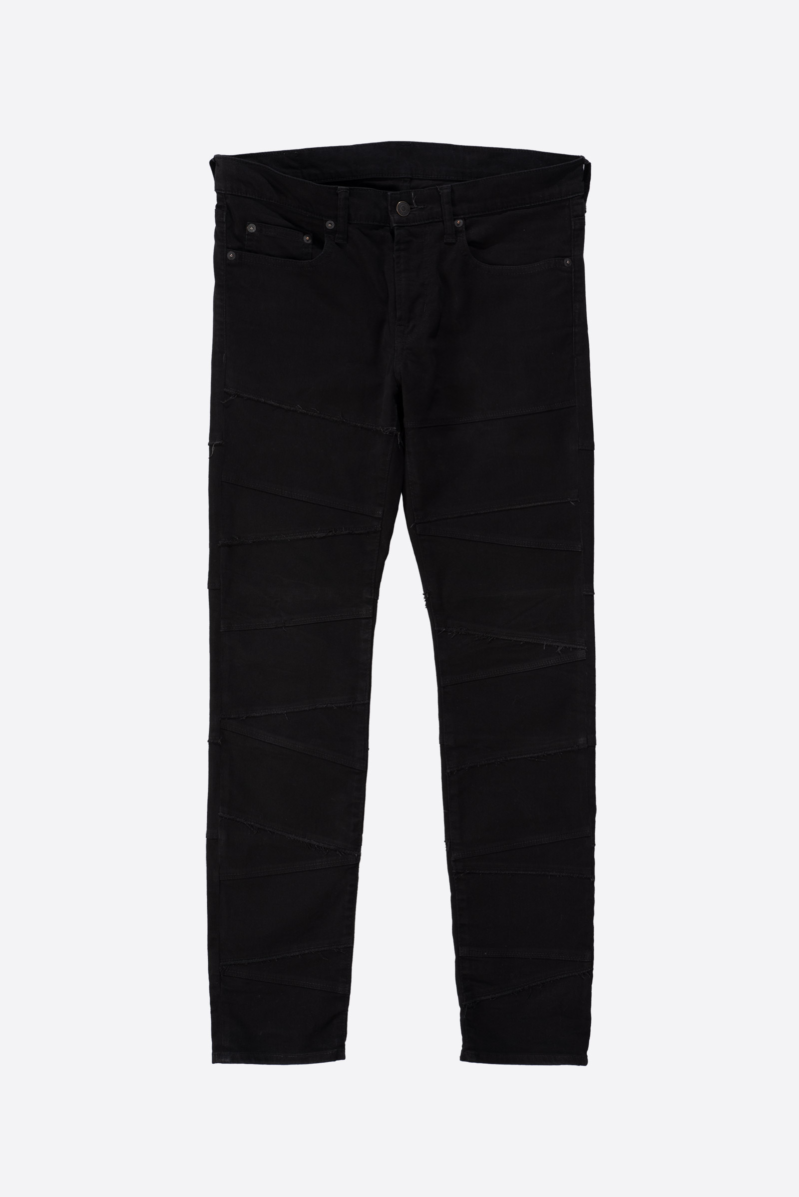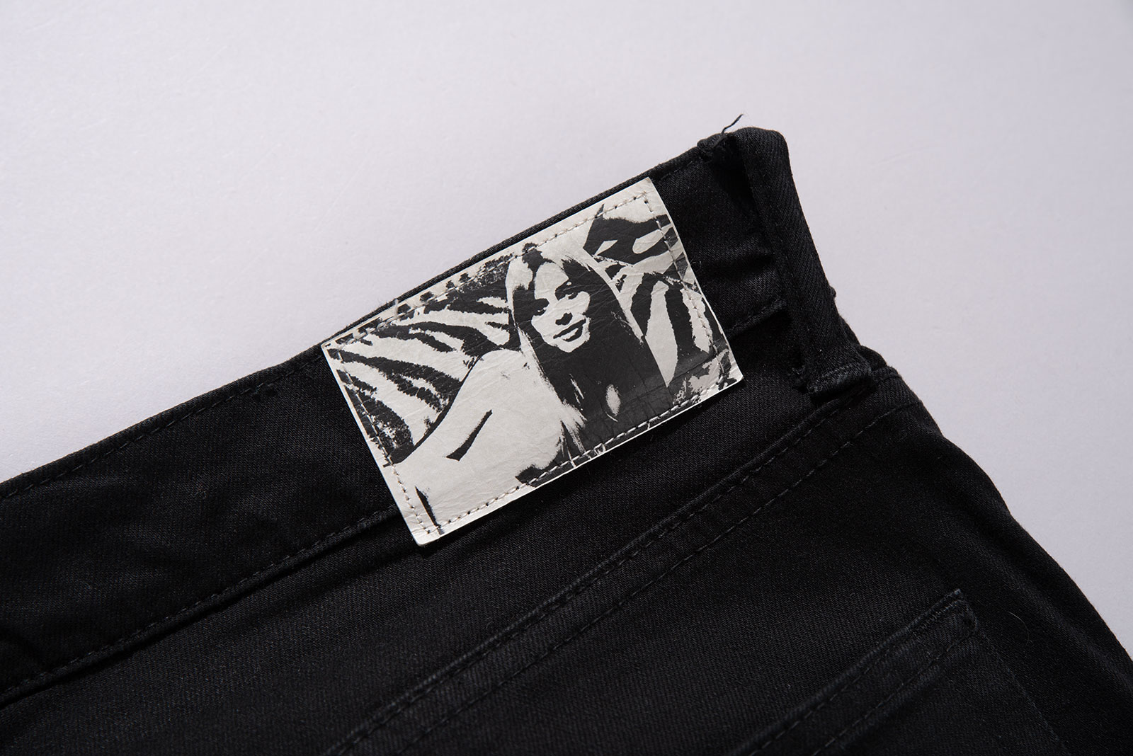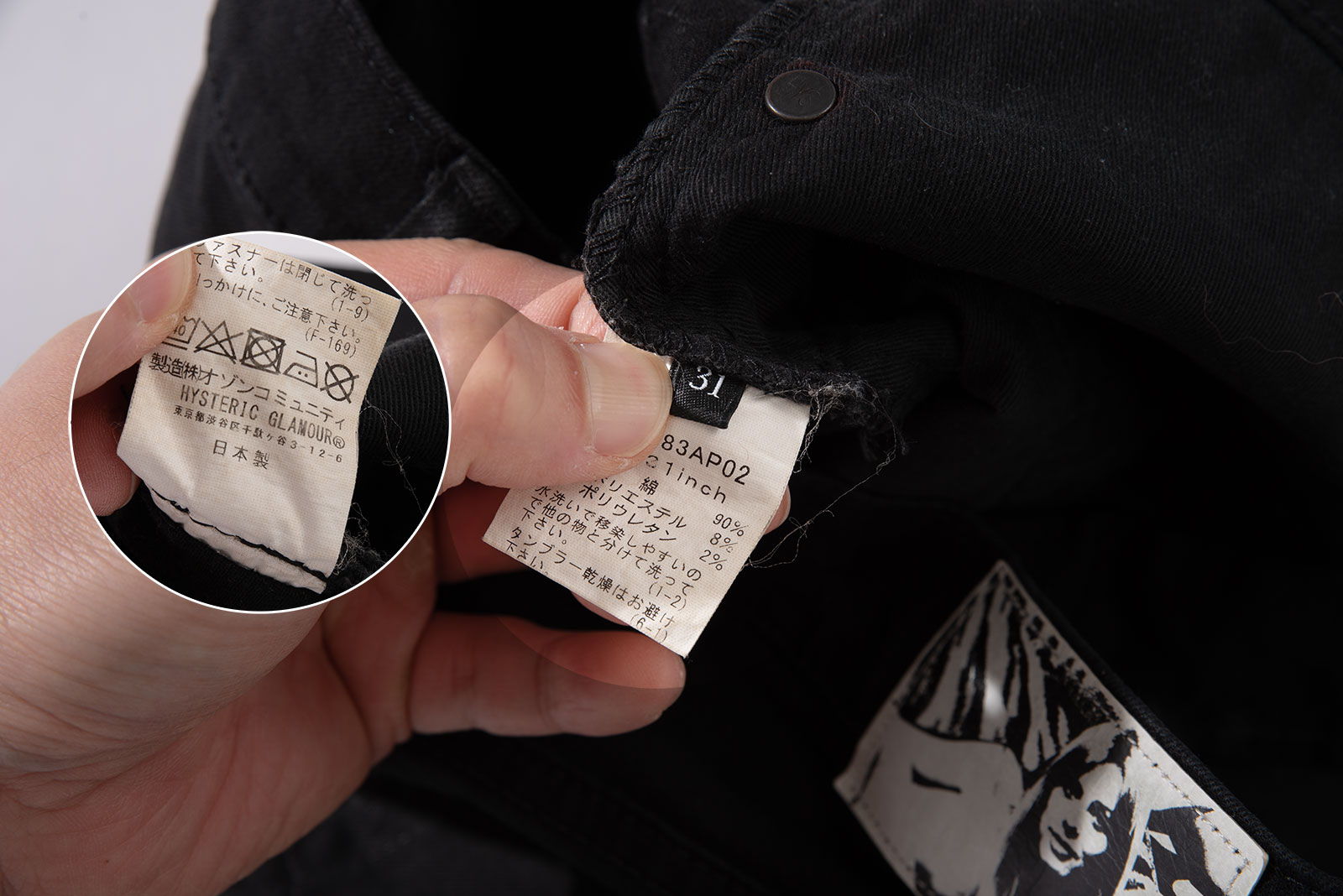 히스테릭 글래머의 스키니 블랙진 팬츠입니다. 붕대를 감은 듯 한 디테일이 특징입니다. 코튼 100%이면 많이 불편할 스타일인데, 2% 폴리우레탄이 함유되어 있어 편하게 착용하기 좋겠어요.
