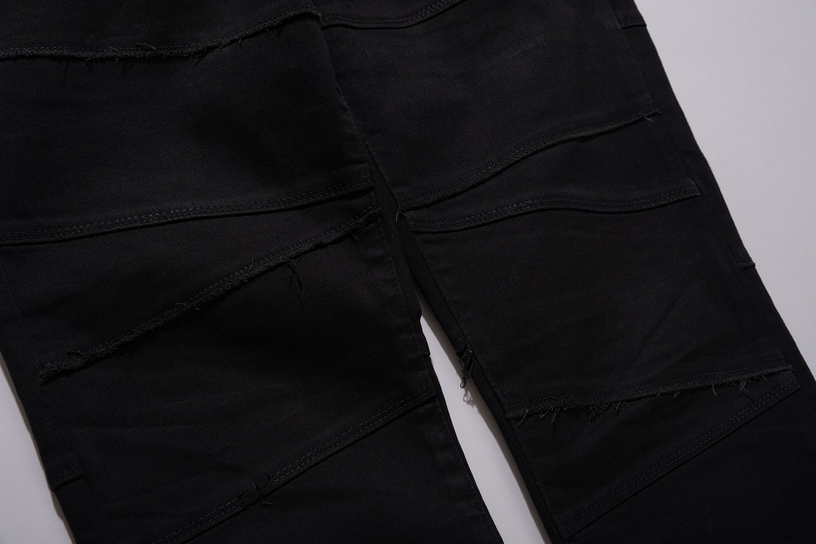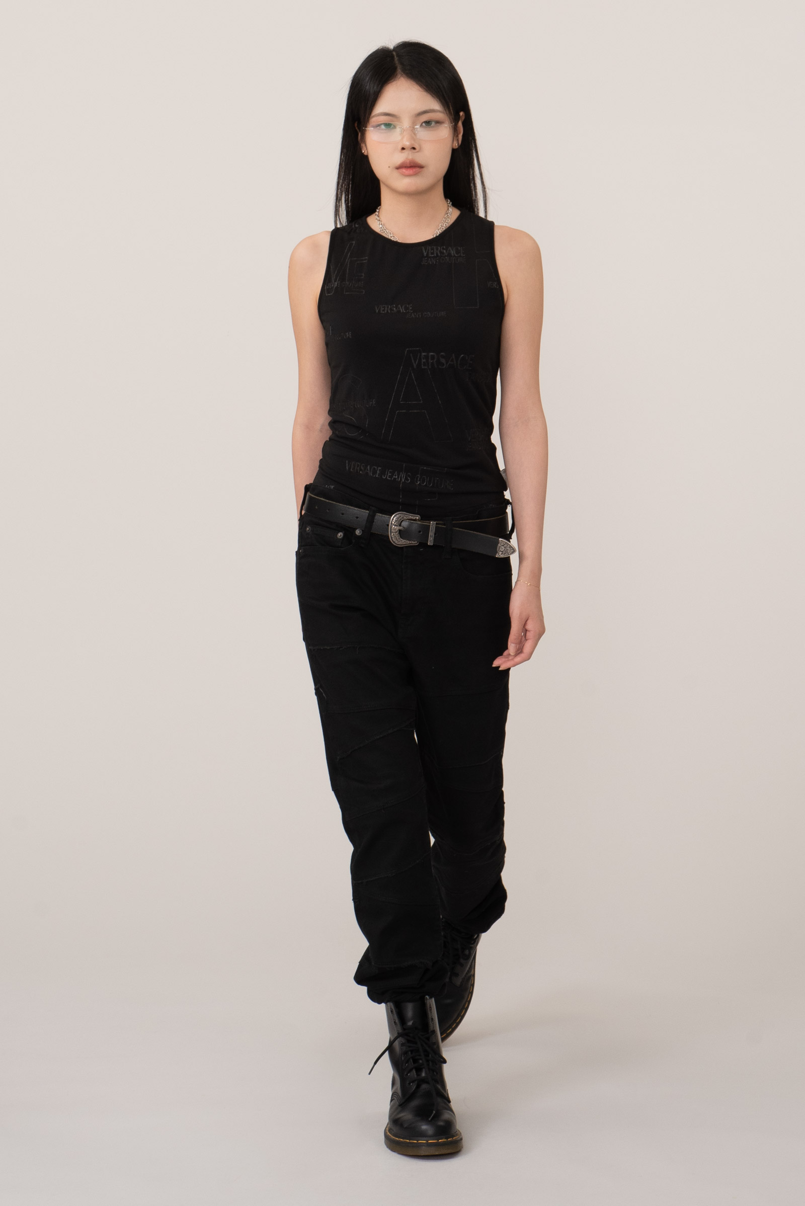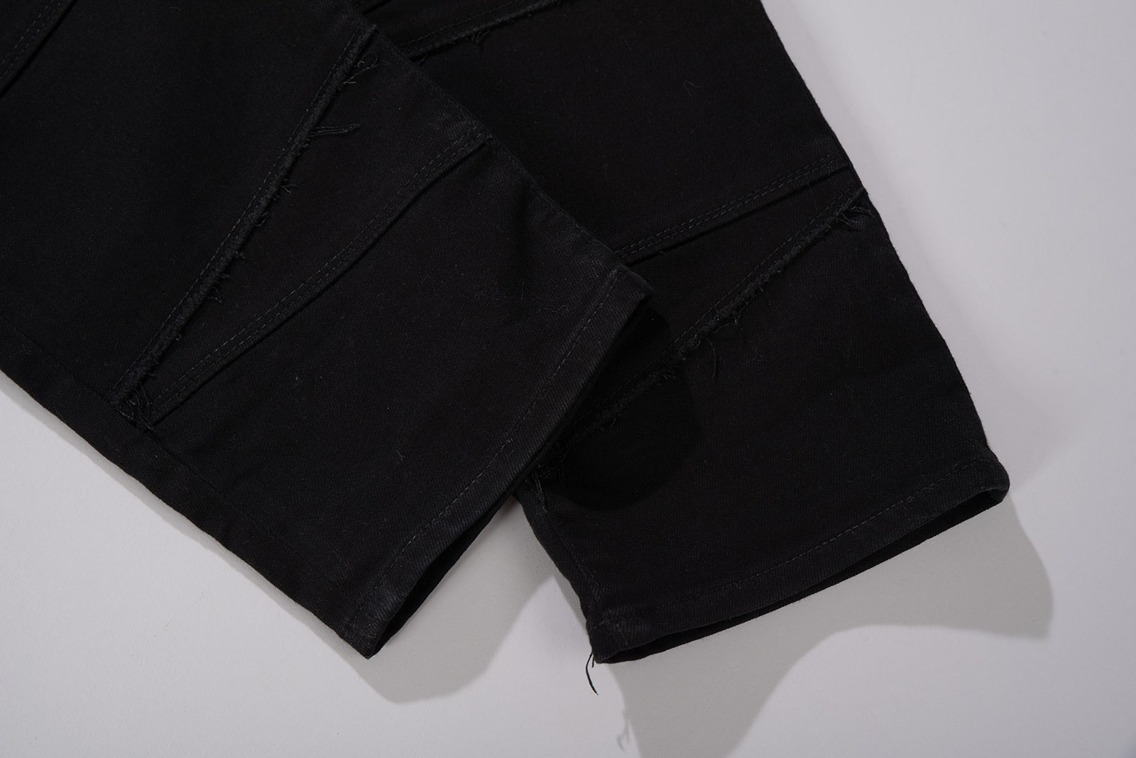 히스테릭 글래머의 스키니 블랙진 팬츠입니다. 붕대를 감은 듯 한 디테일이 특징입니다. 코튼 100%이면 많이 불편할 스타일인데, 2% 폴리우레탄이 함유되어 있어 편하게 착용하기 좋겠어요.