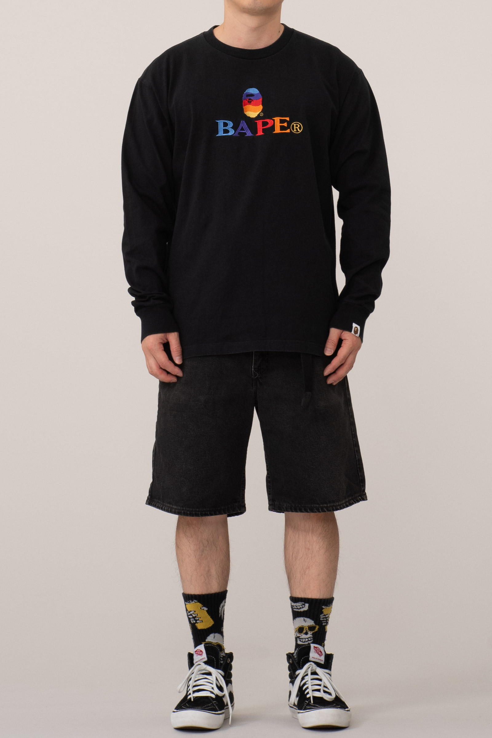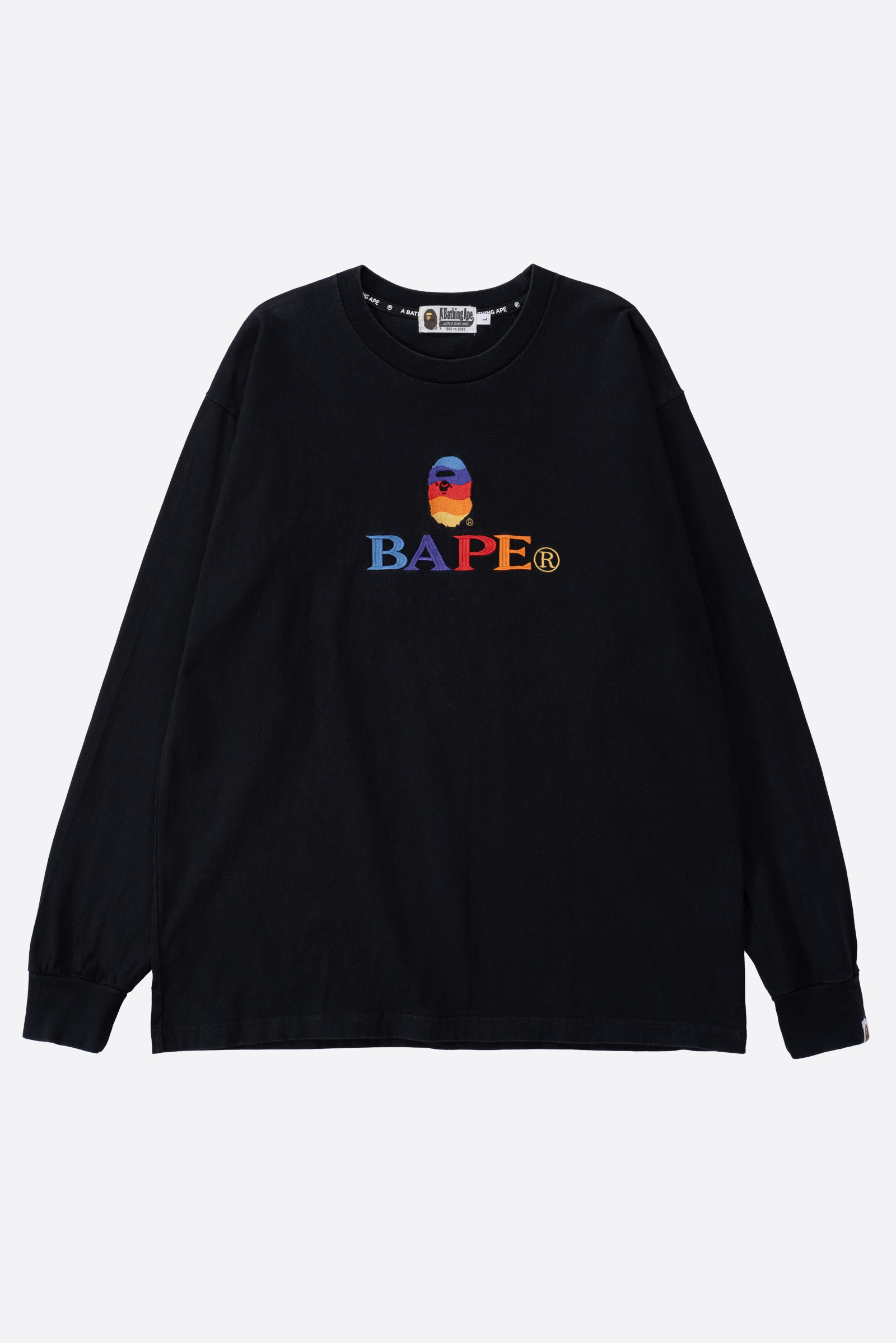 베이프의 레인보우 자수 로고 긴팔 티셔츠입니다. 프린트가 아닌 자수라 꾸준히 입어 멋스럽게 질 들이는 재미가 있을 제품입니다. 사이즈도 괜찮게 입고 되었지요. 화려한 프린트나 디자인이 많은 베이프 중에서도 꽤 심플한 디자인입니다.