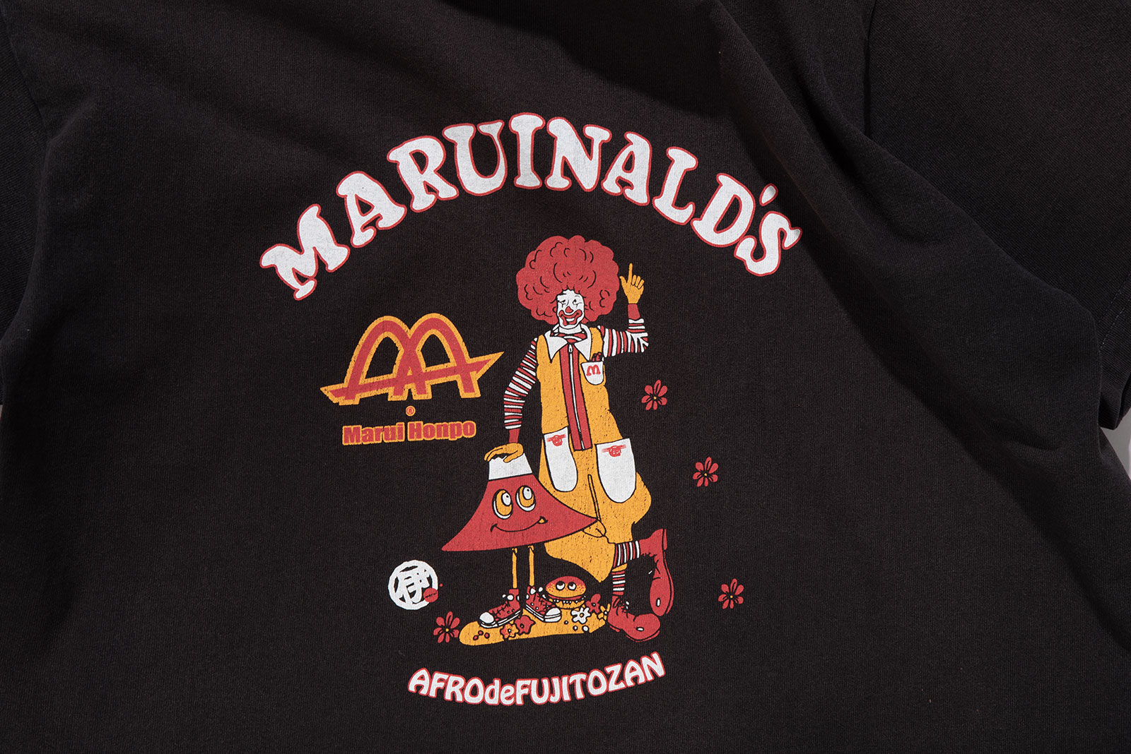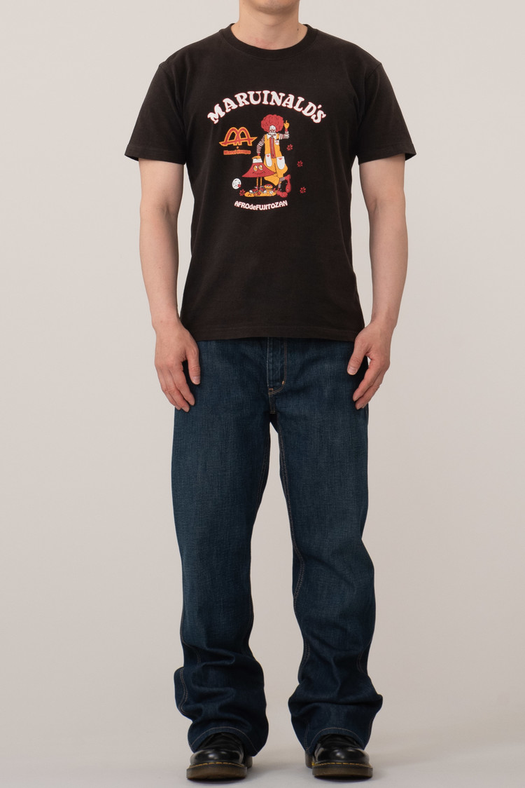 맥도날드를 페러디한 Marui Honpo 티셔츠입니다. 브랜드나 출처는 알 수 없습니다만 프린트는 재미있는 편이네요. 빈티지는 아닌데, 빈티지한 느낌입니다. 그런 느낌 좋아하시는 분들에게 추천드립니다. 저희 기준 100 정도의 사이즈 감입니다.