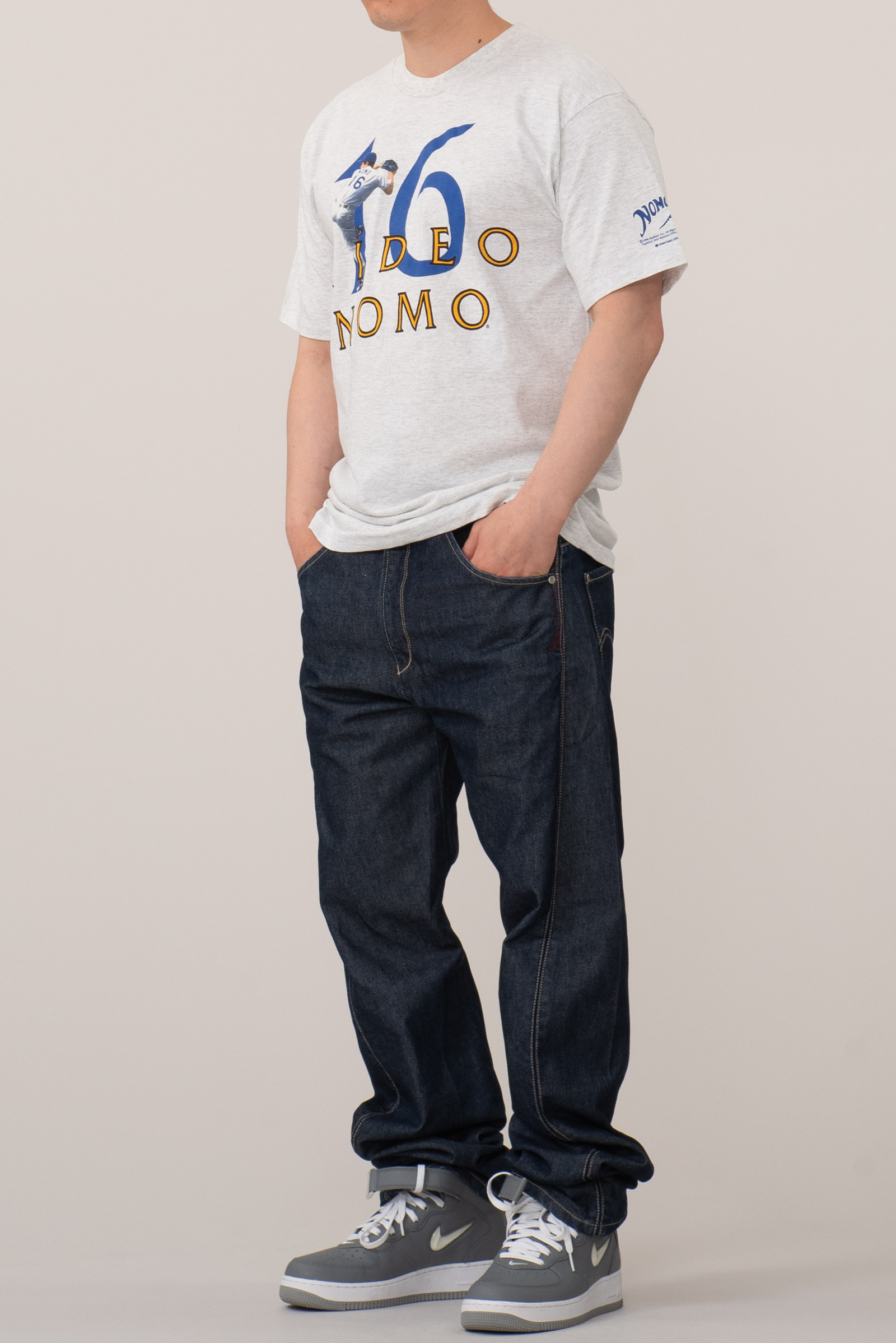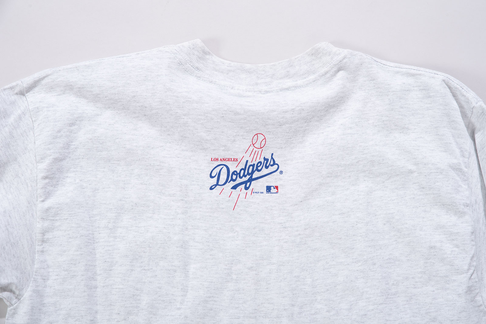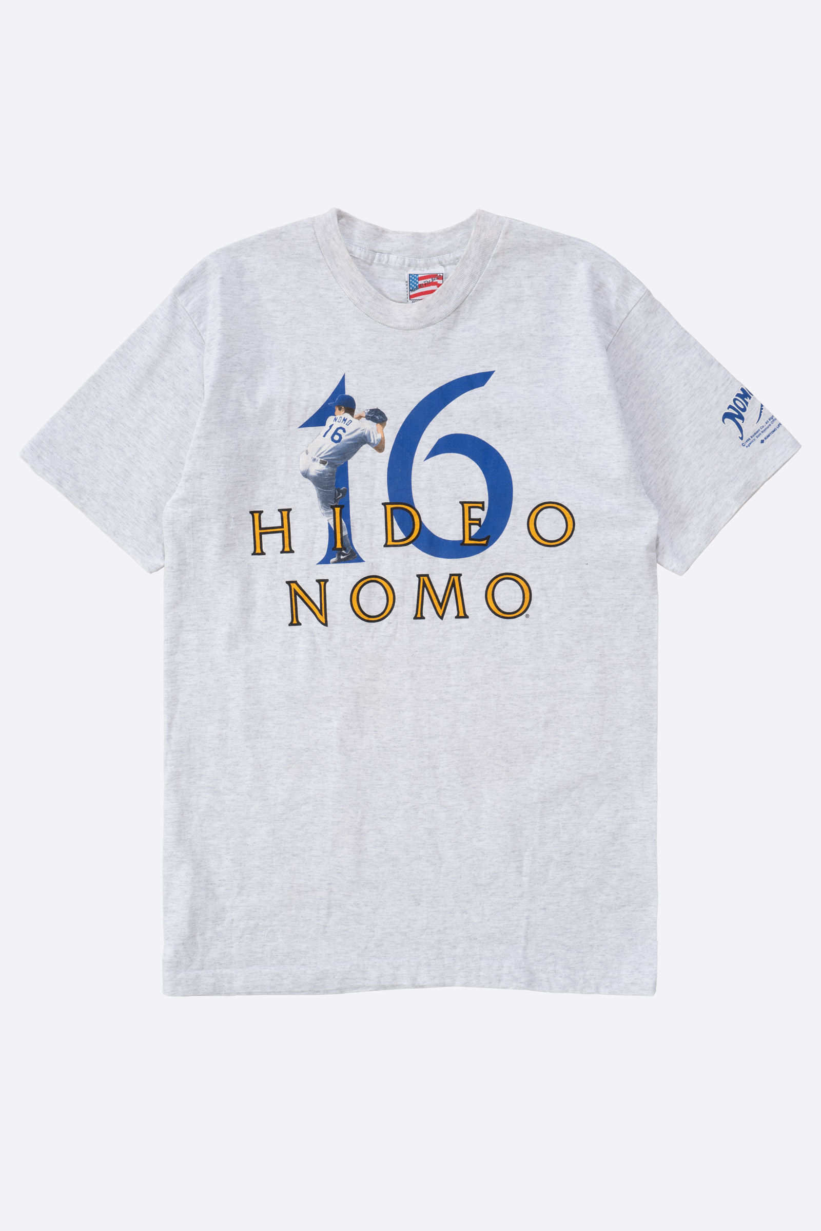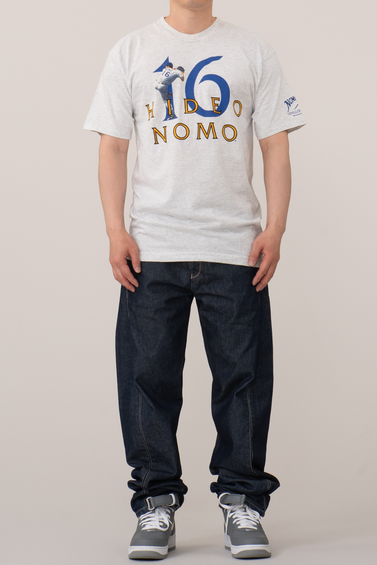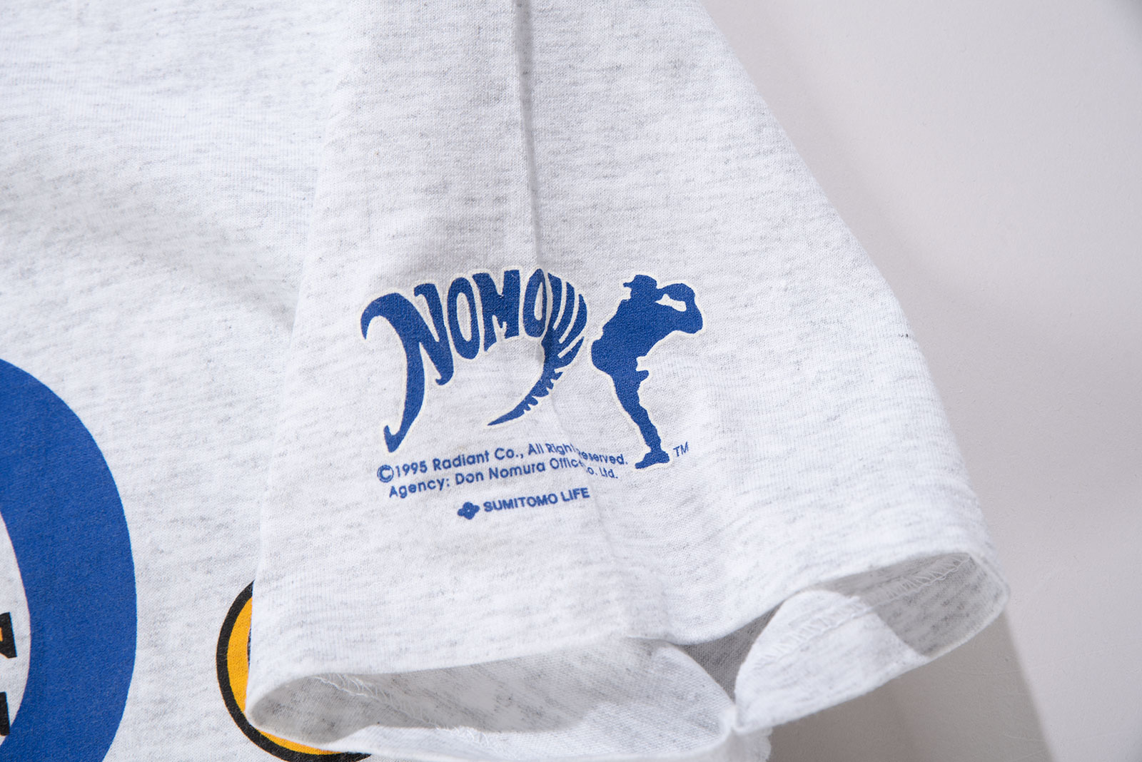 1995년 LA 다저스에서 일본인 투수 노모 히데오가 메이저리그에 데뷔한 시기를 기념하는 빈티지 피스입니다. 미국 캘리포니아에서 디자인되고 생산된 ‘Trinity Products’의 제품이지요. 1990년대 중반 미국 스포츠 시장과 아시아계 스타 플레이어의 등장이라는 시대적 흐름 속에서, 노모 히데오의 특유의 토네이도 피칭 모션과 등번호 16번, 그리고 LA 다저스의 공식 로고가 전면에 프린트되어, 당시 메이저리그의 새로운 바람을 상징적으로 보여주는 디자인이라 할 수 있겠네요.