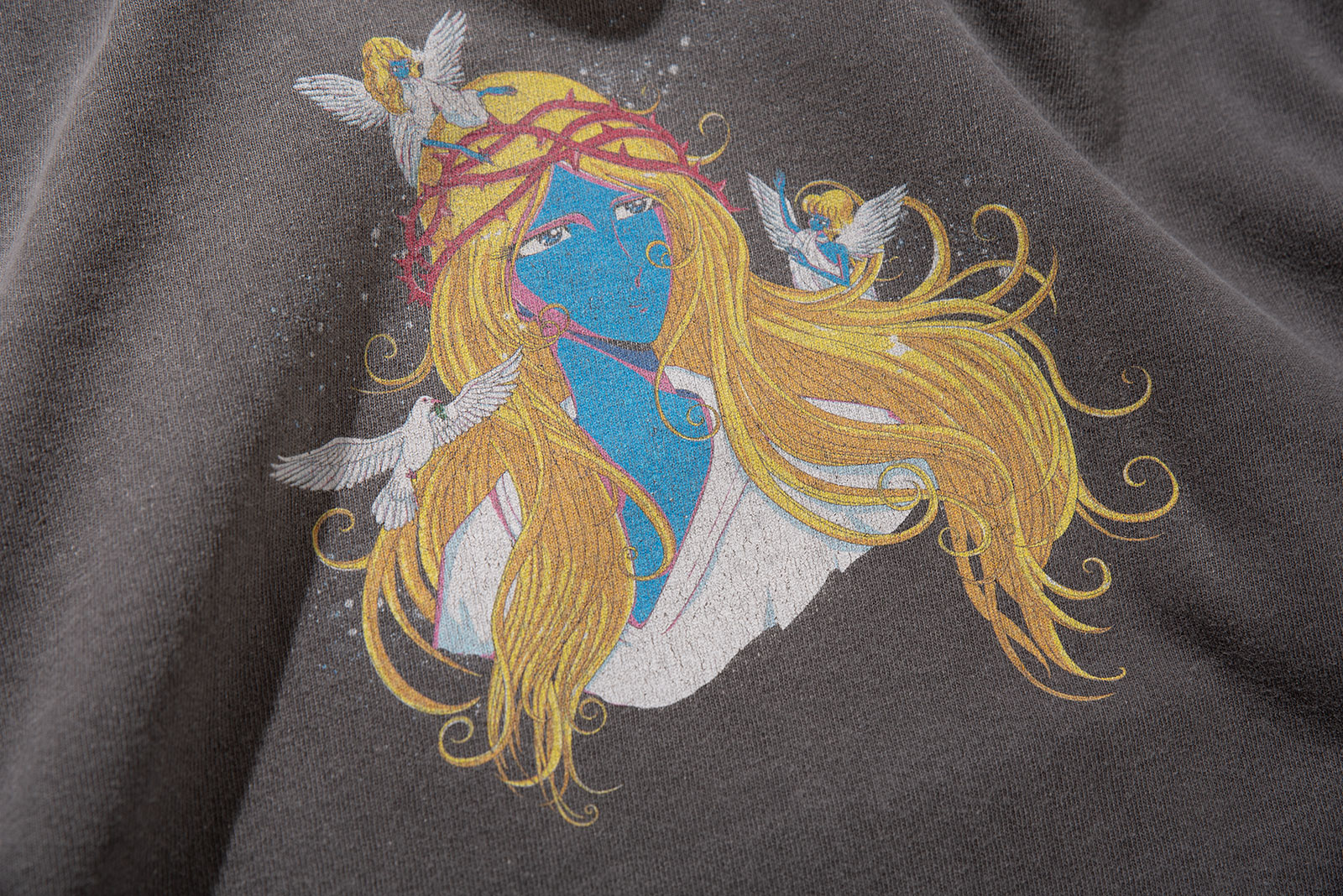 2020년, 레디메이드의 유타 호소카와와 LA를 기반으로 활동하는 캐나다 태생의 멀티 비주얼 아티스트 칼리 손힐 드윗이 함께 론칭한 세인트 미카엘의 은하철도 999를 오마주한 23SS 피스입니다. 2004년 론칭 이후 크롬하츠, 피어 오브 갓, 요지 야마모토 등 다양한 브랜드와 협업하며 명성을 쌓아 온 레디메이드 컬렉션에서의 공동 작업을 계기로 두 사람이 구축한 강렬한 파트너십은 걸출한 디자인과 디테일들을 뽑아 냈습니다. 무엇보다 오타쿠 문화로 상징되는 재패니즈 팝컬쳐와 에이징과 페이딩이라는 매니악하고 일탈적인 서브 컬쳐로 전세계 트렌드를 주무르는 주류가 되었다는 점이 놀랍고도 대단하다고 생각되는 브랜드입니다.