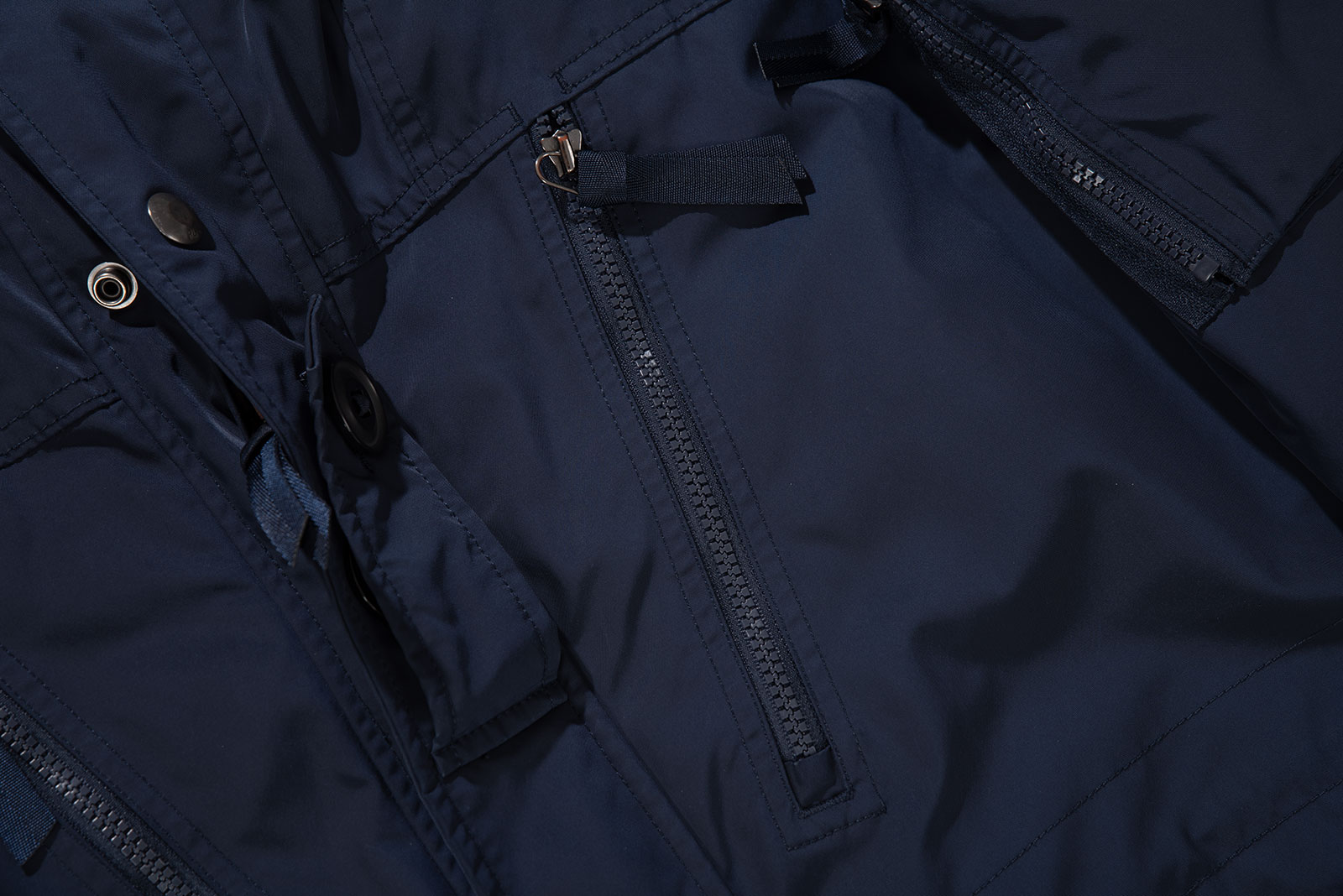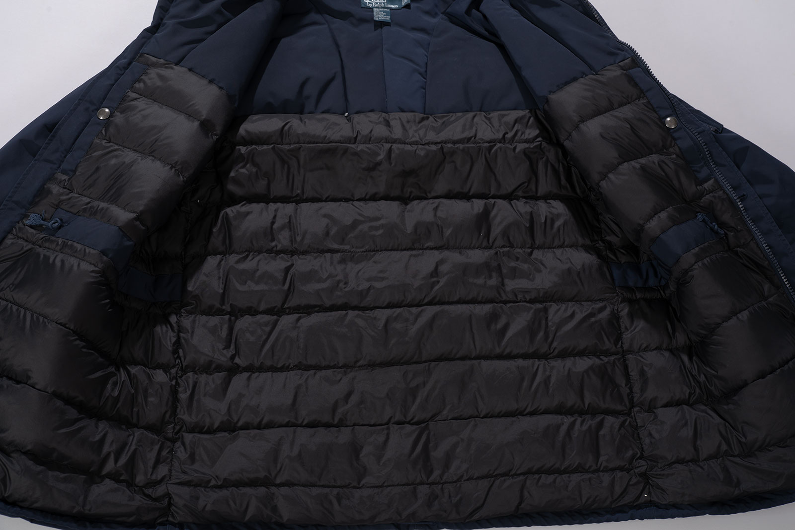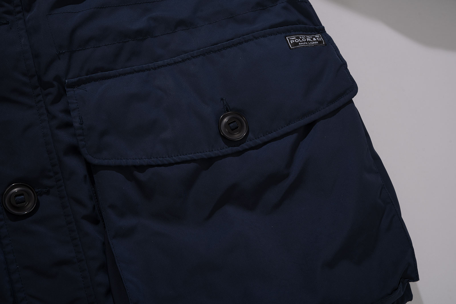Polo by Ralph Lauren의 다운 필드 파카입니다. 마찰에 강하고 내구성 좋은 나일론 겉감에 유럽형 필드 재킷 디자인을 오마주한 제품입니다. 큼직한 버튼 플랩 포켓, 체스트 지퍼 포켓, 이중 잠금 구조, 조절 가능한 후드와 밑단 스트링 등, 디테일이 상당한 제품입니다.