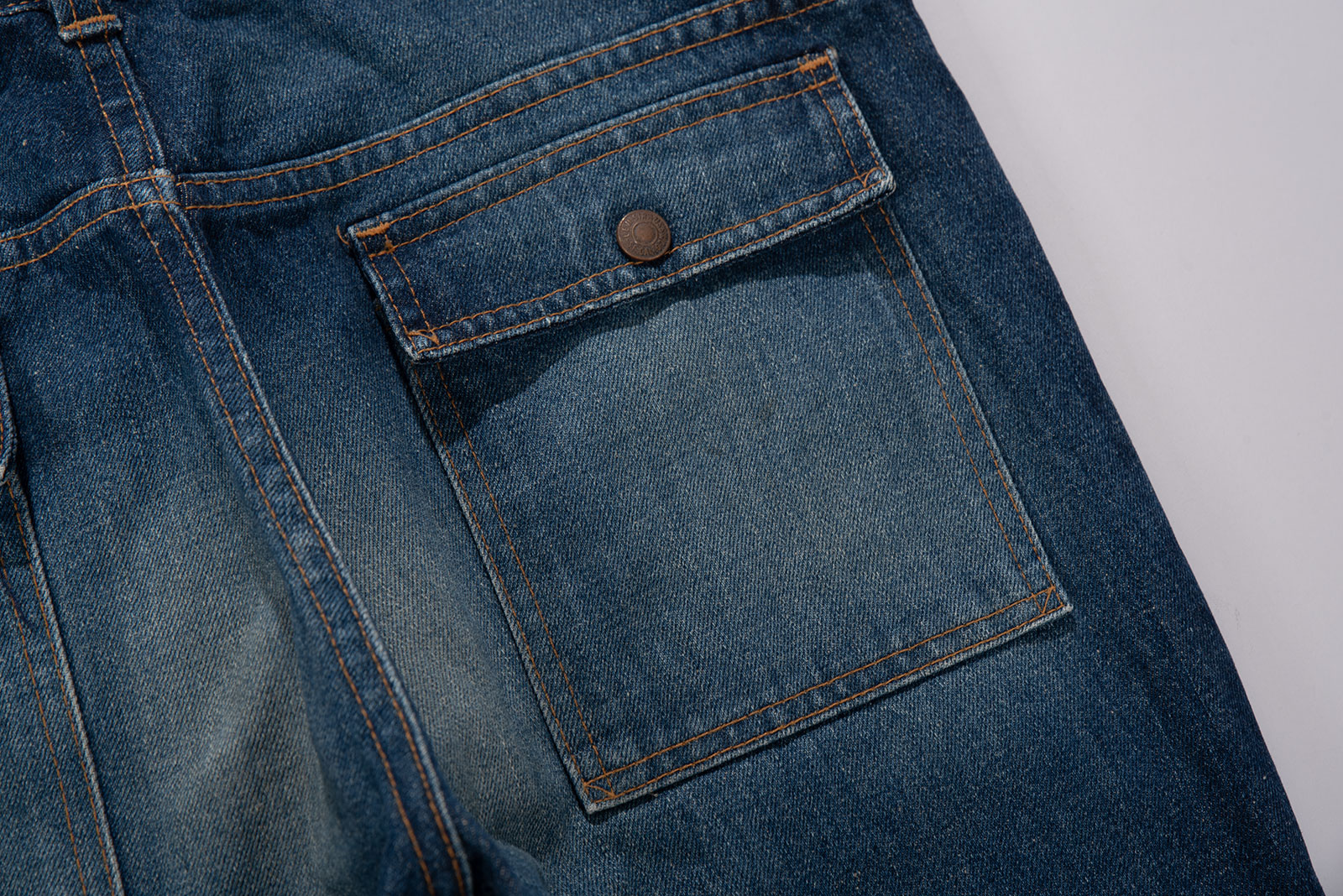 70 년대에 제작 된 리바이스의 부시 팬츠를 리바이스 재팬에서 기획, 복각한 766 팬츠입니다. 정면 세컨 포켓과 2개의 똑딱이로 된 탑버튼, 유틸리티 백포켓 등, 디테일을 살펴볼 구석이 많은 제품이에요. 90 년대에 제작 된 피스로, 만듦새 좋고 원단 탄탄합니다. 사용감 크게 없는 컨디션으로 입고 되었습니다. 타이트한 핏이라, 정 사이즈 착용 시 몸에 붙는 스타일이에요. 모델처럼 코디하실 분은 업 사이즈 추천드립니다. 정 사이즈로 입으실 분은 실측 꼭 비교 후 구매부탁드립니다.