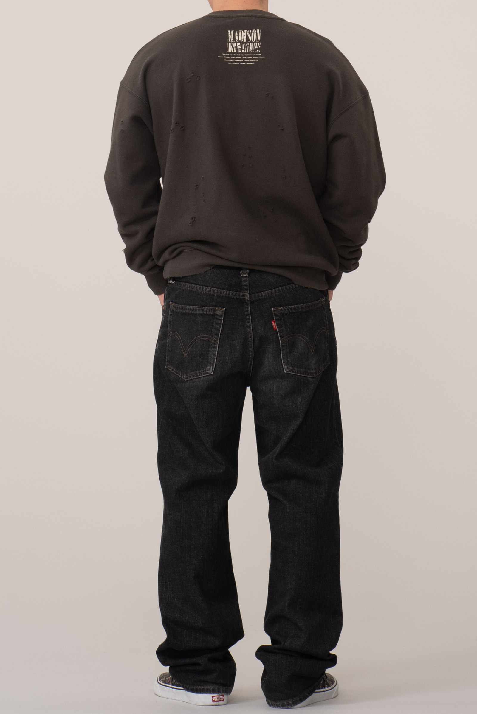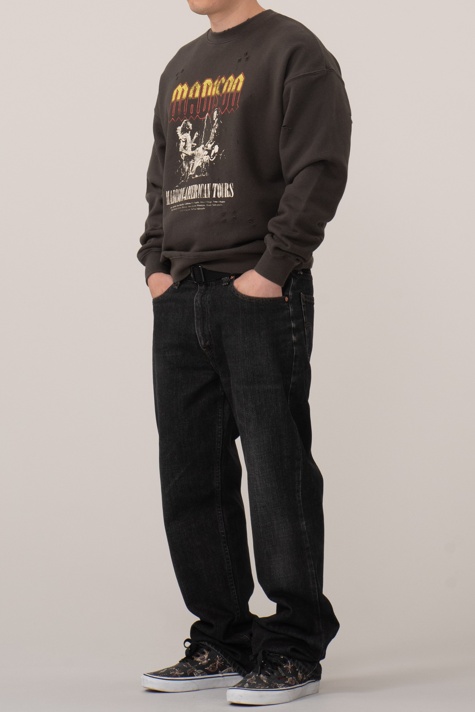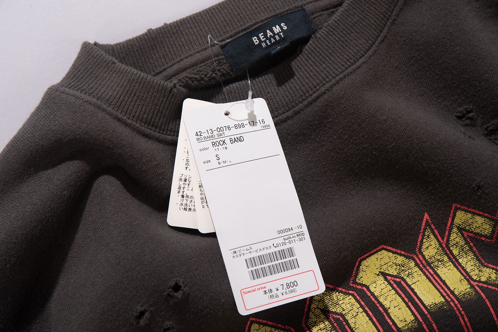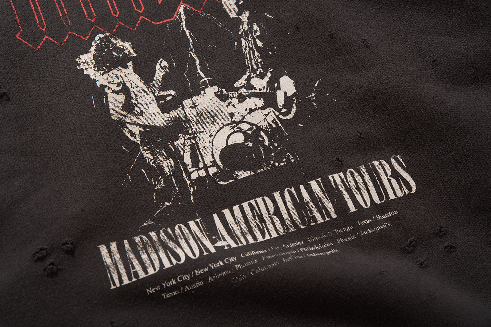일본의 대표적인 셀렉트숍 브랜드 BEAMS의 BEAMS HEART 라인에서 출시한 크루넥 스웨트셔츠입니다. 미국 80~90년대 록밴드 투어 티셔츠에서 영감을 받아 디자인된 아이템으로, MADISON 밴드의 투어 장면과 미국 여러 도시명이 빈티지 프린트로 장식 된 제품입니다.
