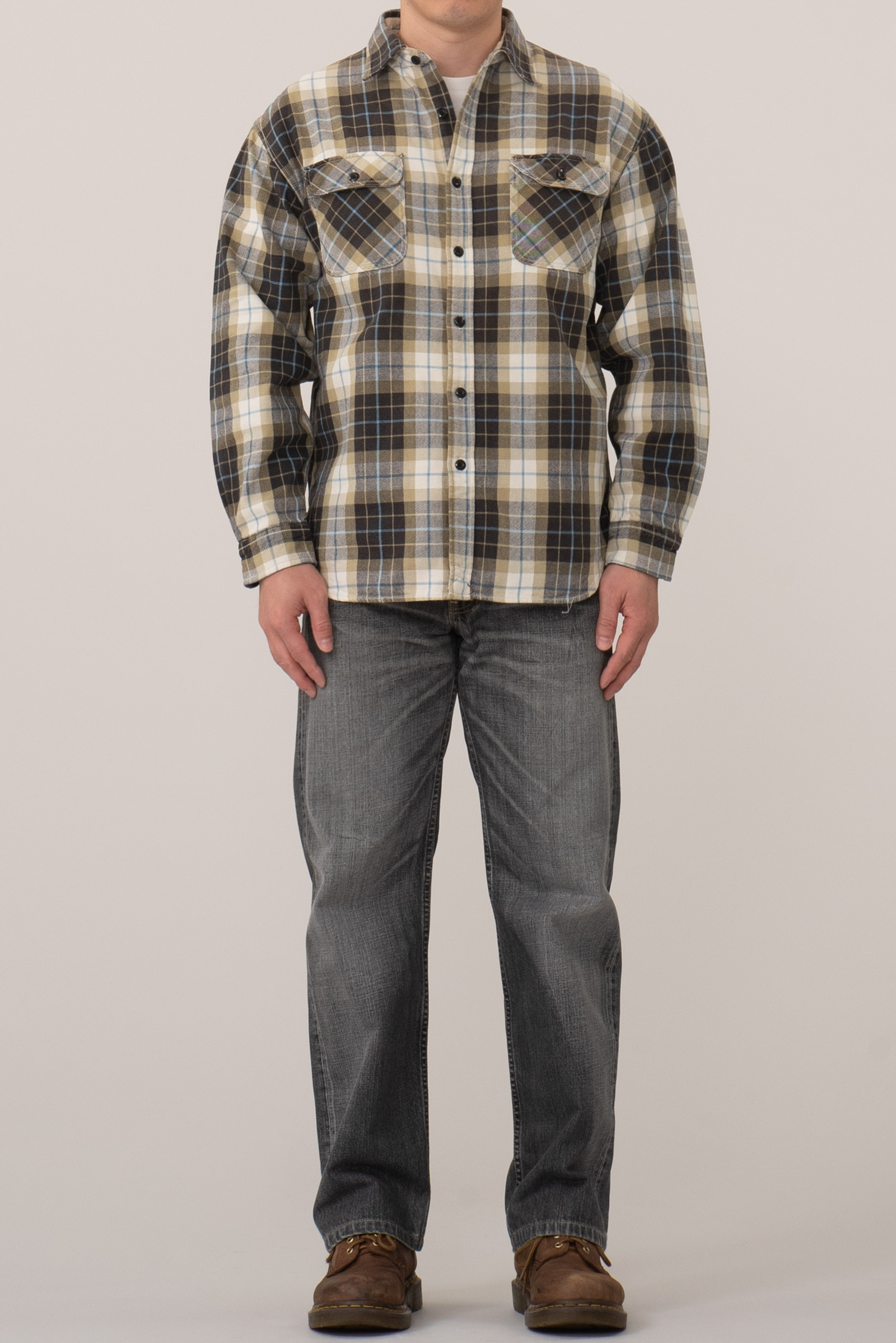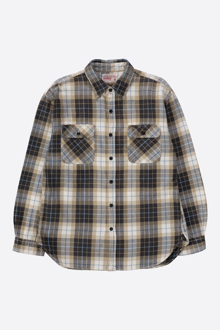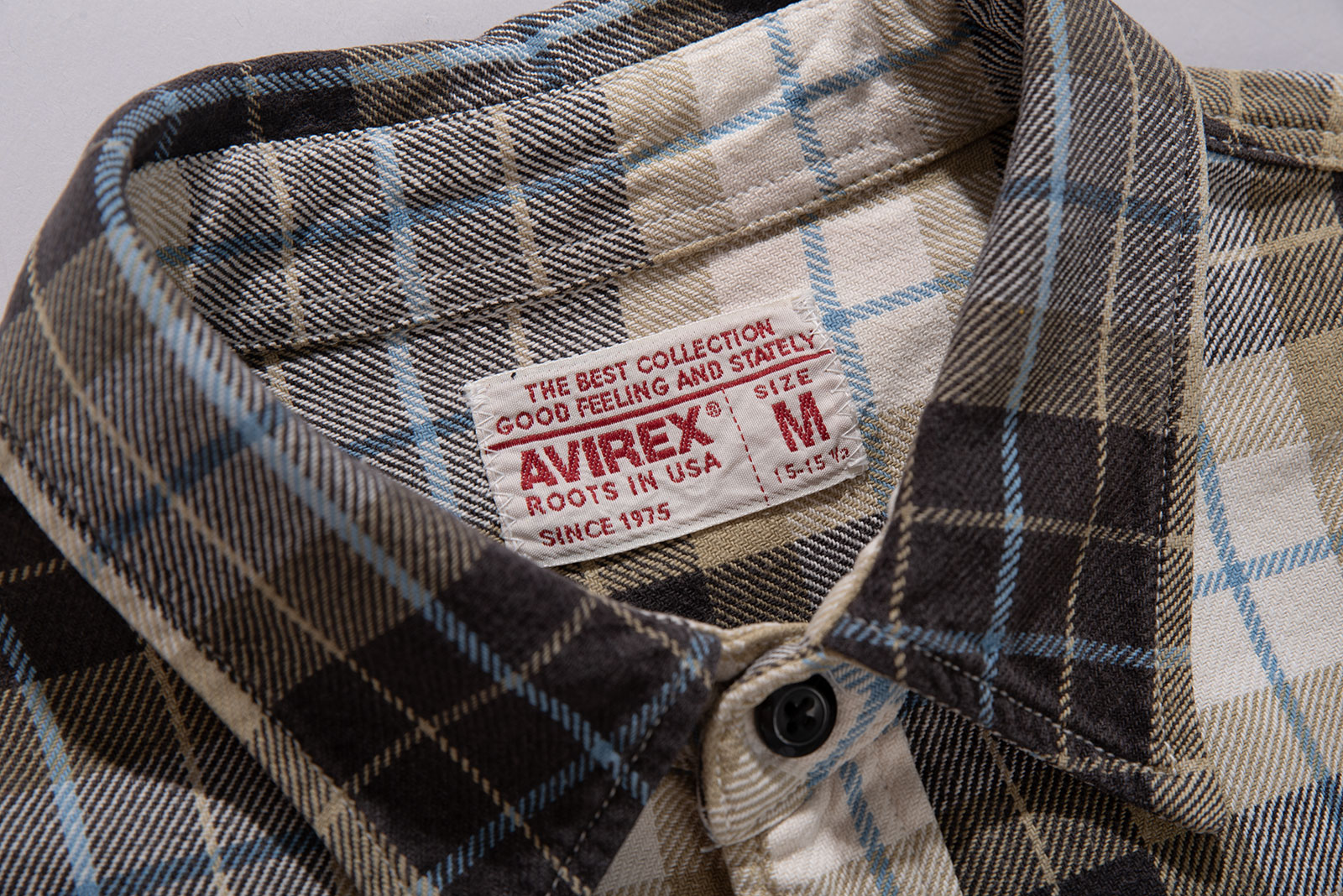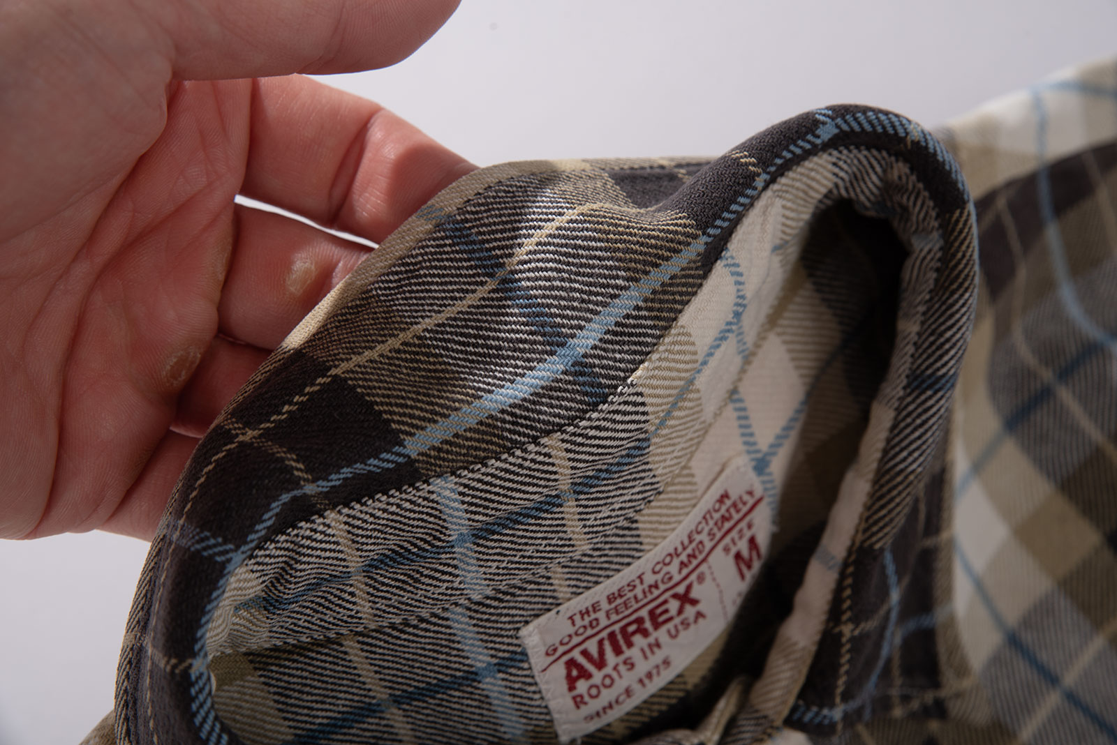 일본 라이센스로 제작 된 아비렉스의 체크 셔츠입니다. 색감이나 패턴이 깔끔하고 편안하죠. 군복 바지나 칼하트 워크 팬츠에 워커와 코디해서 신어도 정말 멋지고 편안하게 스타일링하기 좋을 제품이라 생각합니다. 전반적으로 깔끔한 컨디션입니다.