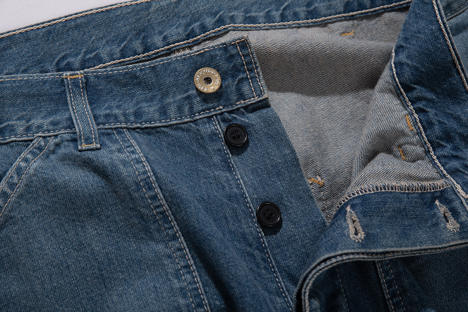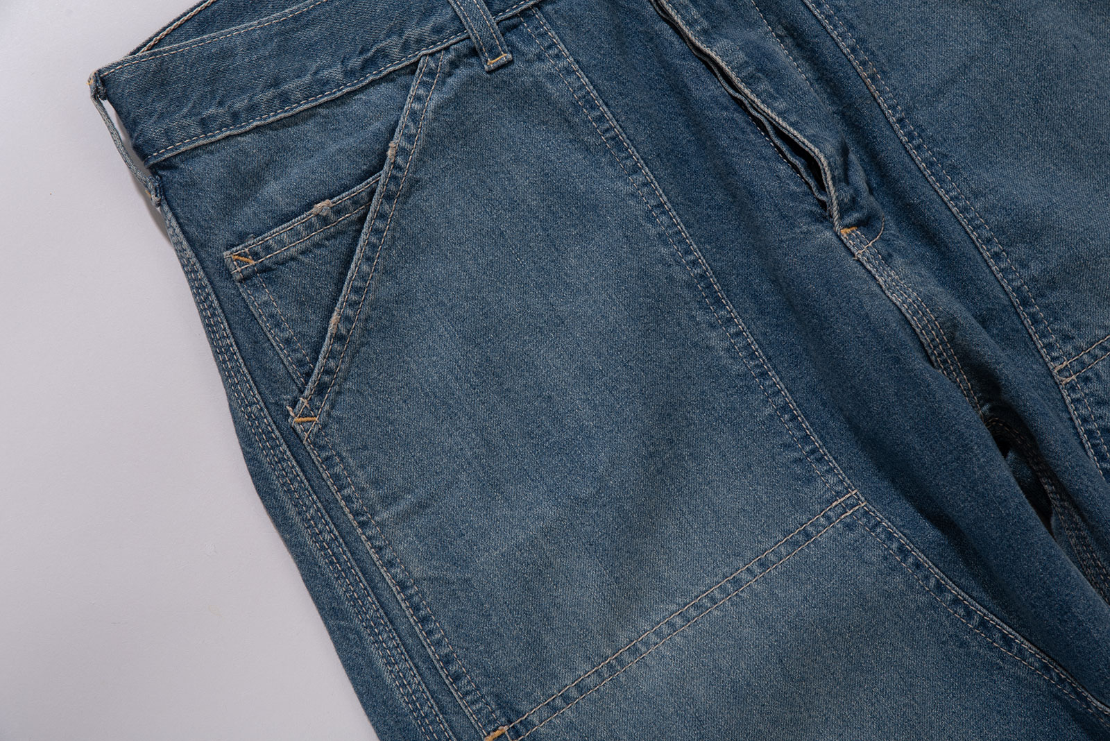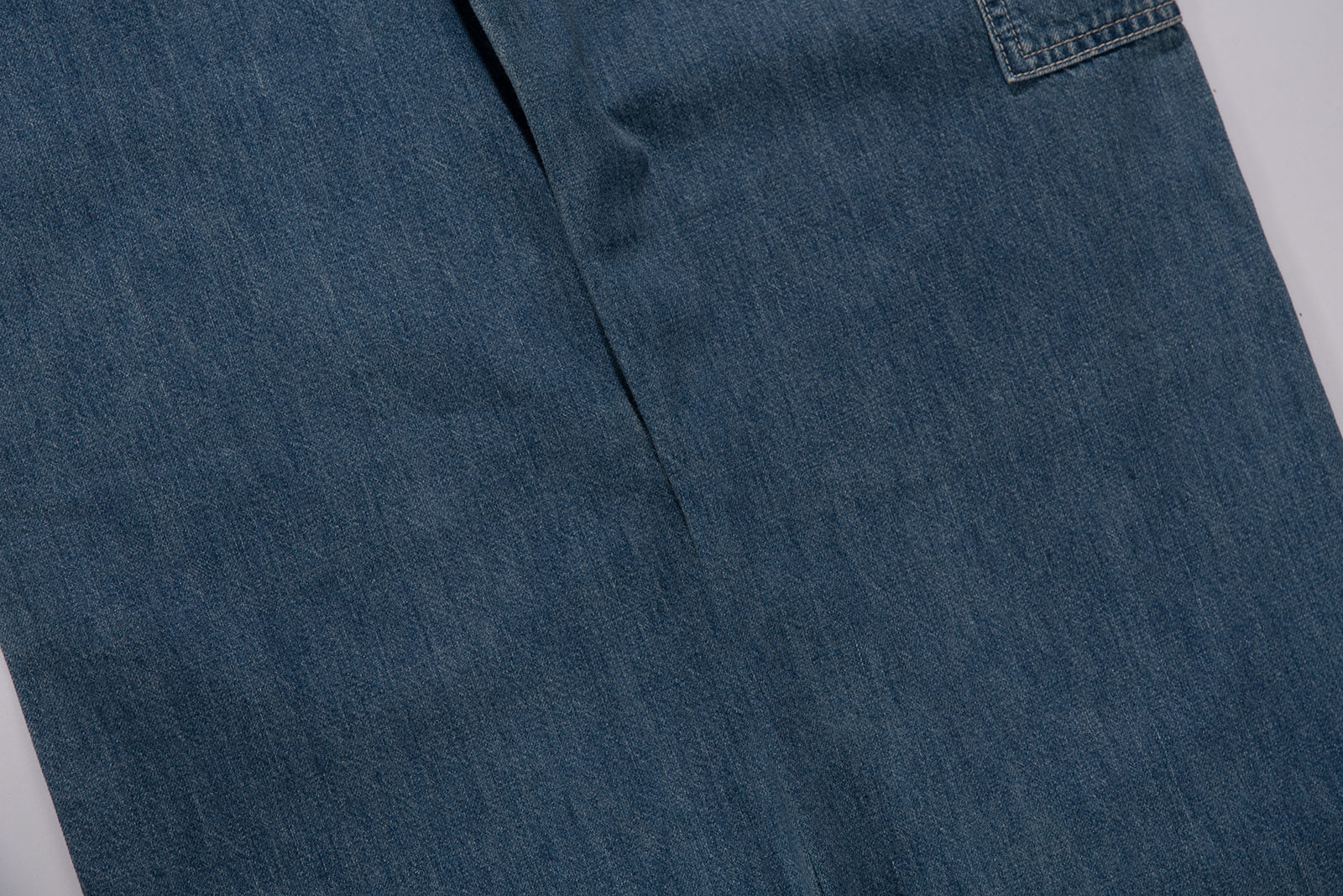 브뤼셀을 거점으로 전개했던 리바이스 유럽에서 기획 생산 한 Lot 591 Runner 데님 팬츠입니다. 우리가 잘 아는 카펜터 팬츠 디자인이죠. 북미 리바이스보다 조금 더 섬세하고 세련 된 맛이 있습니다. 대형 사각 패널 스티치와 공구용 포켓, 와이드한 실루엣이 큰 특징입니다. 비교적 부드럽고 얇은 두께감이라 편안하게 입기 좋을 팬츠입니다.