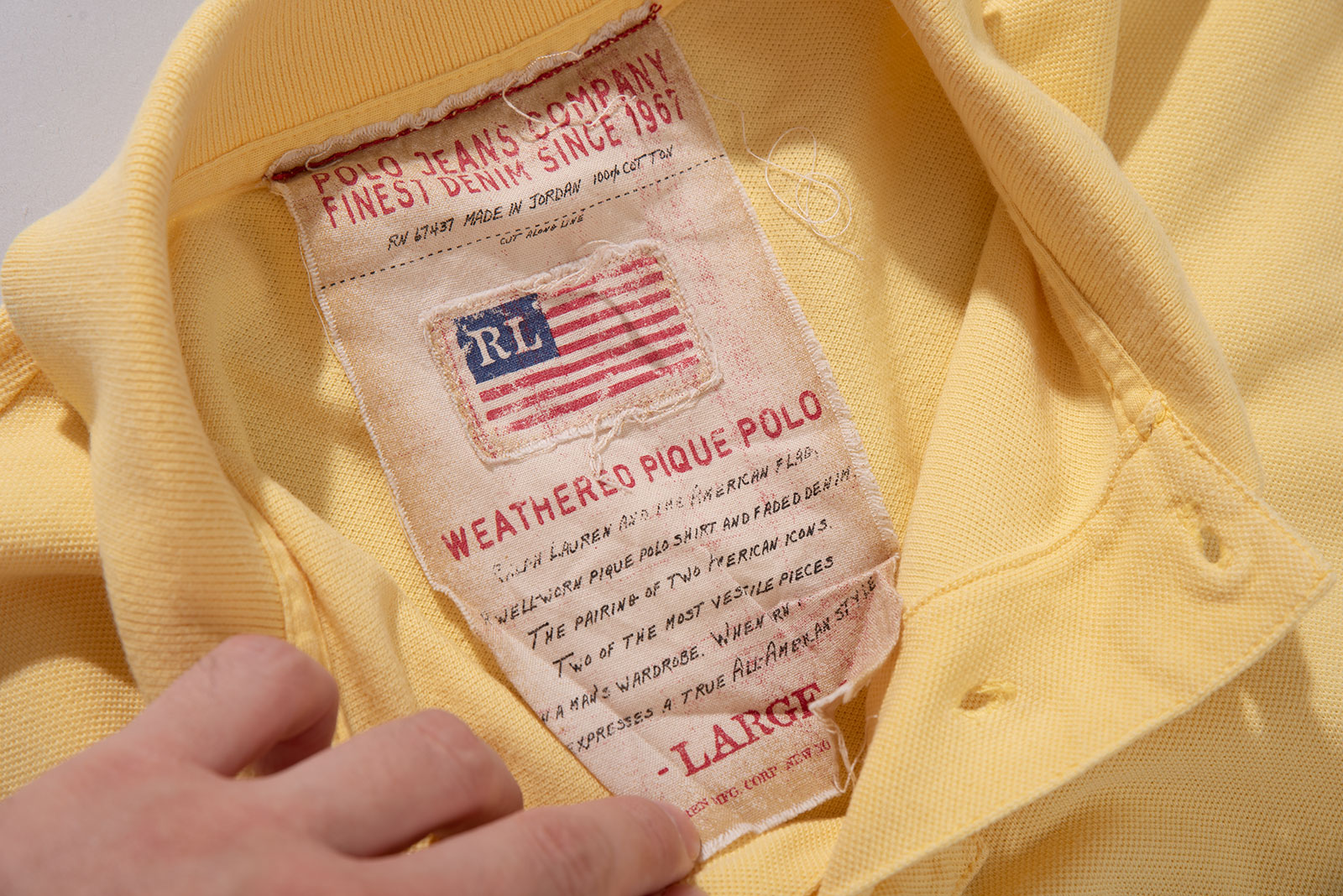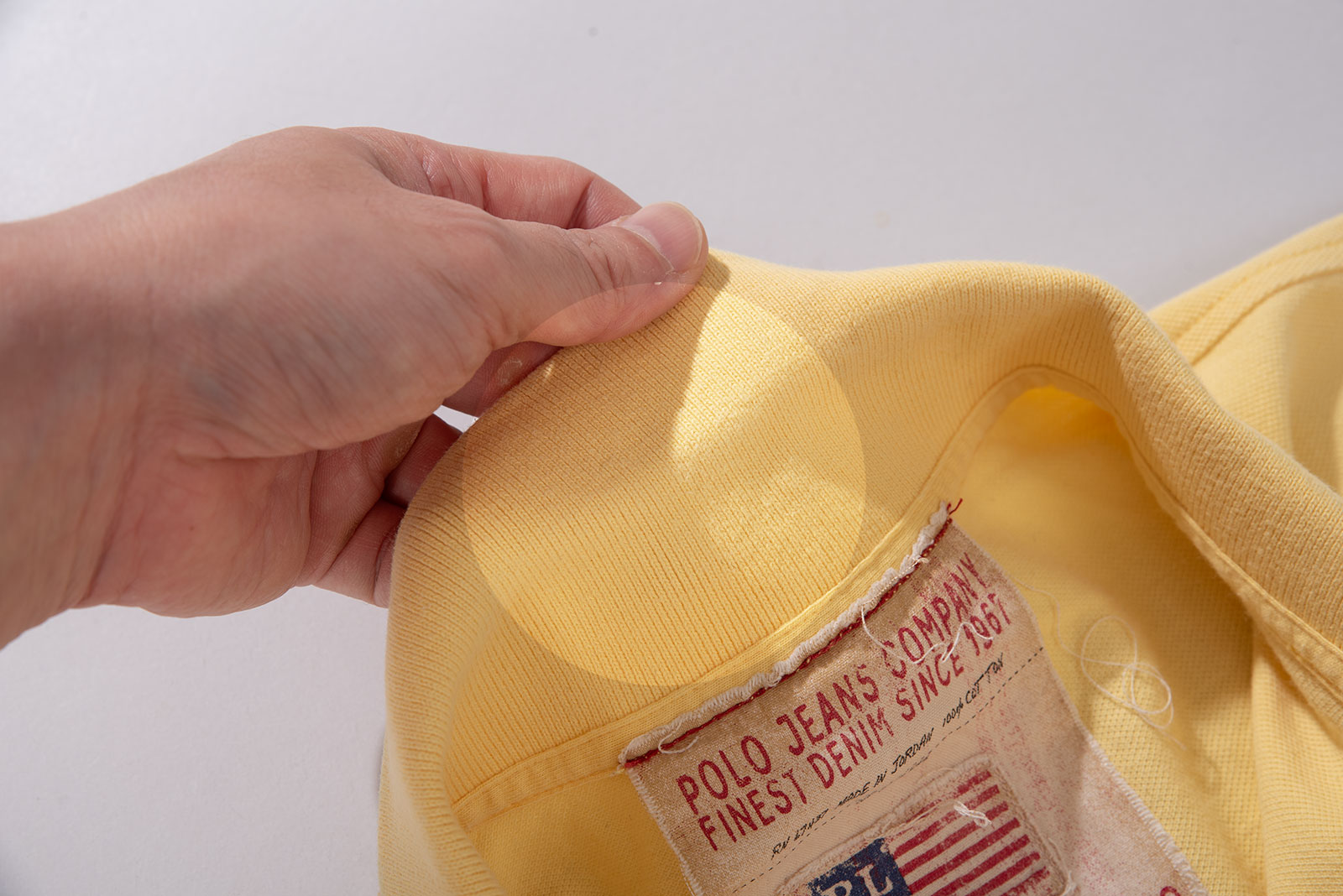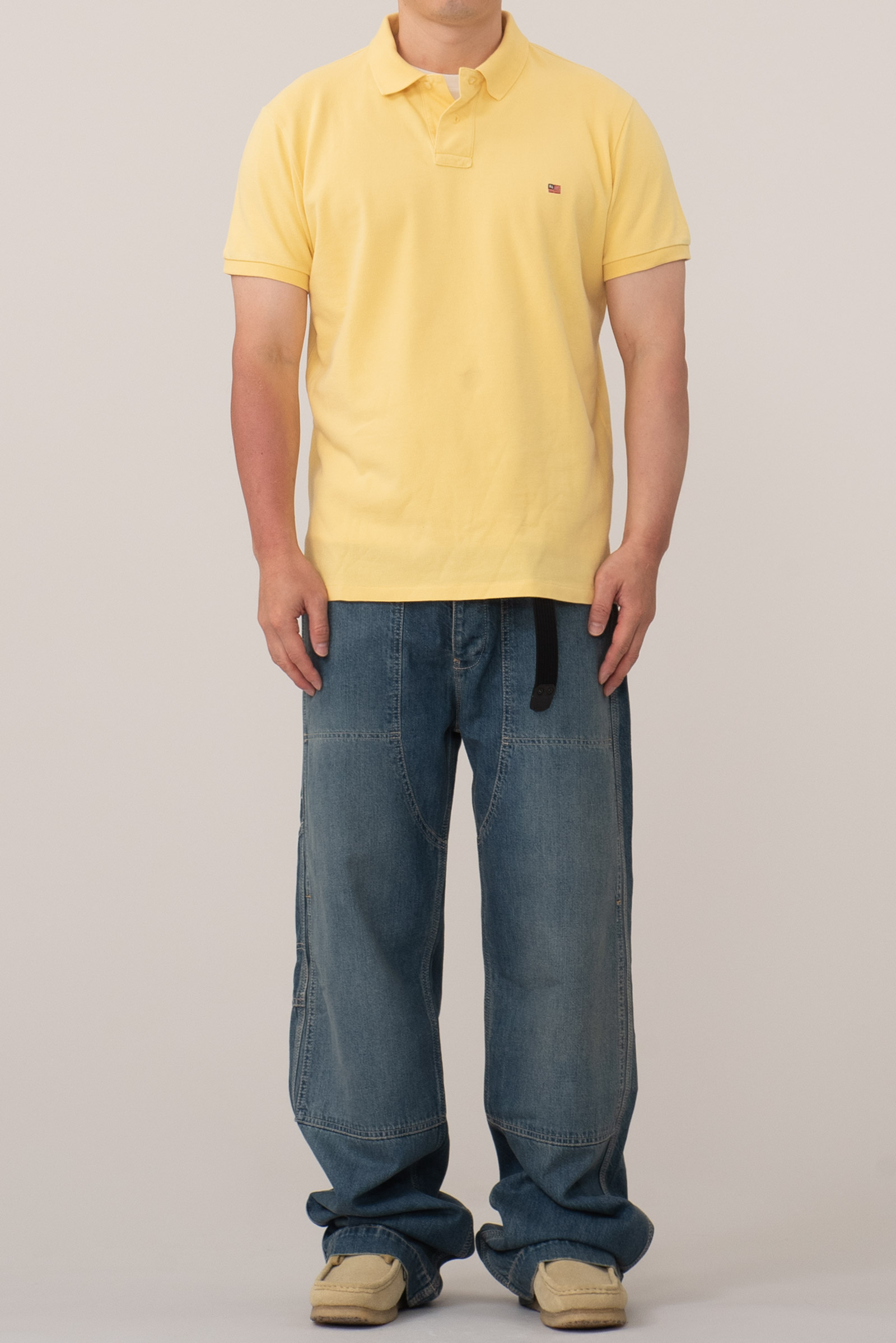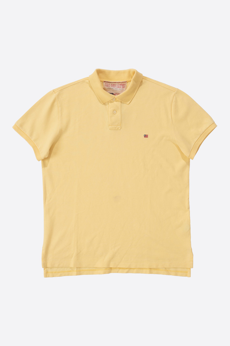 폴로진스의 옐로우 피케입니다. 원단 컨디션은 참 좋은데, 오염이 티가 나게 있어요. 이런 점 감안하여 가격 책정했습니다. 편하게 입어주실 분들에게 권해드립니다.