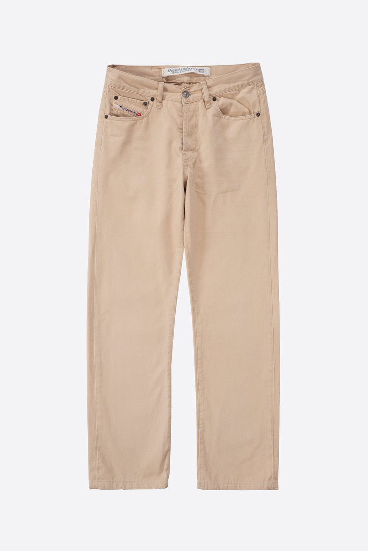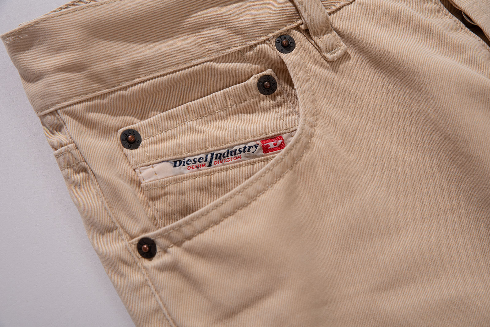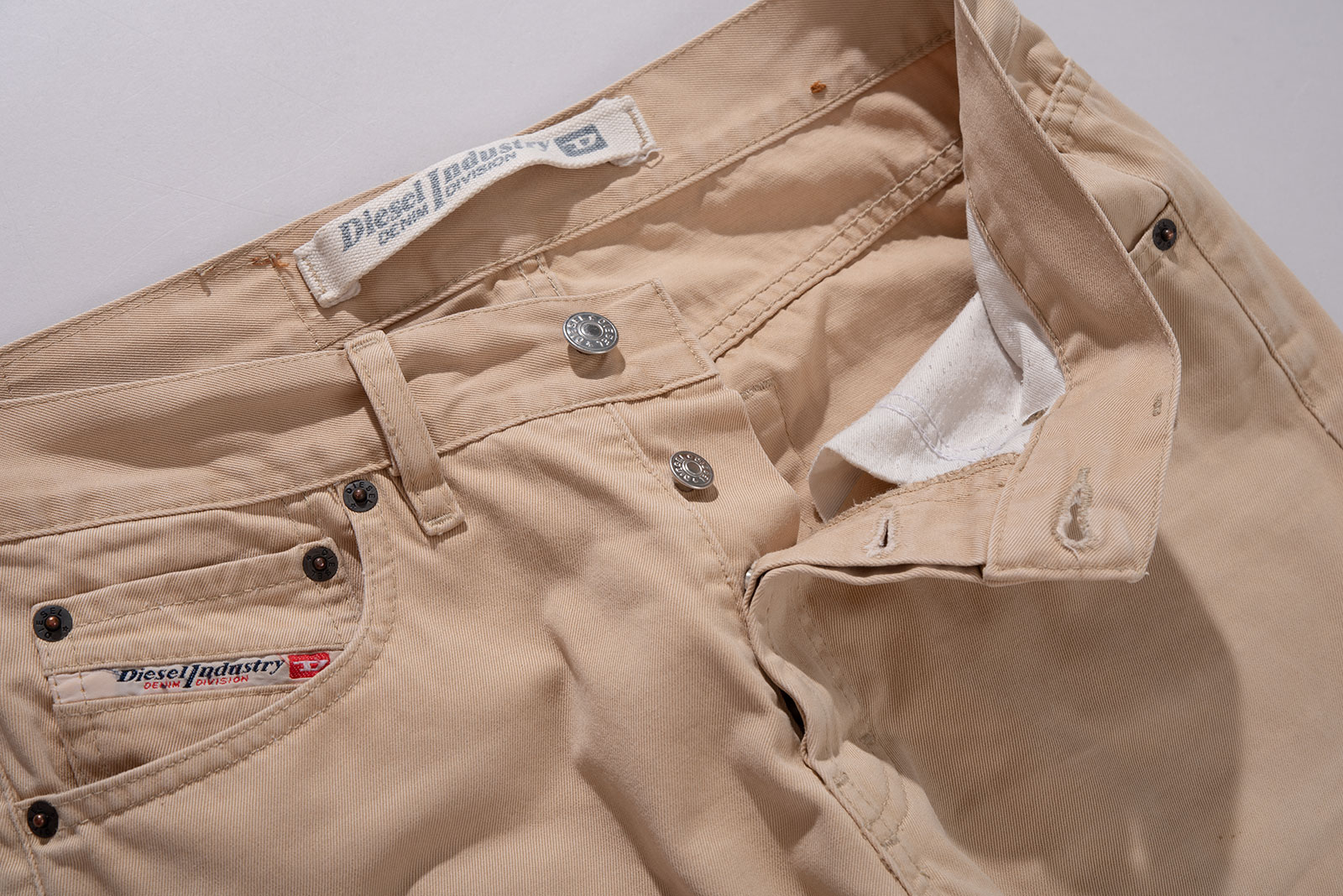 90 년대 리바이스 501을 그대로 쏙 빼닮은 디테일의 디젤 Type RR55 진 팬츠입니다. 초기 디젤의 투박하고 거칠거칠하고 단순한 디테일이 묘한 재미를 만드는 제품입니다. 흔했지만, 흔치 않아진 시리즈이기도 하고, 현행 디젤의 원형이 되는 아카이브이기도 합니다. 사이즈만 맞다면 하나쯤 소장할 가치가 충분하리라 생각합니다. 베이지 톤이라 전반적인 오염이 도드라집니다. 형태는 진인데, 원단 느낌은 치노 팬츠에 가깝습니다.