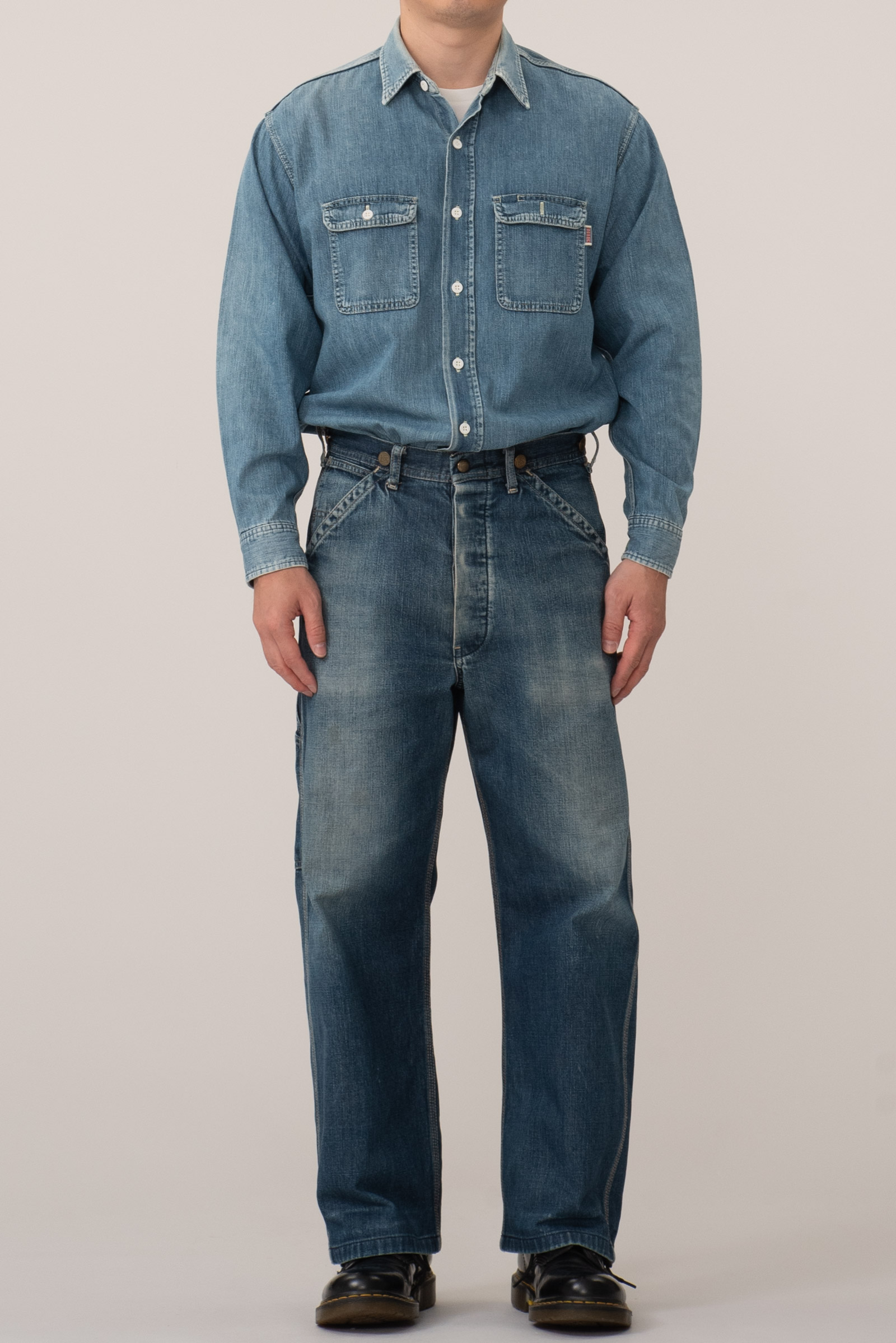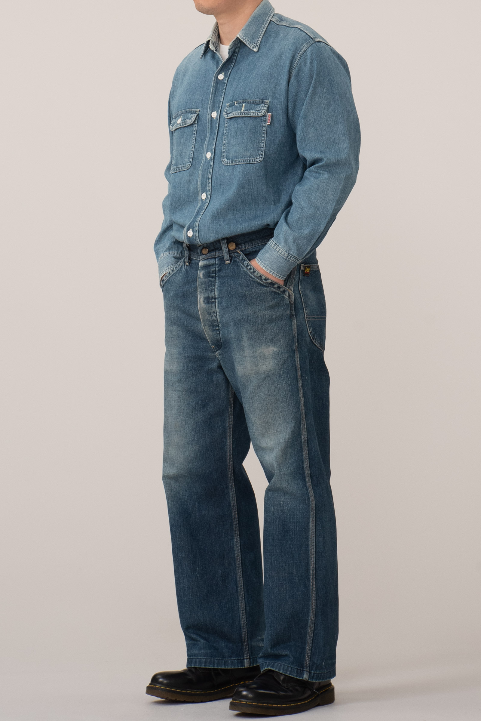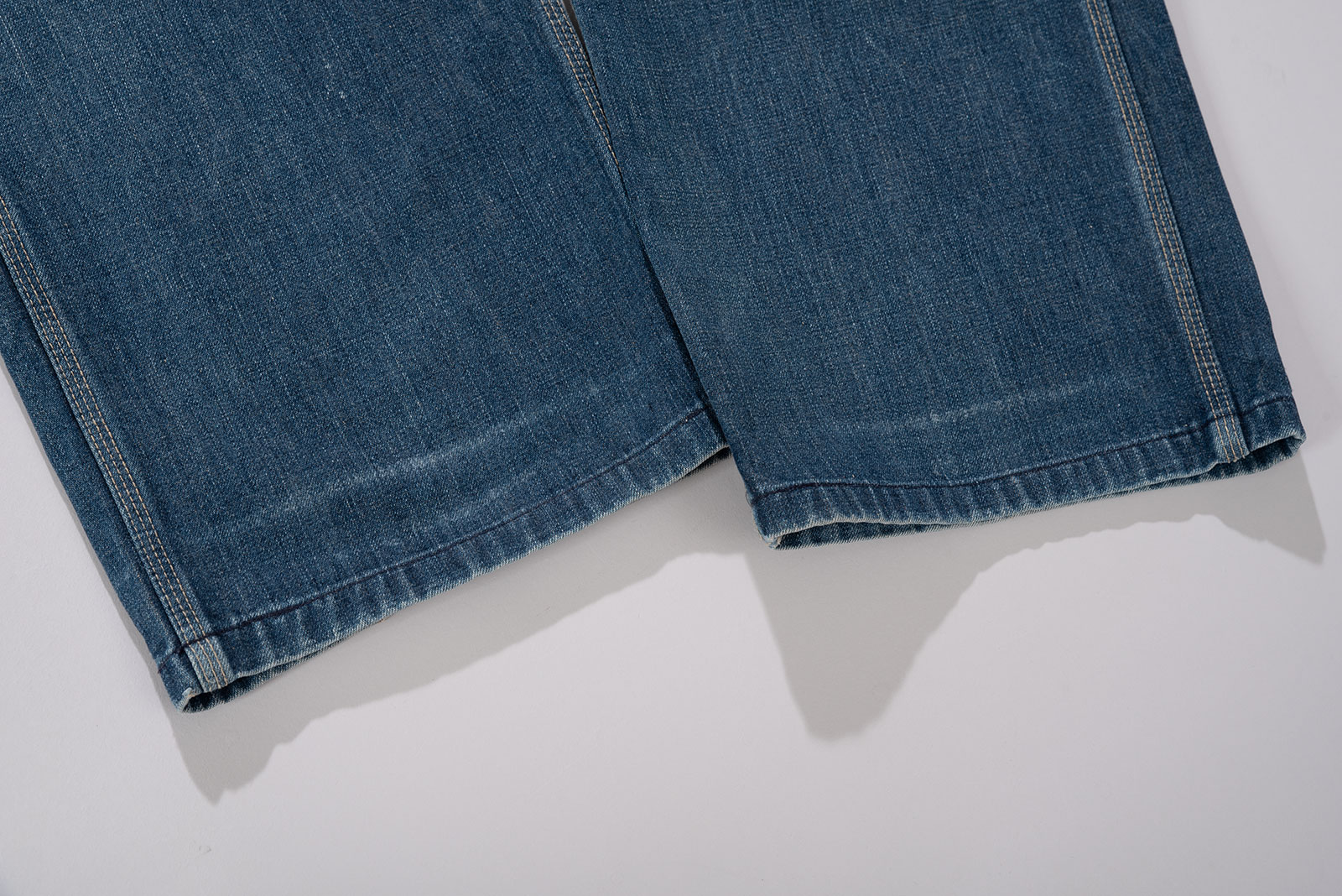 서스펜더 버튼과 벨트룹, 신치백이 공존하는 Lee 90s 0285 재팬 라이센스 워크 팬츠입니다. 리바이스 33501과 시대적 배경을 공유하고 있는 제품입니다. 일반 데님처럼 밑단이 마감된 제품인데, 전 사용자에 의해 수선 된 상태입니다. 수선 후 열심히 입어준 덕인지, 자연스럽네요. 보기보다 핏이 상당히 멋지게 잘 나옵니다. 기장이 긴 것 보단 딱 맞는게, 골반부터 일자로 쭉 떨어지는 바지 넓이에는 잘 어울리더라고요. 총장이 길지 않습니다. 실측 비교하시어 구매 부탁드립니다. 170 초반대 분들에게 추천드립니다.