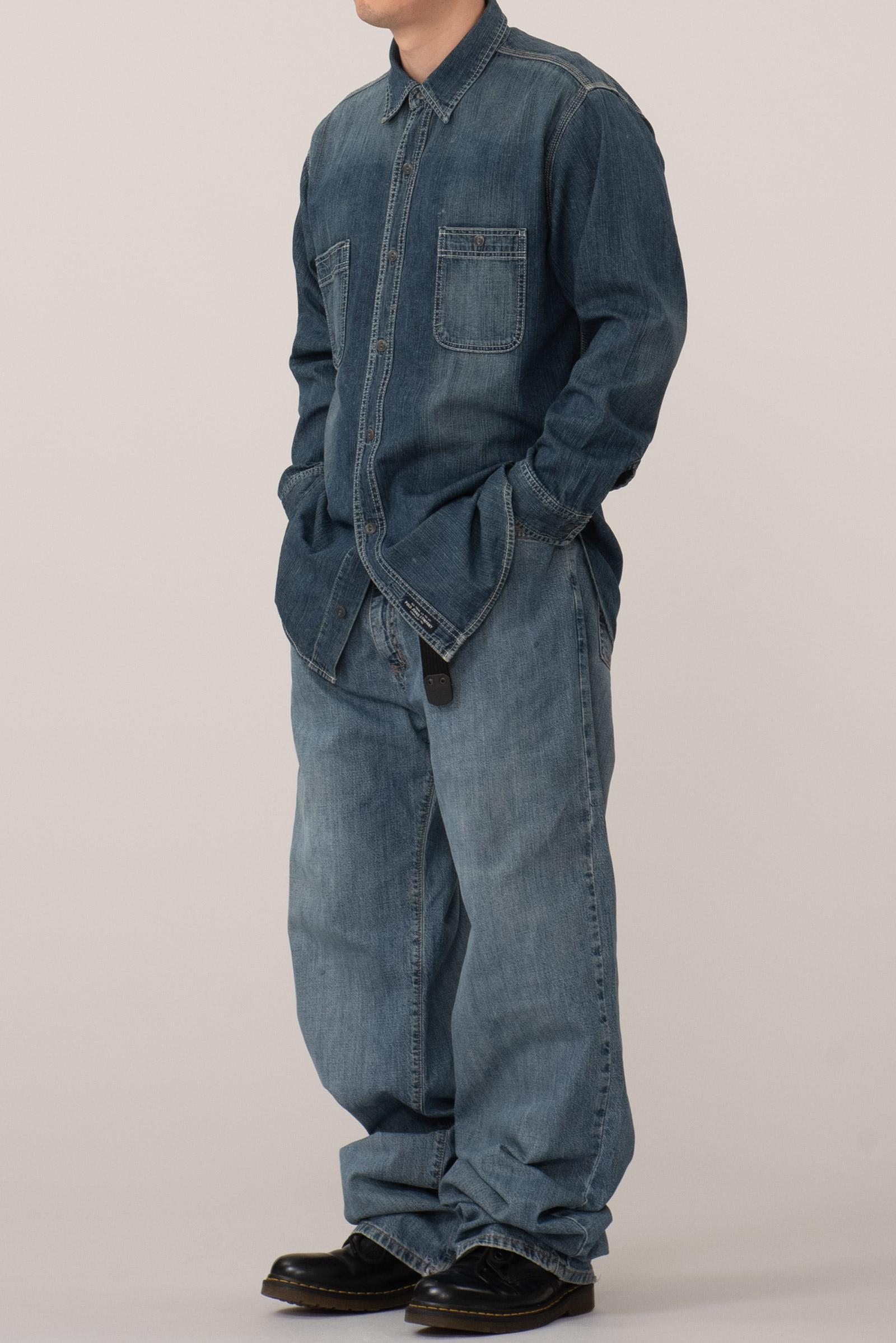 폴로 진의 데님 워크 셔츠입니다. 전체적인 밸런스에 비해 총장이 조금 길게 나온 피스입니다. 2000 년대 초반 제품답게 워싱이나 원단 질감이 일품입니다. 적당한 사용감이 있으나 컨디션은 좋은 편이에요. 실측 꼭 비교 후 구매부탁드립니다.