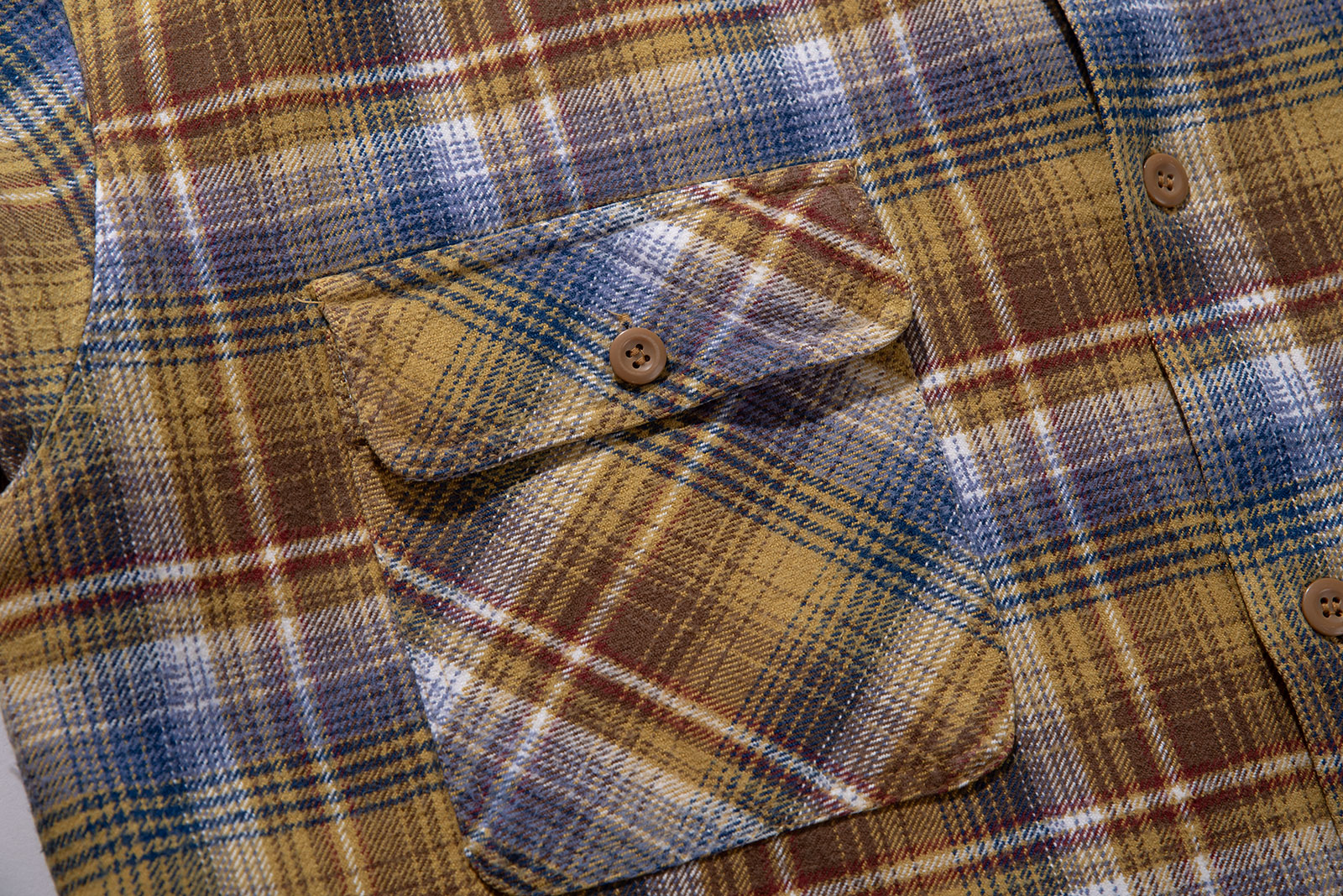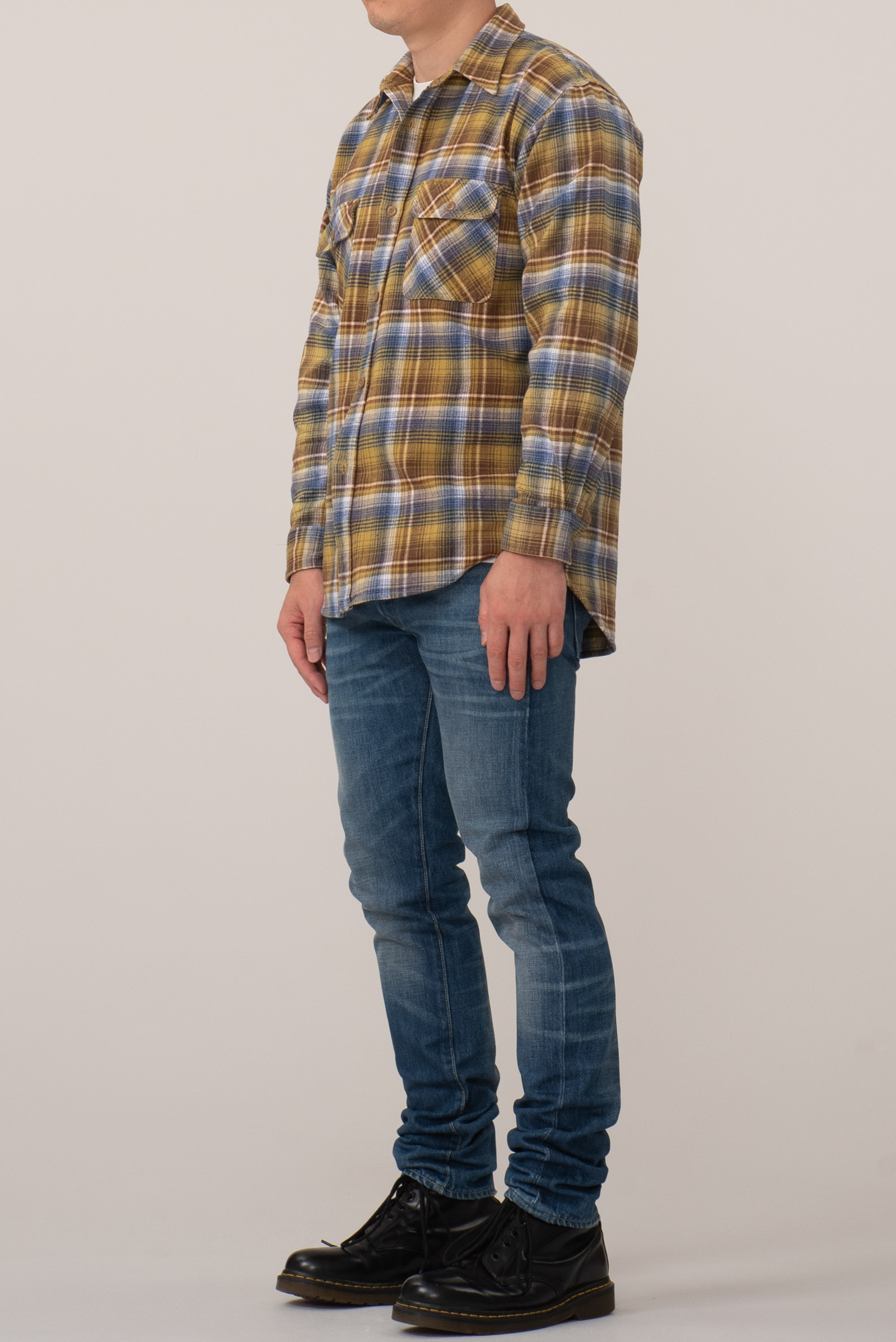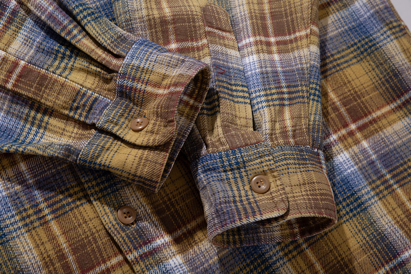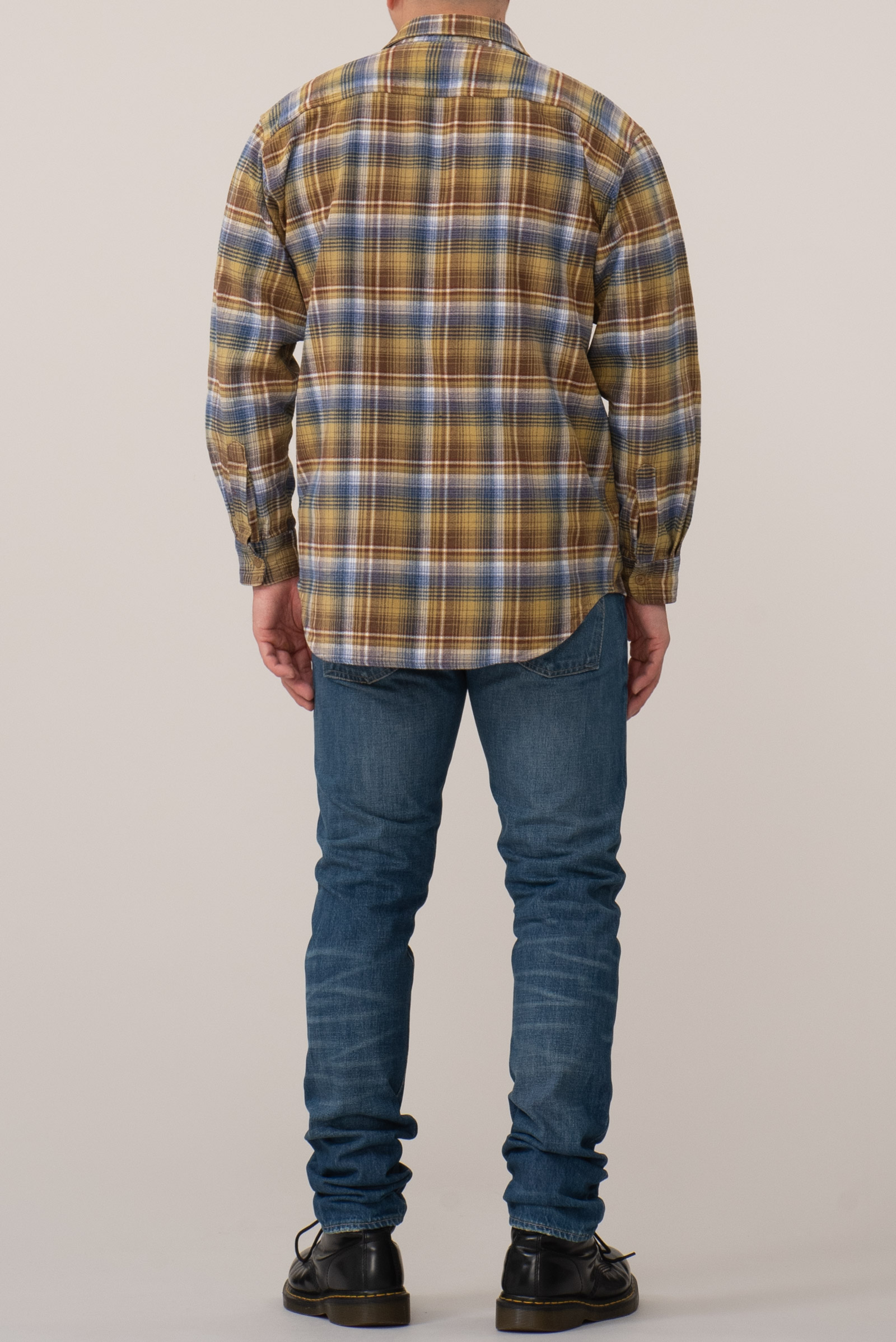 일본 오카야마에서 원단 무역업으로 시작해 일본 최초의 청바지를 제작한 데님 브랜드, 빅존의 빈티지 레플리카 시리즈의 플란넬 셔츠입니다. 70~80 년대 미국 워크웨어를 복각한 모델입니다. 올드 빅존 모델답게 만듦새도 좋고 핏도 멋스럽게 잘 나옵니다. 전반적으로 무난한 컨디션 유지하고 있습니다.