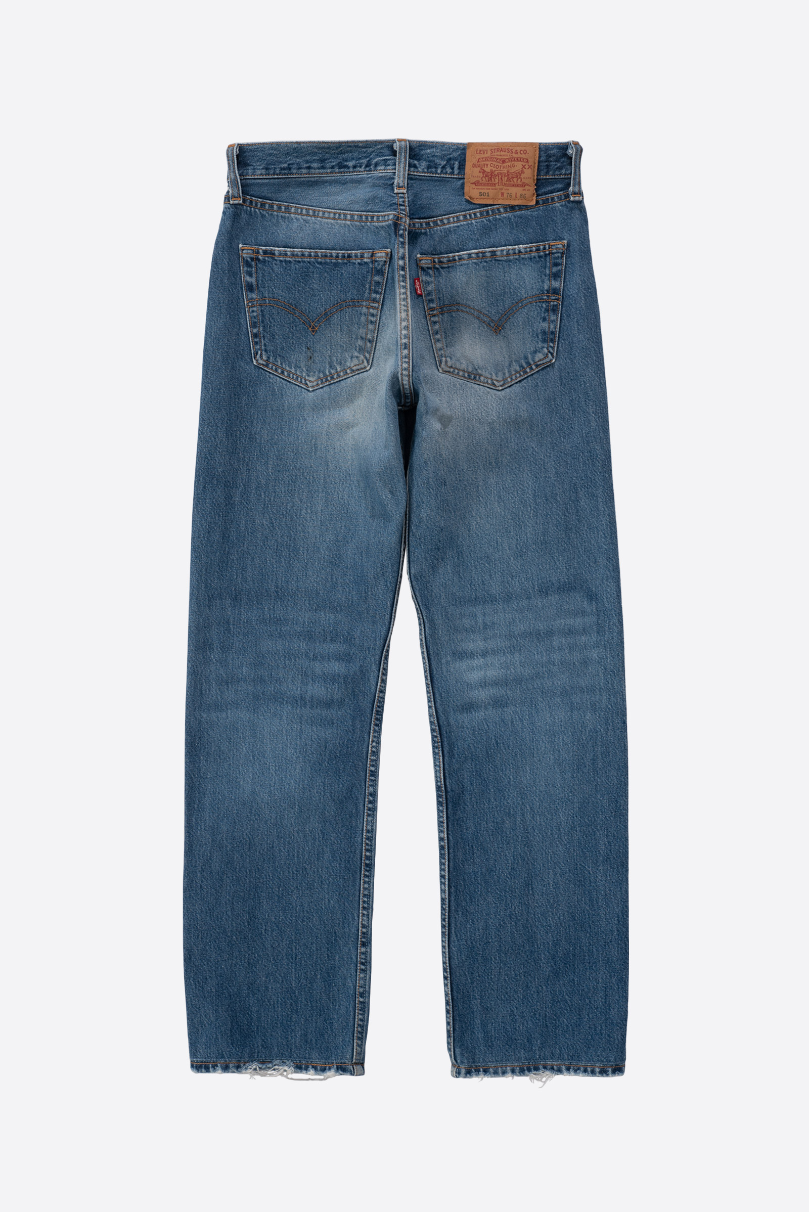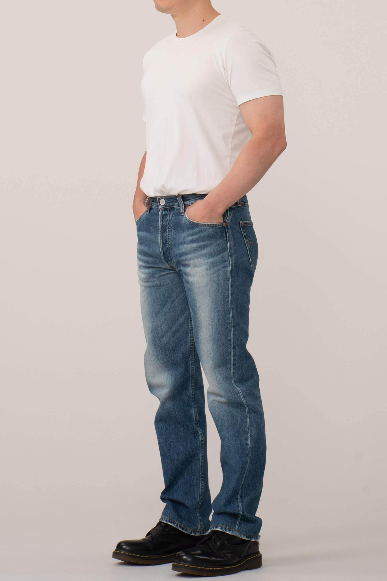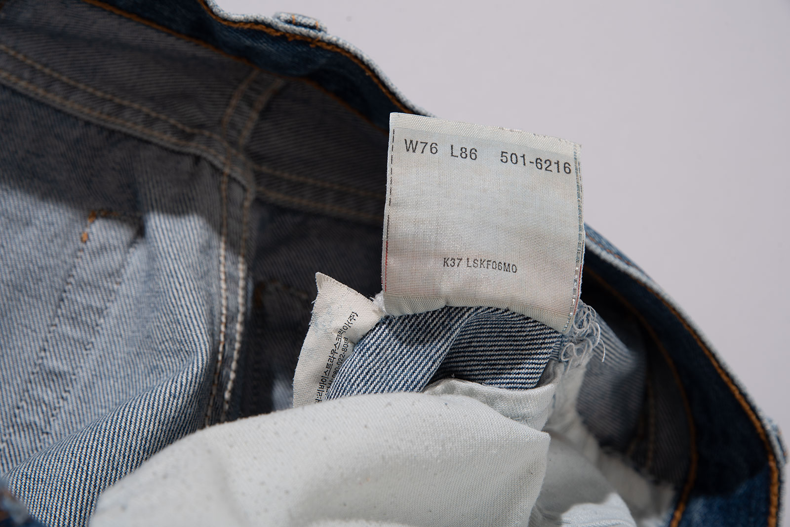 한국에서 생산 된 리바이스 501 2000 년대 초반형 제품입니다. 워싱이 자연스럽고 멋스럽죠. 약간 뼈 같기도 하고요.ㅎㅎ 90 년대 양식을 따르고 있는 제품입니다. 밑단 살려 기장 수선되었어요. 전반적으로 사용감이 있습니다.